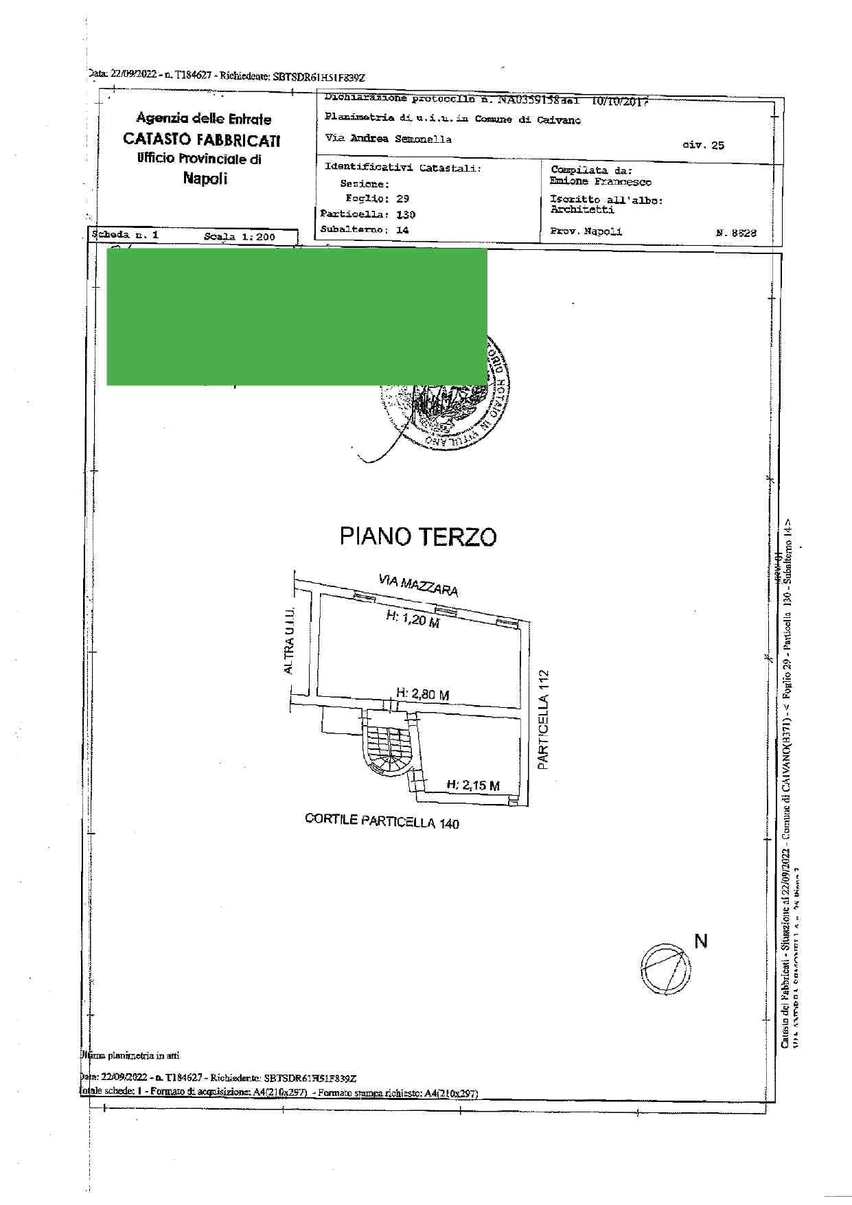 Appartamento al piano secondo, della superficie lorda di circa mq. 95,55, composto da ingresso, cucina/pranzo, due camere da letto, due bagni, cabina armadio, disimpegno e due balconi e deposito al piano terzo/sottotetto della superficie lorda di circa mq. 95,55, composto da due vani distinti e da due balconi