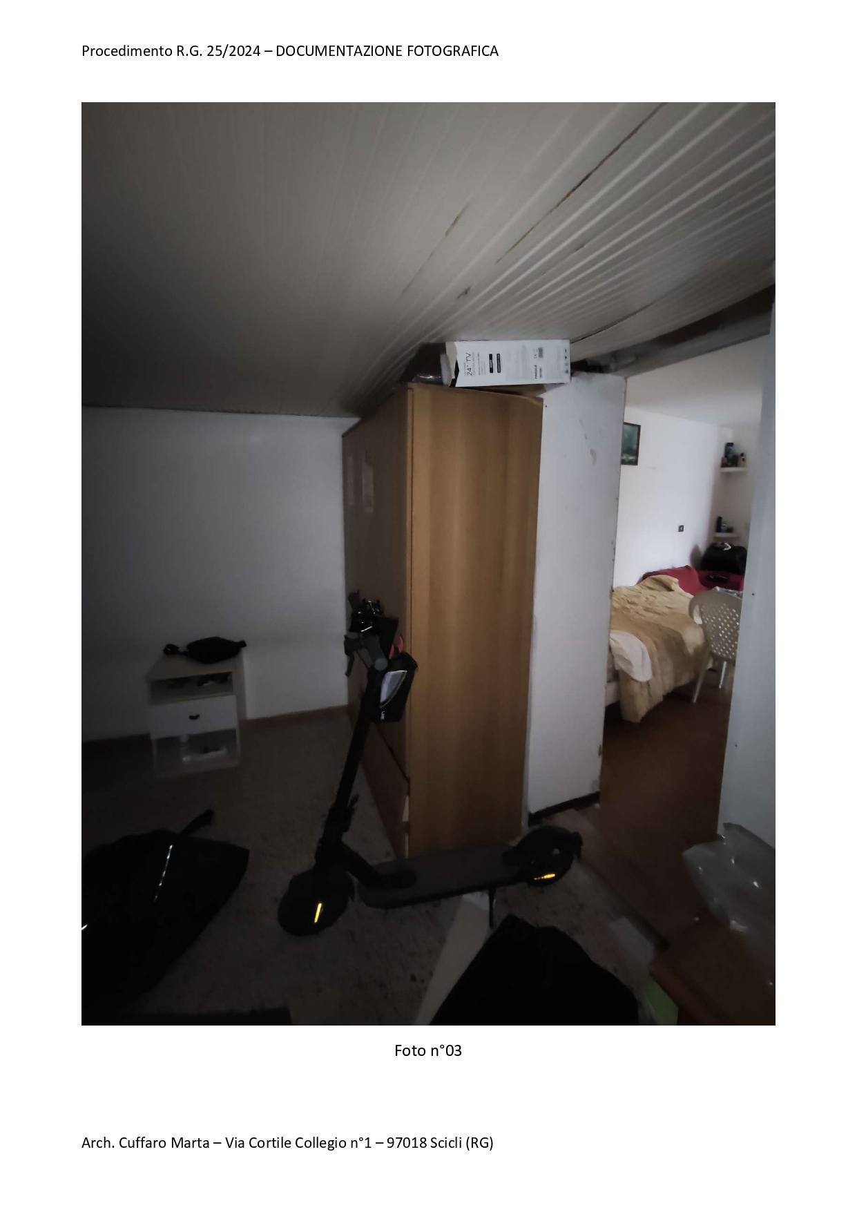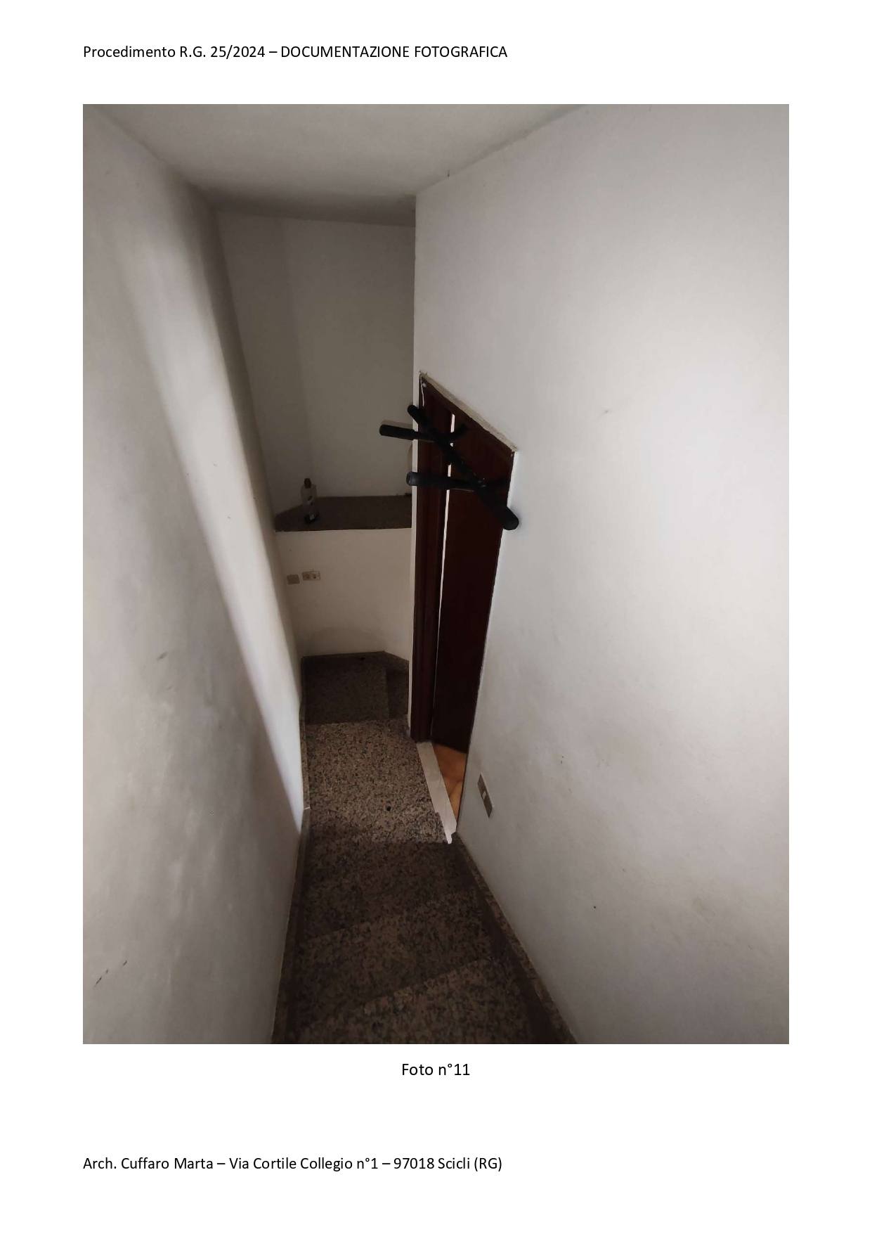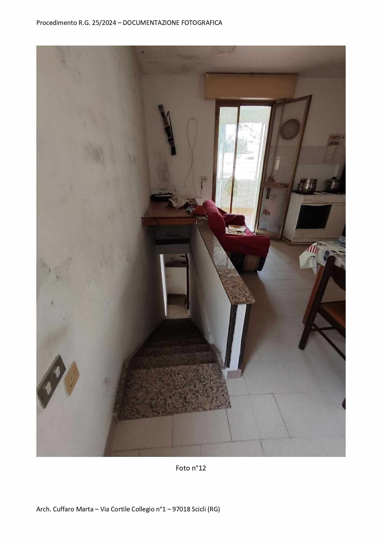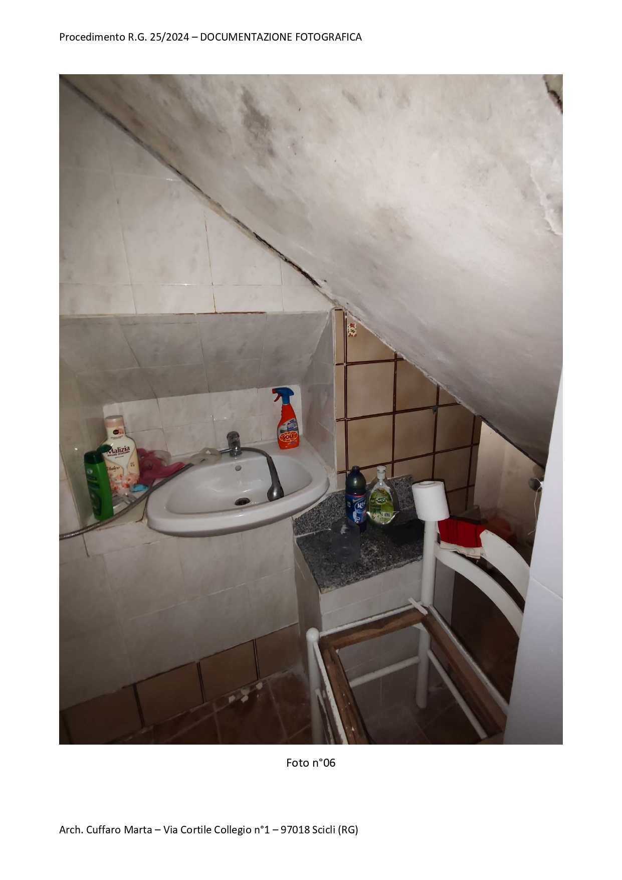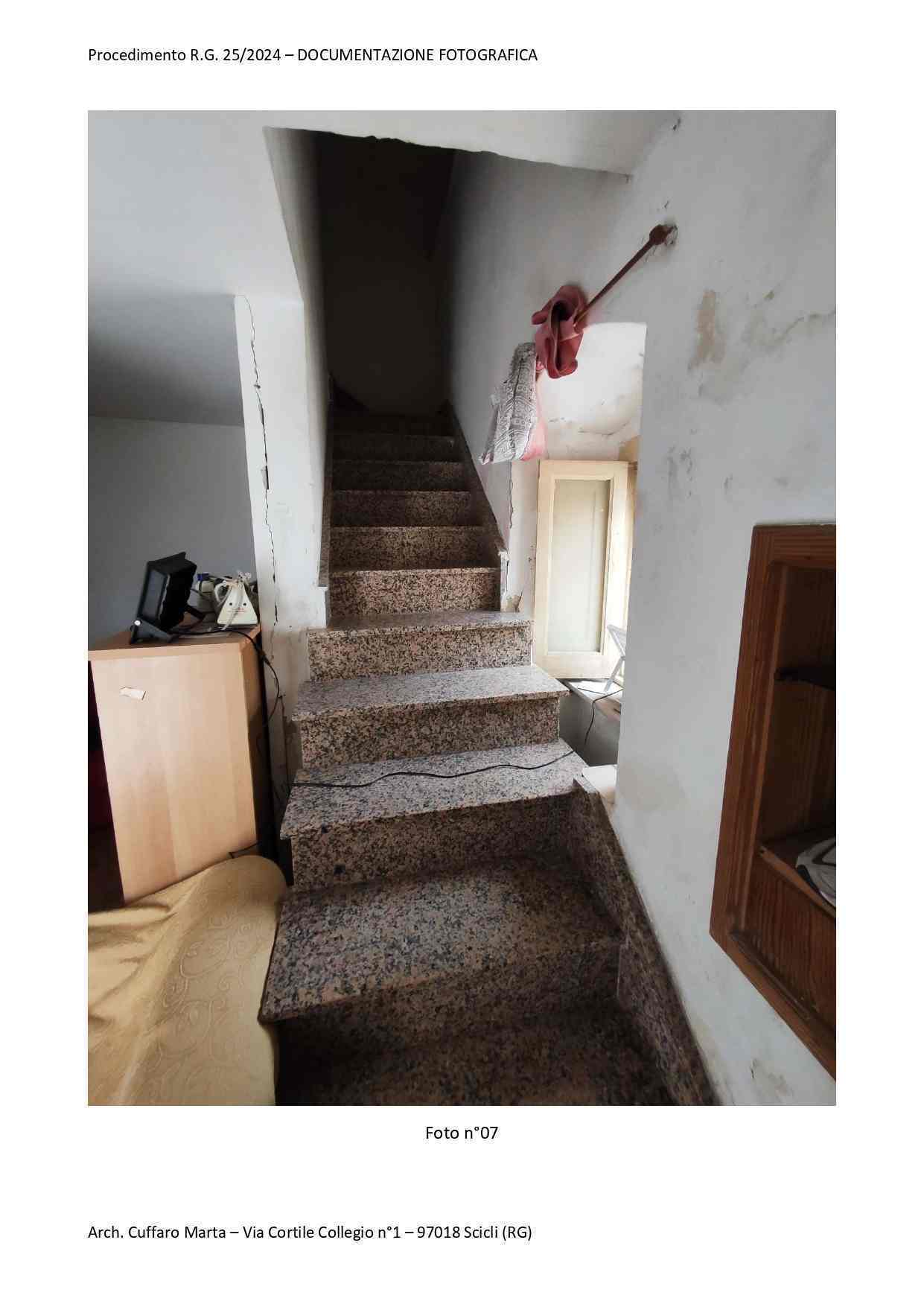Fabbricato per civile abitazione, su tre livelli. Al piano terra si trova un vano ed un locale sgombero. Nel sottoscala vi è un bagnetto con doccia e lavabo. Da scala interna, si accede al piano primo in cui vi è un vano letto matr. ed un bagno completo di tutti i Al piano primo, si sviluppa anche un locale, ad oggi separato ed accessibile solo da una scala esterna del piazzale di pertinenza a piano terra attraverso una porta di ingresso separata. Al piano secondo si sviluppa la cucina e la sala pranzo.