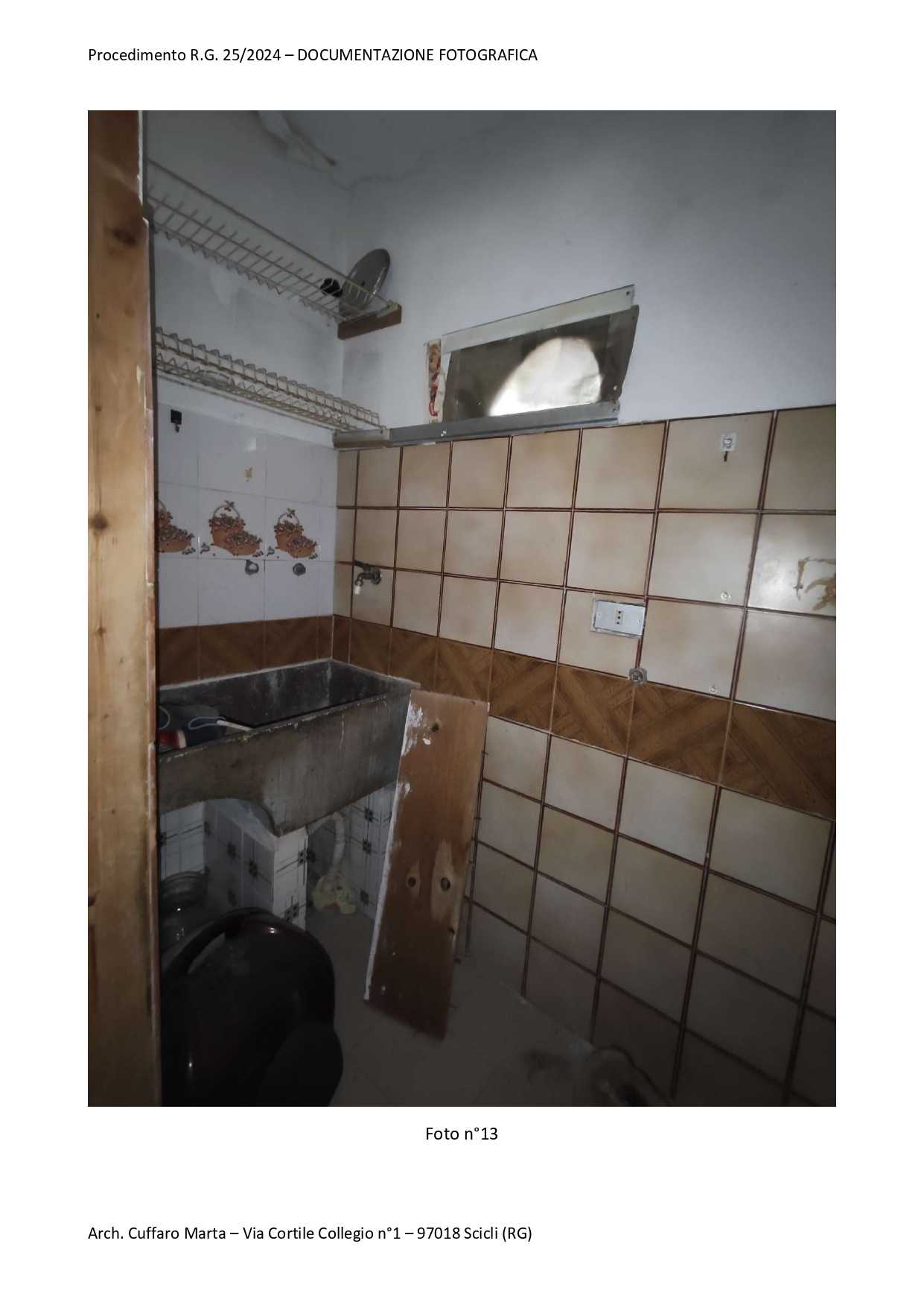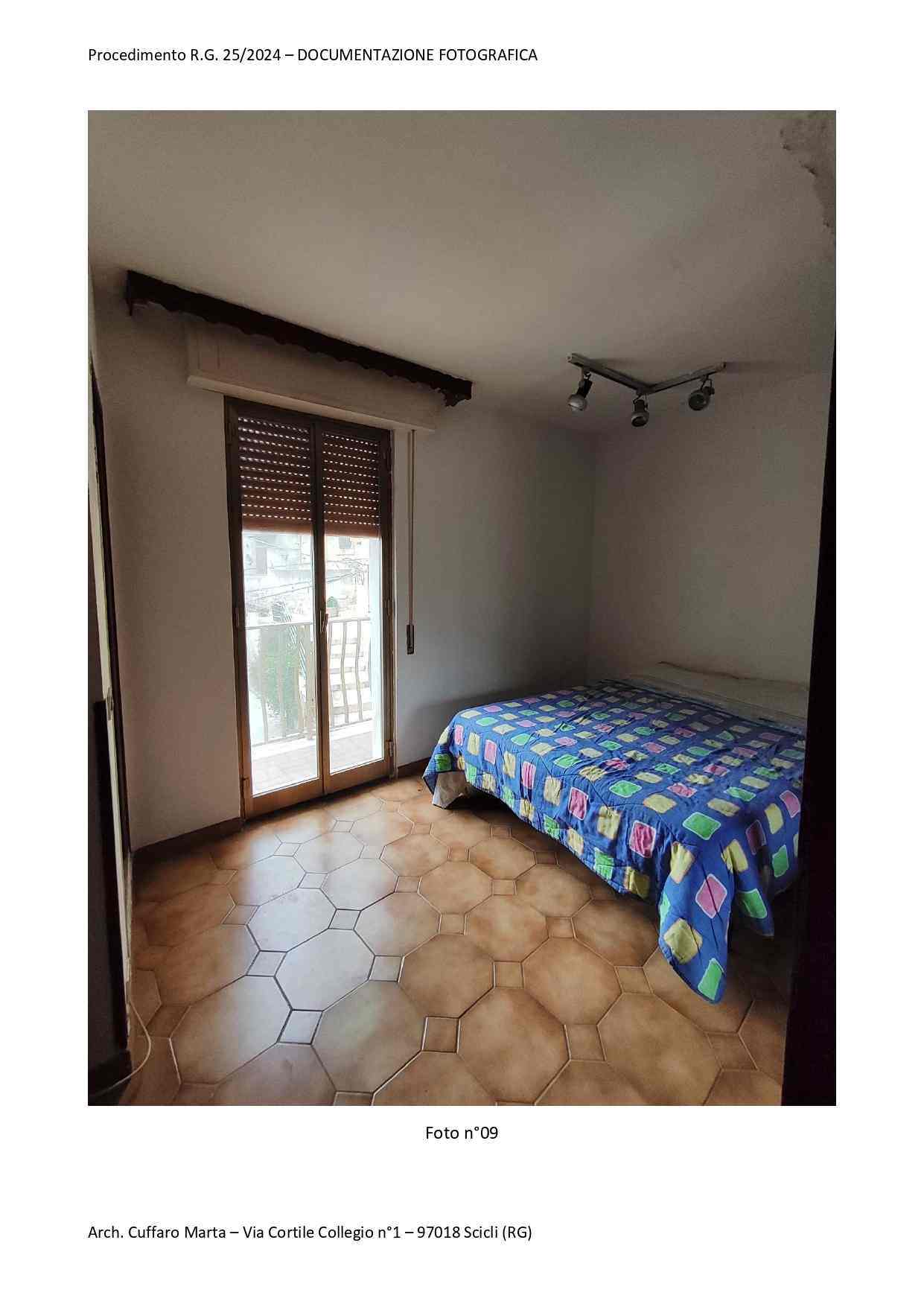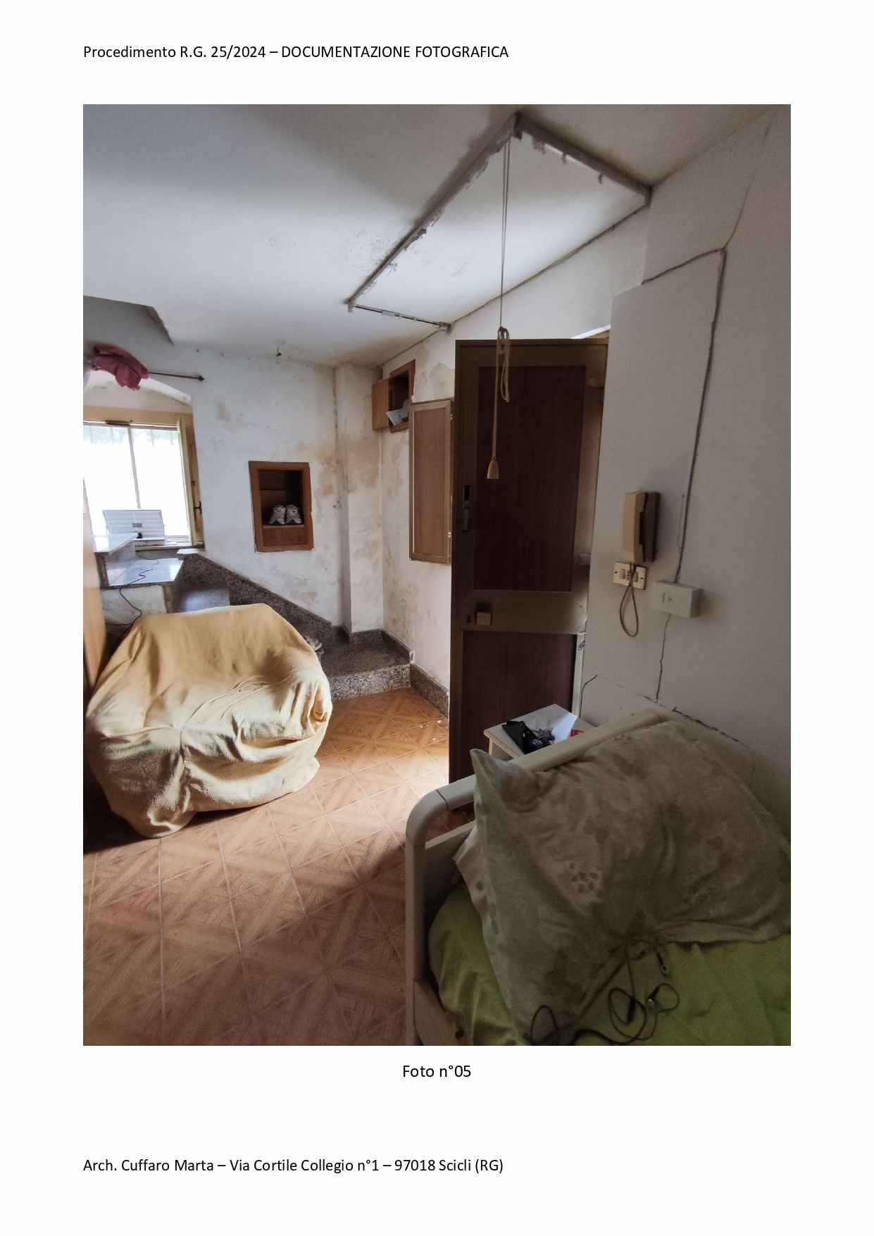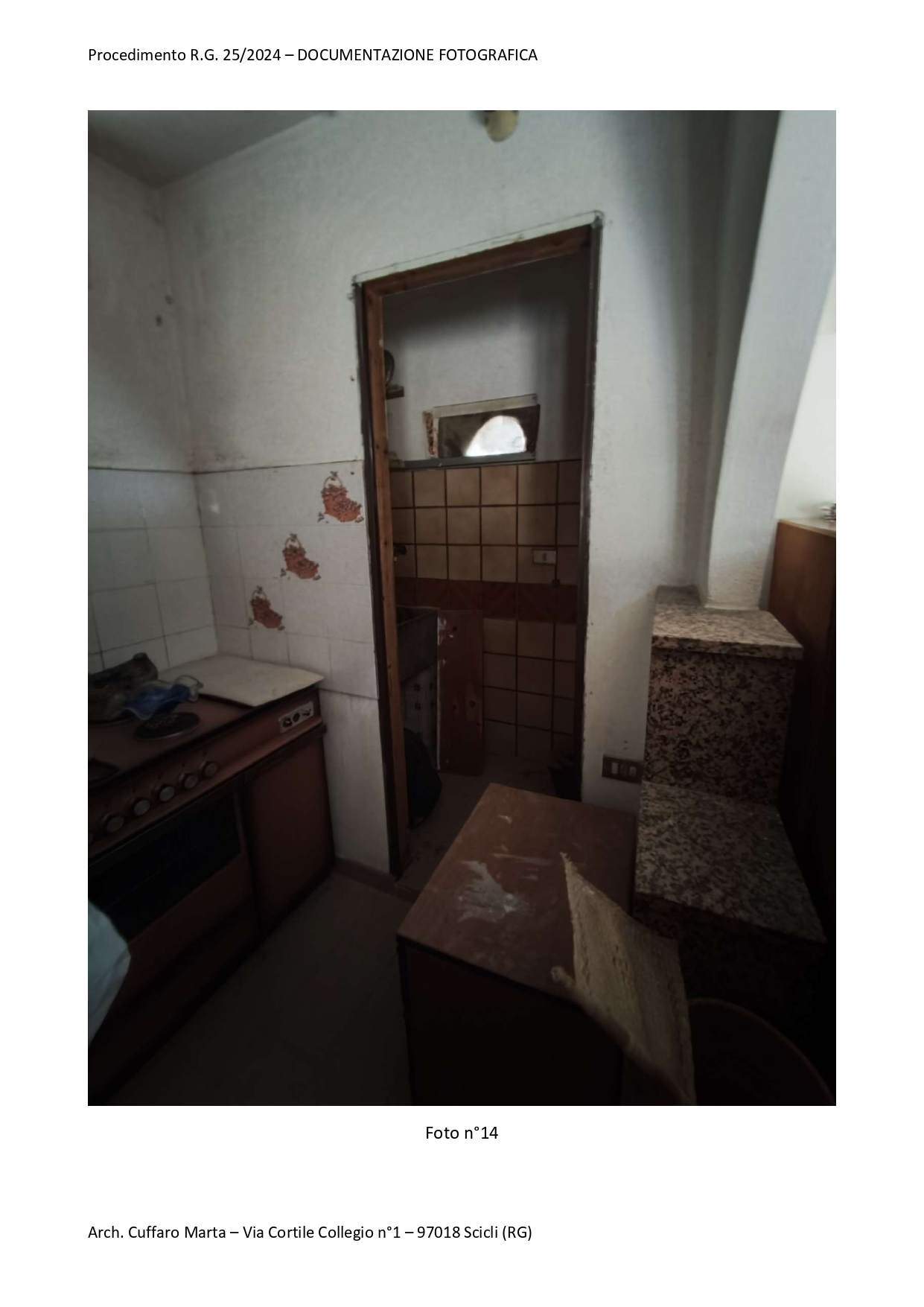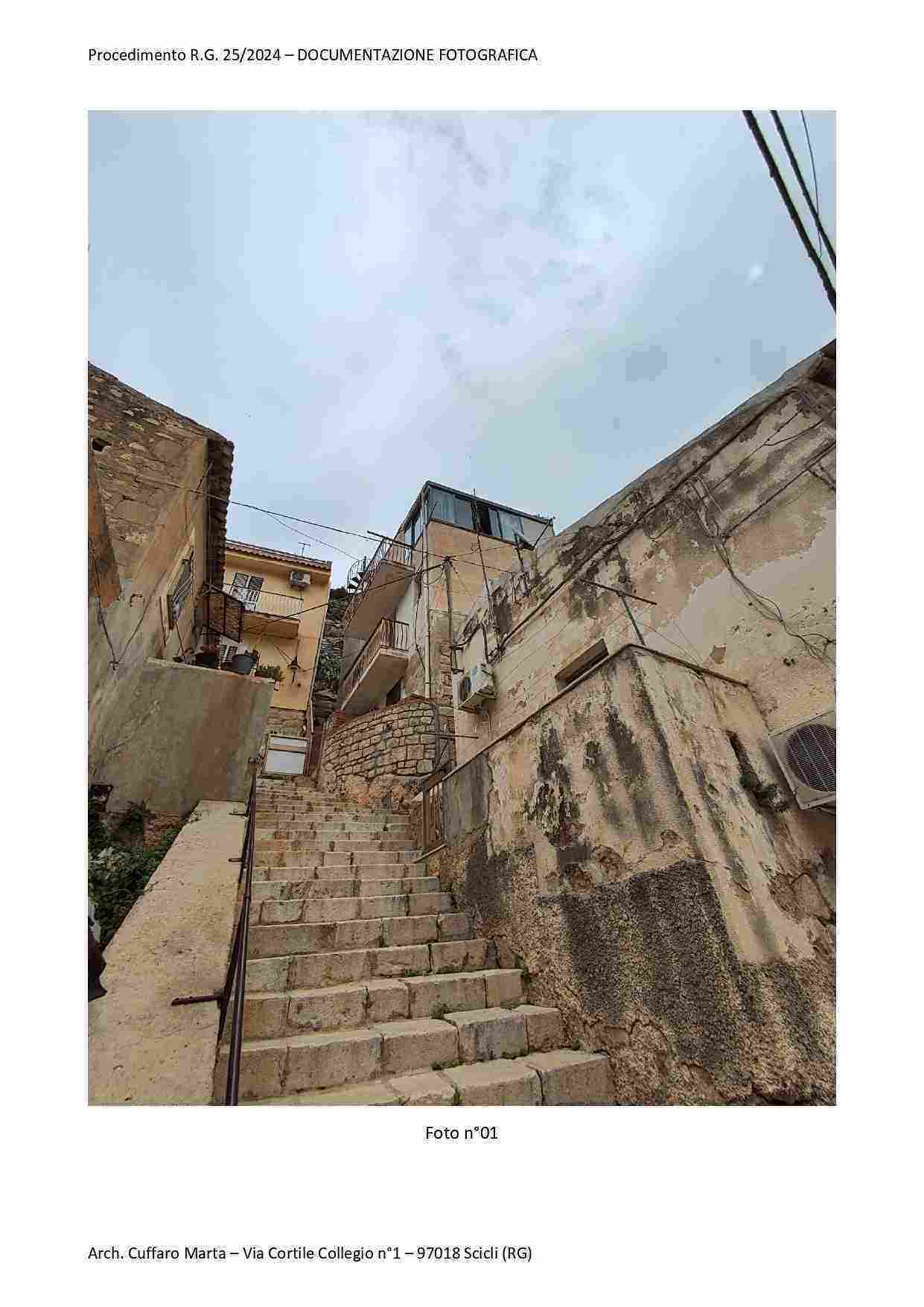 Fabbricato per civile abitazione, su tre livelli. Al piano terra si trova un vano ed un locale sgombero. Nel sottoscala vi è un bagnetto con doccia e lavabo. Da scala interna, si accede al piano primo in cui vi è un vano letto matr. ed un bagno completo di tutti i Al piano primo, si sviluppa anche un locale, ad oggi separato ed accessibile solo da una scala esterna del piazzale di pertinenza a piano terra attraverso una porta di ingresso separata. Al piano secondo si sviluppa la cucina e la sala pranzo.