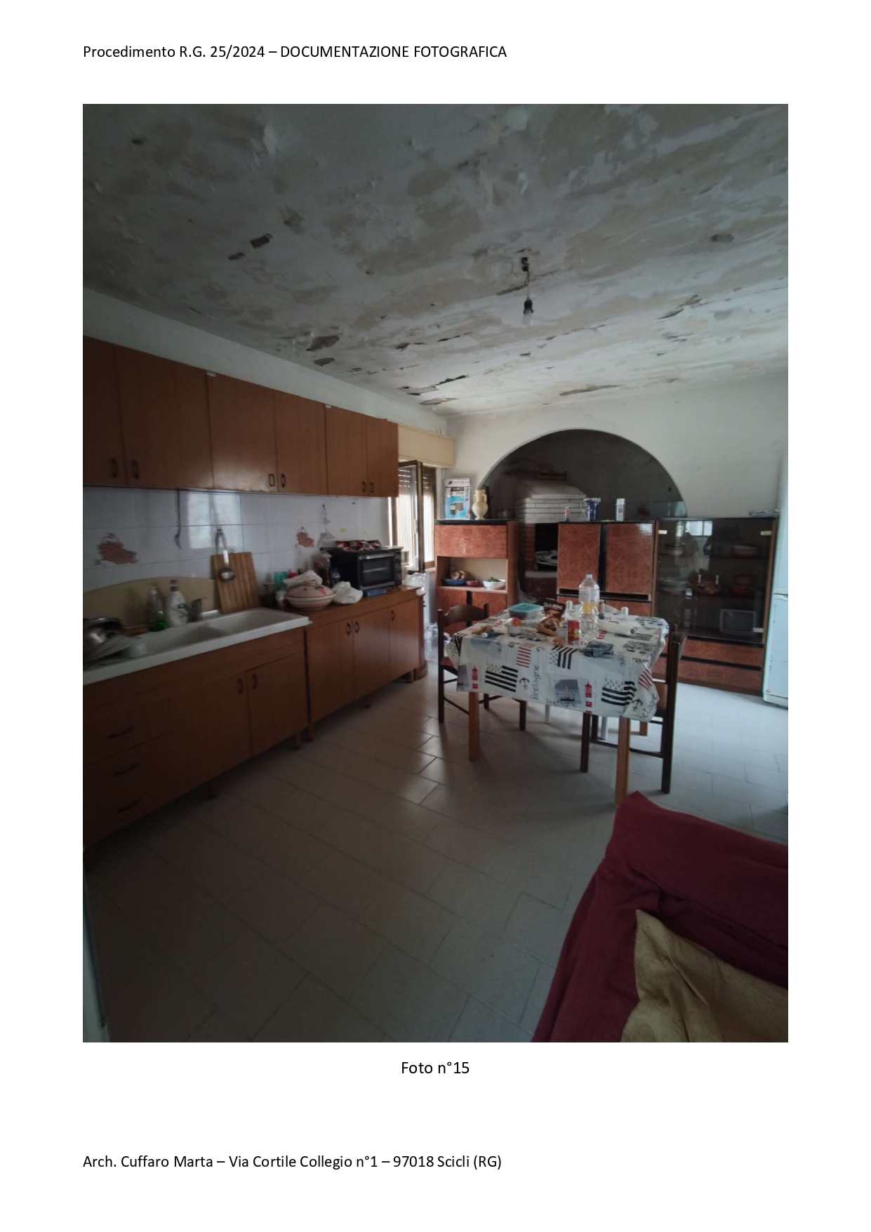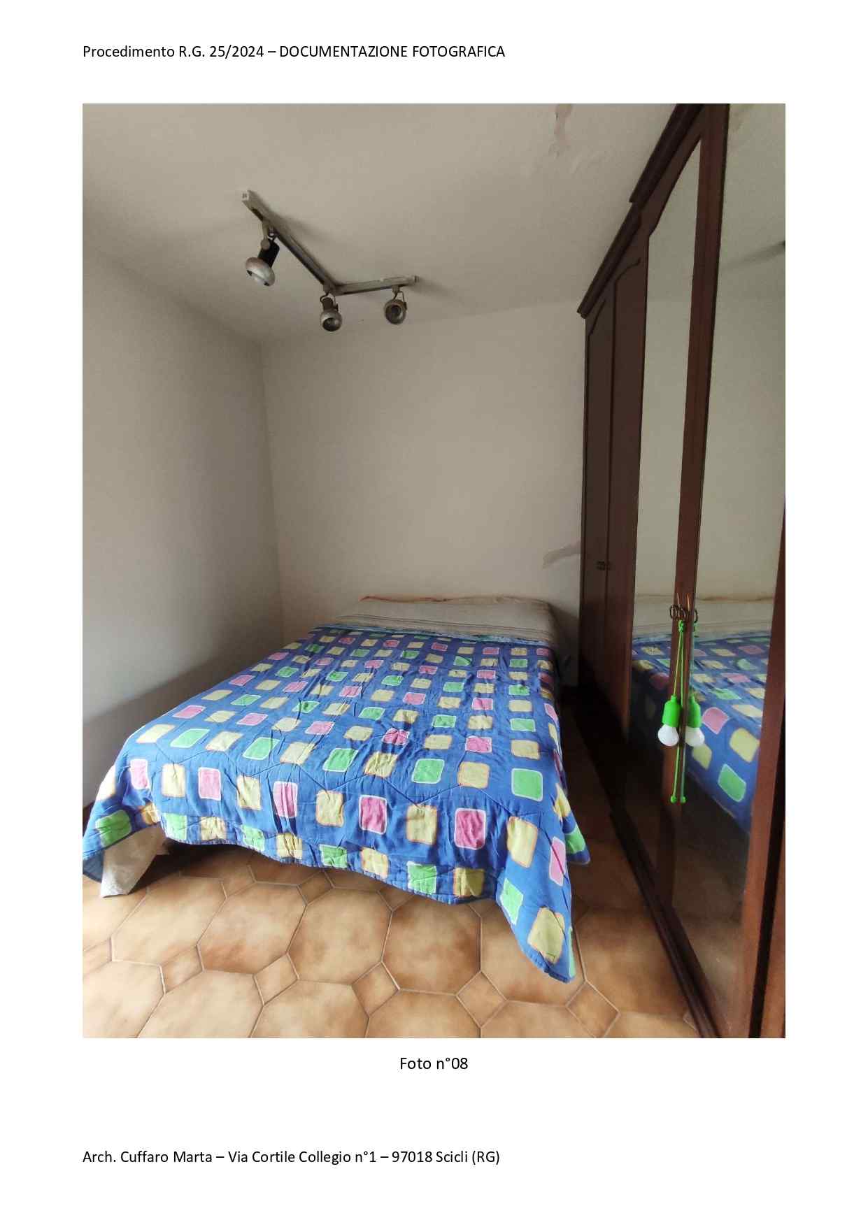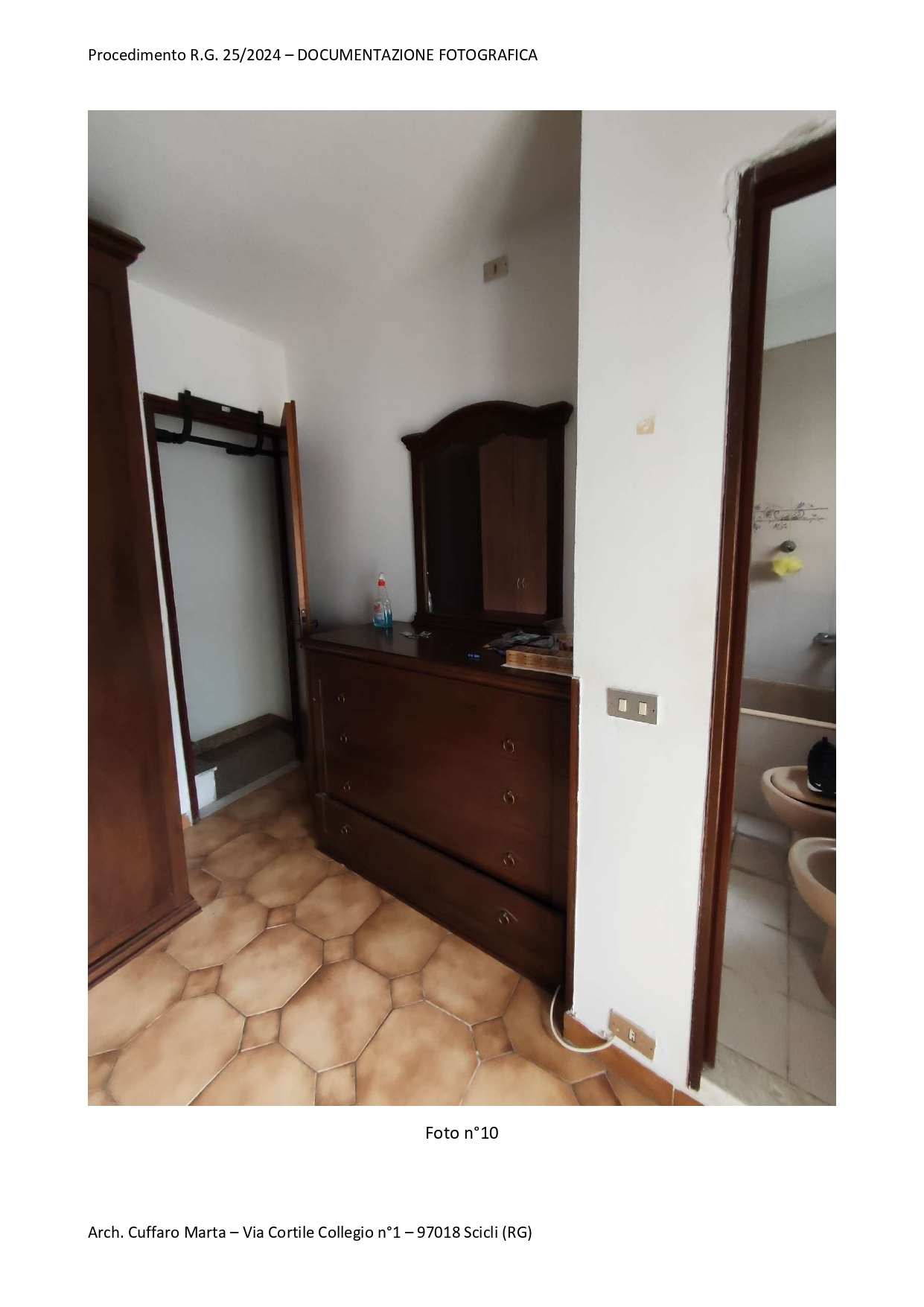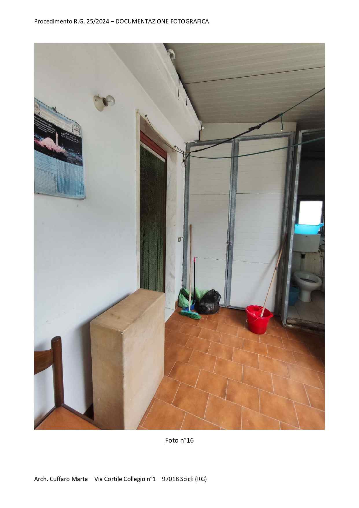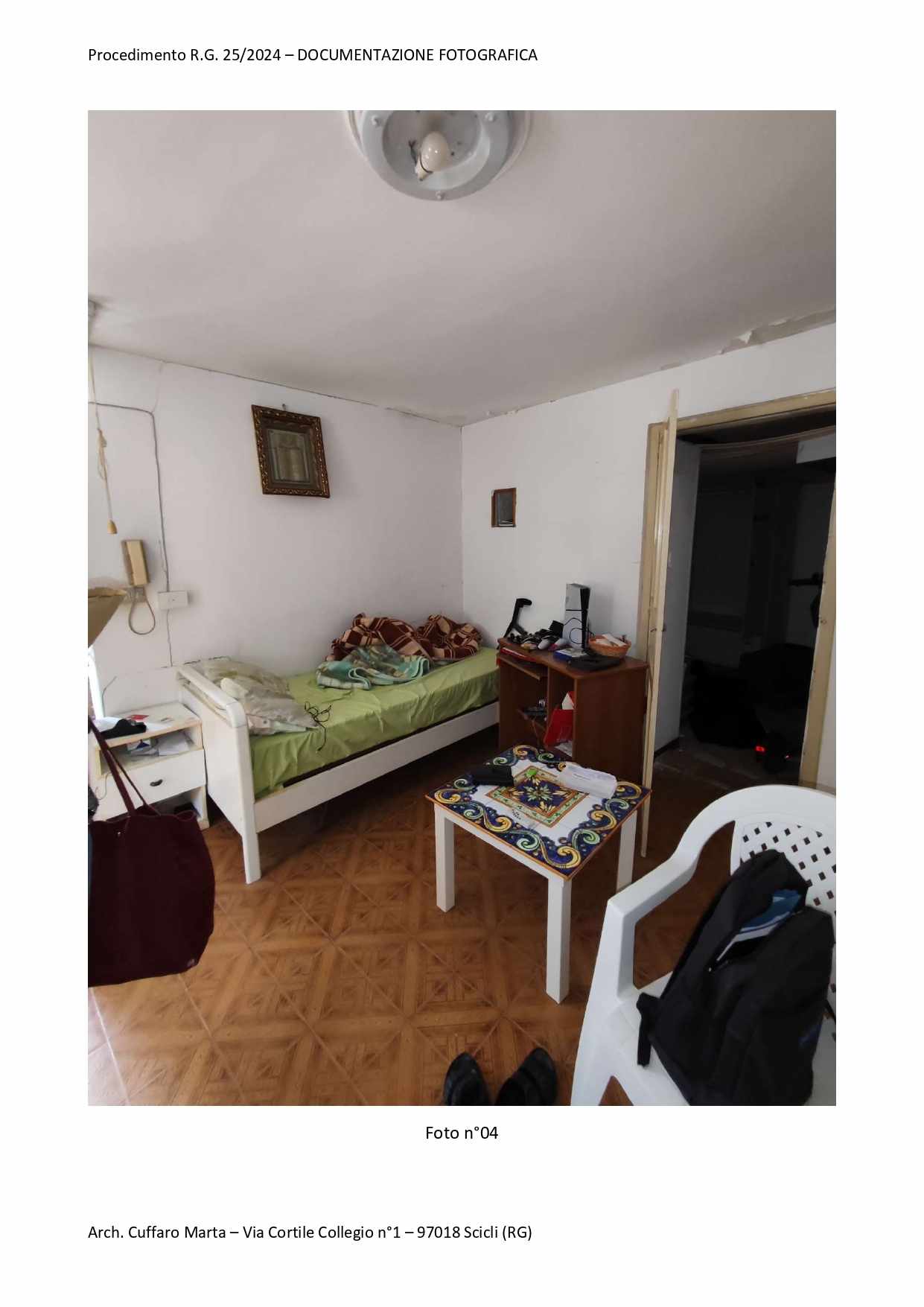 Fabbricato per civile abitazione, su tre livelli. Al piano terra si trova un vano ed un locale sgombero. Nel sottoscala vi è un bagnetto con doccia e lavabo. Da scala interna, si accede al piano primo in cui vi è un vano letto matr. ed un bagno completo di tutti i Al piano primo, si sviluppa anche un locale, ad oggi separato ed accessibile solo da una scala esterna del piazzale di pertinenza a piano terra attraverso una porta di ingresso separata. Al piano secondo si sviluppa la cucina e la sala pranzo.