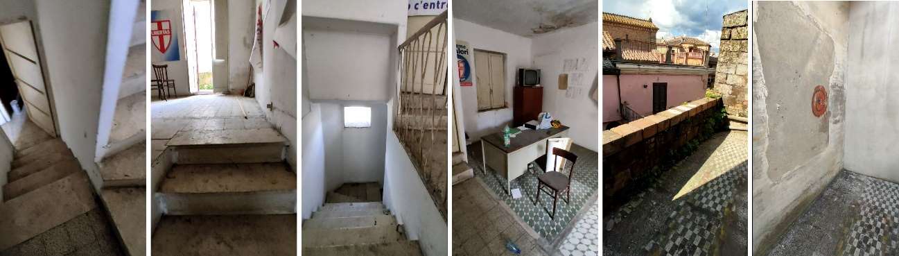 L'immobile si trova in Via Cavour n.40, Magliano Sabina (RI) da cui si sviluppa una scalinata rettilinea con arrivo al Piano Primo. Da qui, attraverso un disimpegno centrale, si connettono un Ripostiglio, una Sala con doppio affaccio ed un piccolo Bagno ricavato nel sottoscala. Proseguendo con una scala ad U fino al Piano Secondo troviamo un'altra Sala, su cui affaccia direttamente un Bagno, a cui si accede mediante n.2 scalini. Sul fronte Nord-Ovest troviamo l'accesso alla terrazza esterna.