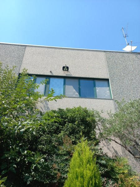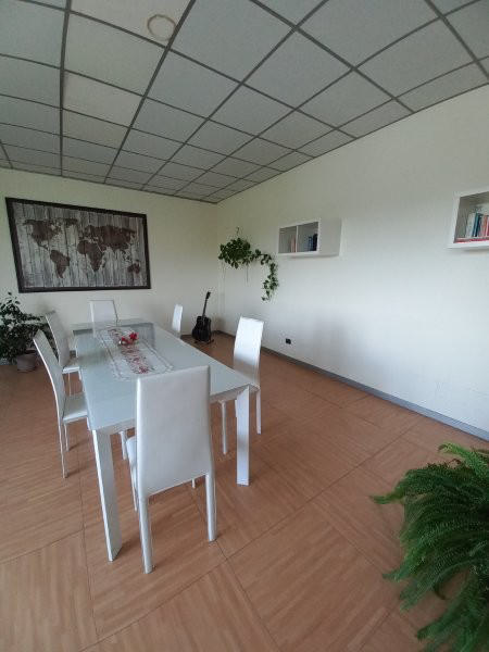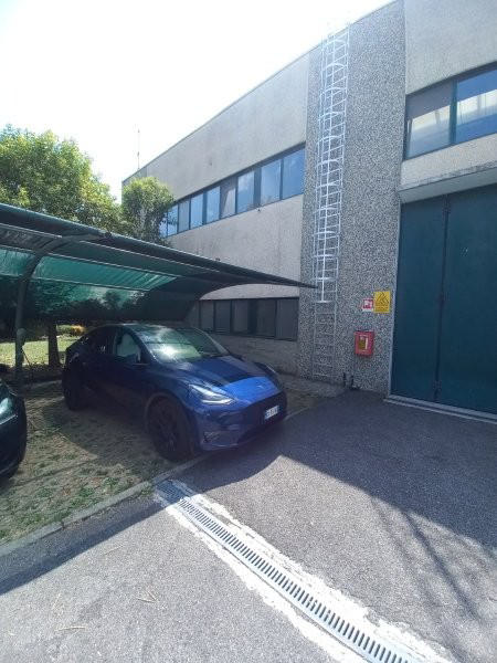 Piena intera proprietà di CAPANNONE INDUSTRIALE, con accesso diretto automezzi, servizi e spogliatoi, blocco uffici composto al piano terra da ingresso-reception, bagno e 3 uffici, e al primo piano da sala riunioni, oltre ABITAZIONE al primo piano composta da ingresso, soggiorno/cucina, due camere, disimpegno, bagno e CORTE ESTERNA pertinenziale recintata, in parte asfaltata per manovra automezzi (mq 55) e in parte sistemata a verde (mq 345), impianto di ricarica autovetture elettriche e posti auto coperti.
