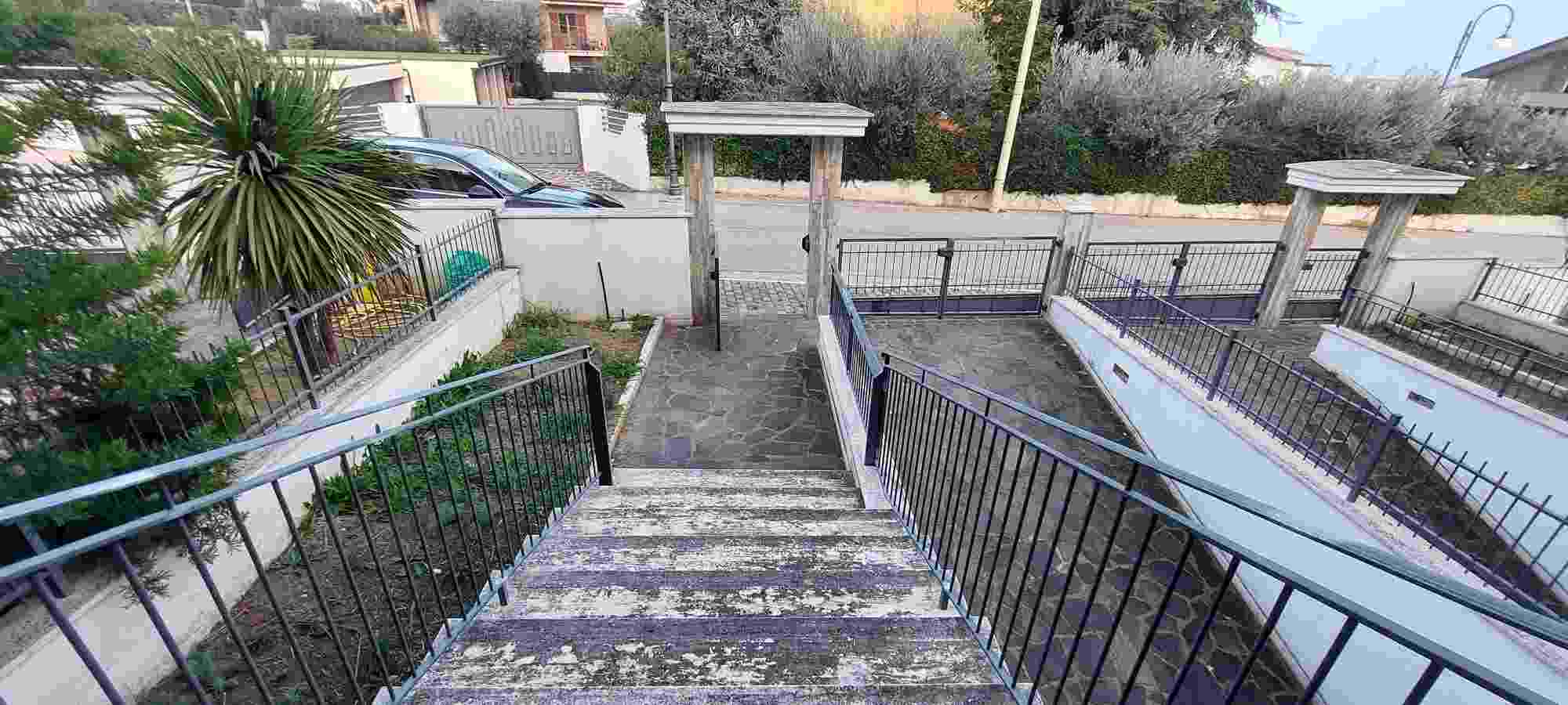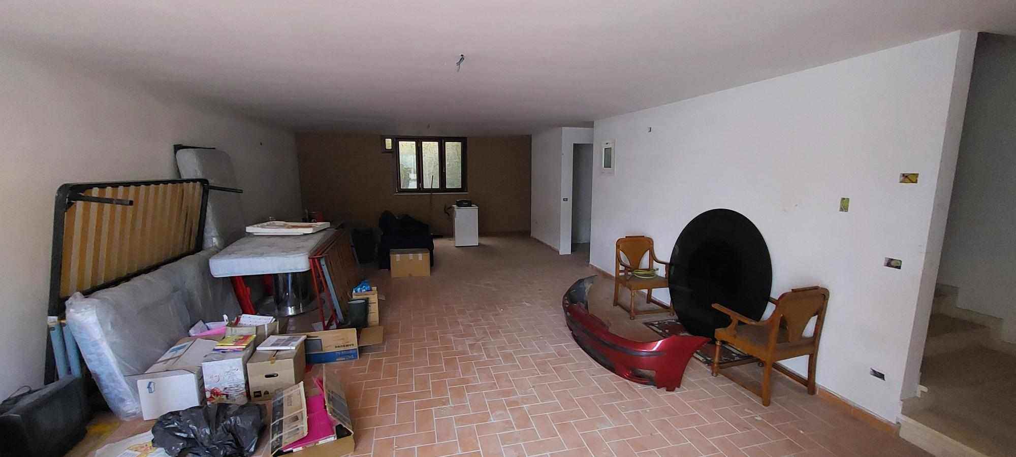 Porzione di fabbricato da cielo a terra (villino a schiera) e diritti di proprietà pari ad 1/3 dell'intero su terreno della superficie di mq 25 (particella 798), il tutto in comune di Nereto, Via G. D'Annunzio.Il fabbricato, nel suo complesso, si compone di un piano interrato ad uso garage/locali di servizio e piani terra e primo (area notte) per civile abitazione, con annessi portico al piano terra (lato Est) ebalconi al piano primo (lati Est ed Ovest). Gli immobili sono allo stato semigrezzo