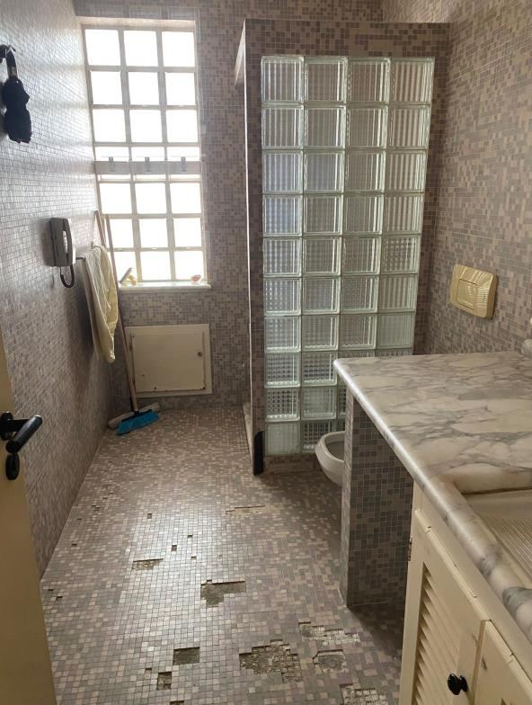 Diritto di piena e intera proprietà di un appartamento adibito a civile abitazione, avente una superficie lorda complessiva pari a 135 mq, posto al piano terra di un fabbricato in c.a. a più elevazioni; è composto da ingresso, cucina - soggiorno con sgabuzzino, tre camere (di cui una con ripostiglio annesso), due servizi igienici e un lungo corridoio nel quale sono allocati un armadio a muro e un ulteriore piccolo ripostiglio