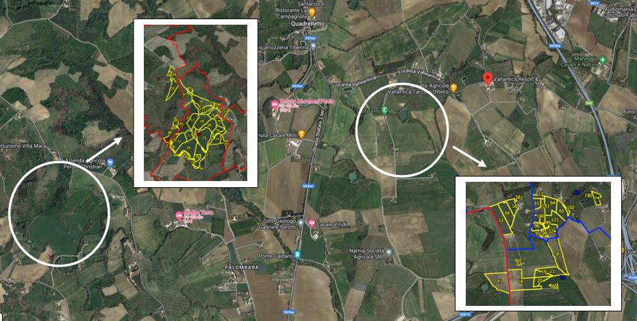 TERRENI AGRICOLI estesi su di una superficie complessiva pari ad ha 12 circa siti nei Comuni di San Gemini (TR) e Narni (TR), in loc. Valleantica e censiti al CT del Comune di San Gemini (TR) al foglio 24 partile 18 - 19 - 20 - 21 - 66; e al CT del Comune di Narni (TR) al foglio 10 partila 41.-FABBRICATI (riuniti in un complesso di tipologia rurale con manufatti e fabbricati generalmente fatiscenti) identificati al NCEU del Comune di San Gemini (TR) al foglio 24 part.lla 66 subalterni 23-4-5-6-7.-