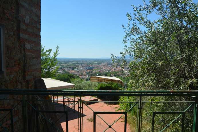 Porzione del fabbricato posto in Comune di Montecatini Terme, località La Piana n. 4, su duepiani fuori terra oltre piano seminterrato, con accesso da due rampe di scale esterne, costituitada unità immobiliare per civile abitazione composta: al piano terreno da ingresso-soggiorno, due ripostigli, cucina pranzo, ampia terrazza; al piano primo da disimpegno, duecamere con bagno, di cui una con guardaroba; al piano seminterrato da vano studio, bagno eantibagno. Oltre autorimessa.