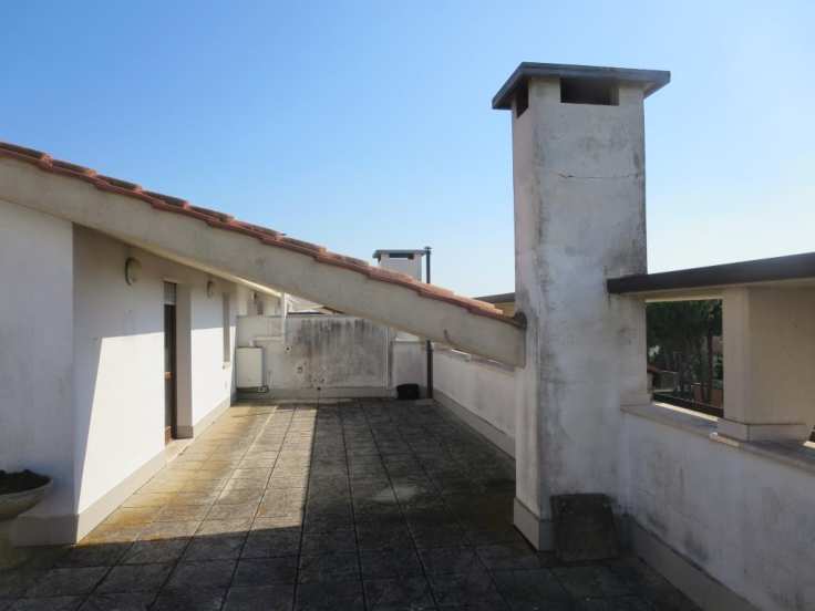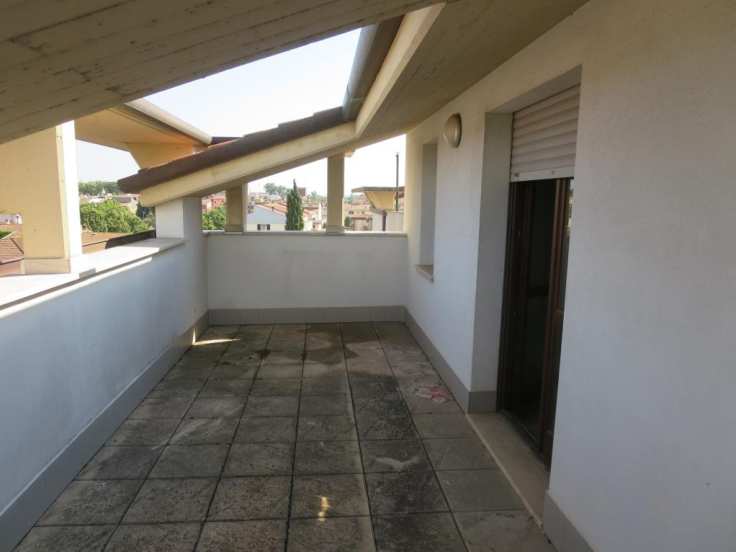 Civile abitazione di esclusiva proprietà dell'esecutata, in via Cavour 42/44 comune di Calcinaia. L'appartamento è composto da ingresso / soggiorno e angolo cottura che formano un unico locale, disimpegno reparto notte, camera, cameretta, w.c. e due terrazze,. Fa parte della presente, quale pertinenza esclusiva, locale autorimessa posto al piano terra del medesimo edificio, oltre a posto auto scoperto