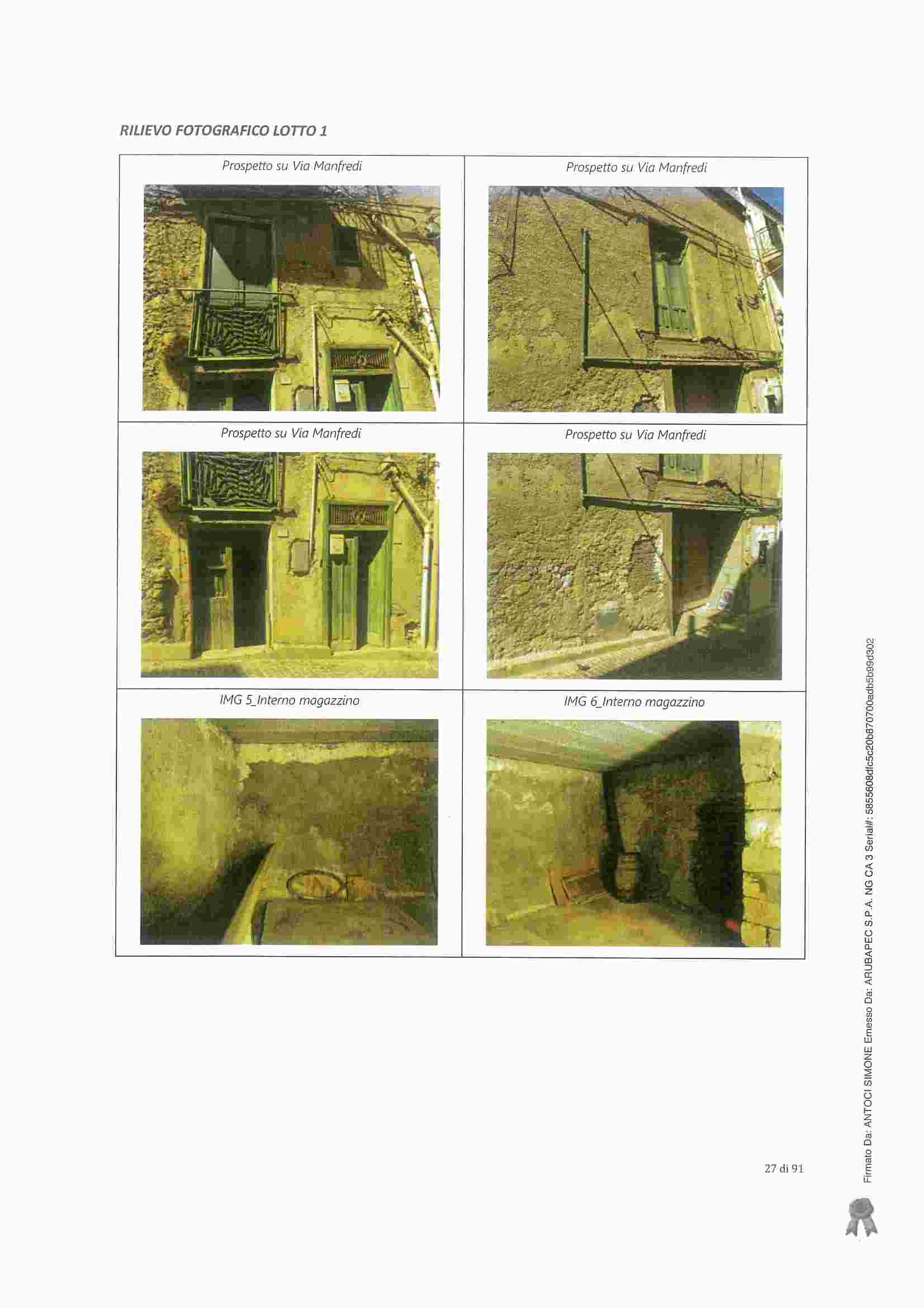Il lotto è formato:BENE 1: Proprietà magazzino sito in Castronovo, via Manfredi n. 30, P.Terra, al Fg. MU, P.lla217, sub , C/2, 4°cl.BENE 2: Proprietà appartamento sito in Castronovo, via Manfredi n. 28, Fg. MU, P.lla 218 sub.3, A/4, 4° cl., 5,5 vani, 132 mq.Discrepanze catastali presenti e indicate nella CTUDisponibilità LIBERO