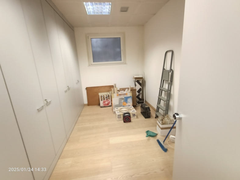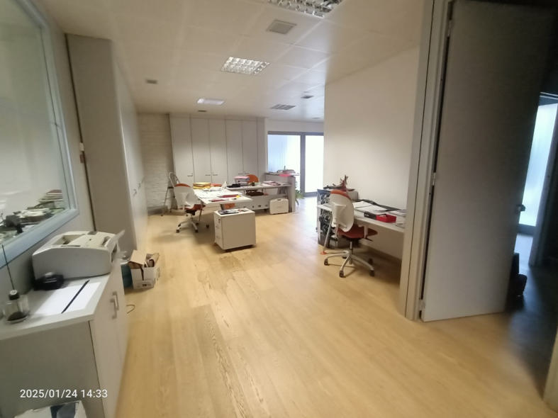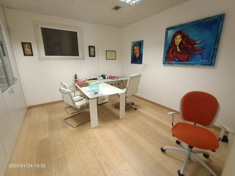 A) Appartamento destinato ad ufficio posto al piano terzo sottostrada con accesso diretto dalla via pubblica, di mq 139 ca, composto da ingresso, quattro stanze uso ufficio, sala riunioni, un bagno, un ripostiglio e un sottoscala (risulta abitabile benché accatastato come ufficio)., cat. A/10, cl. 2, vani 7,0, superficie catastale totale mq. 139 mq, R.C. 1.644,92 B) Posto auto accessorio al piano seminterrato terzo, di mq. 13 cat. C/6, cl. 1, mq. 13, R.C. 32,.90.