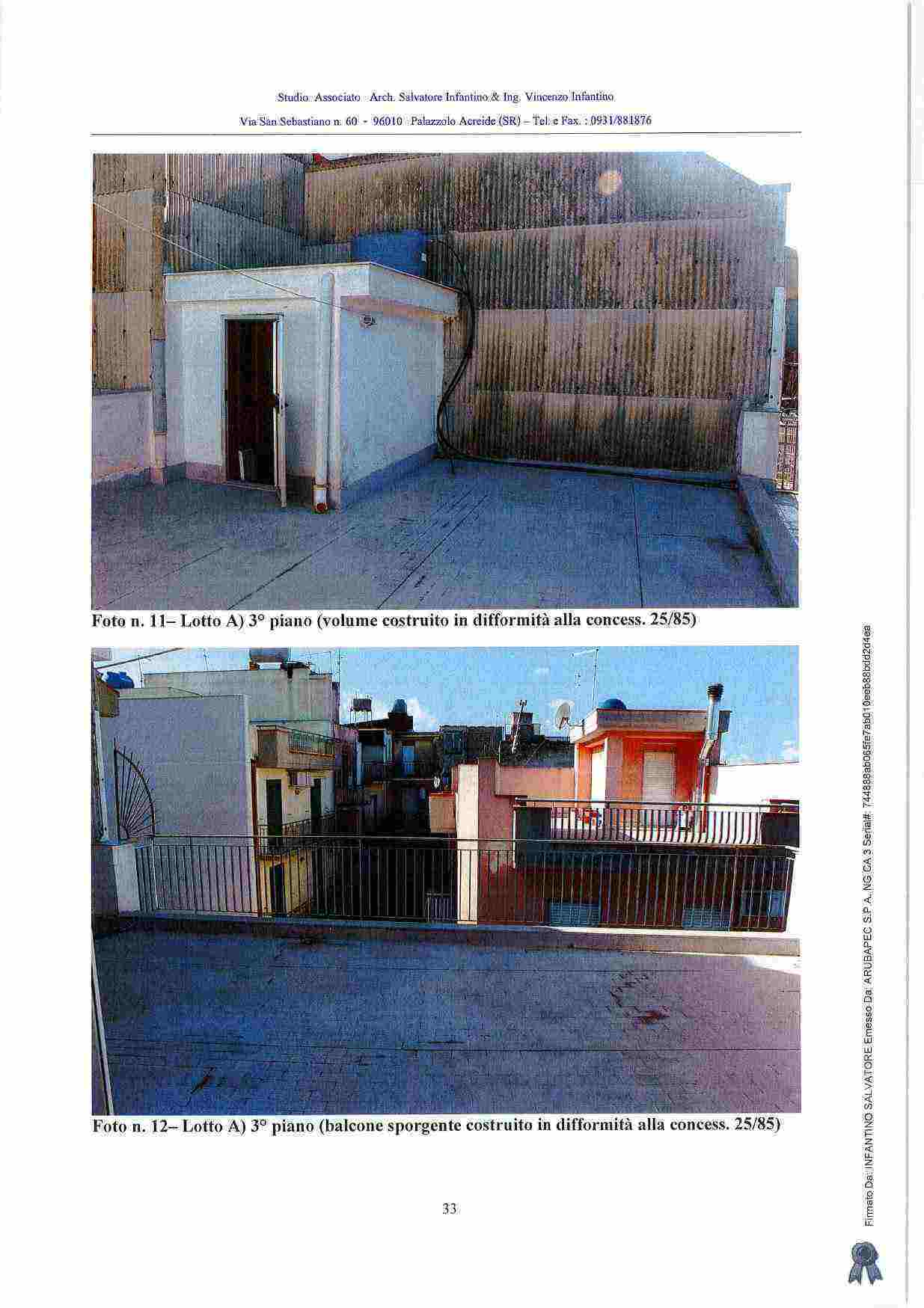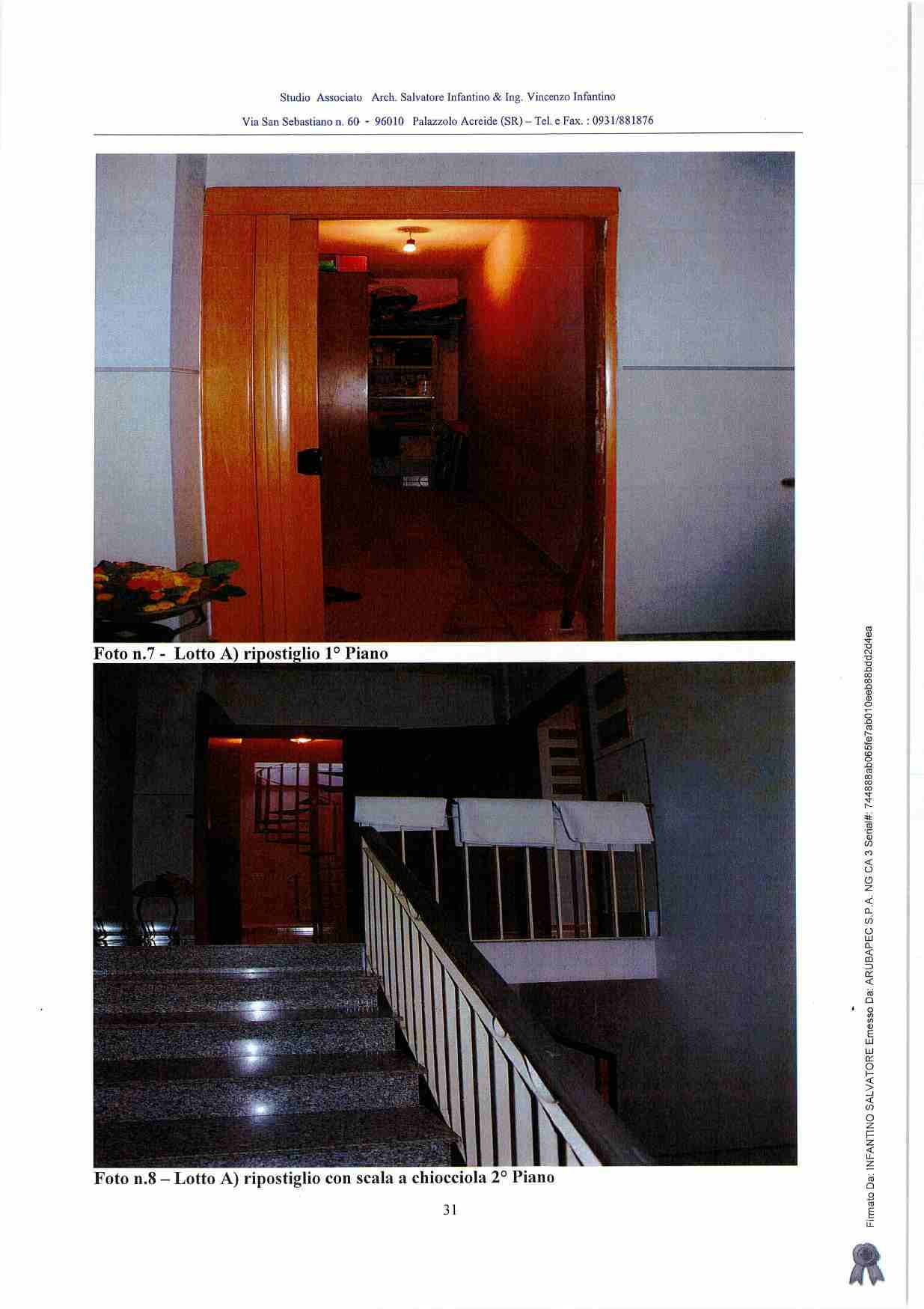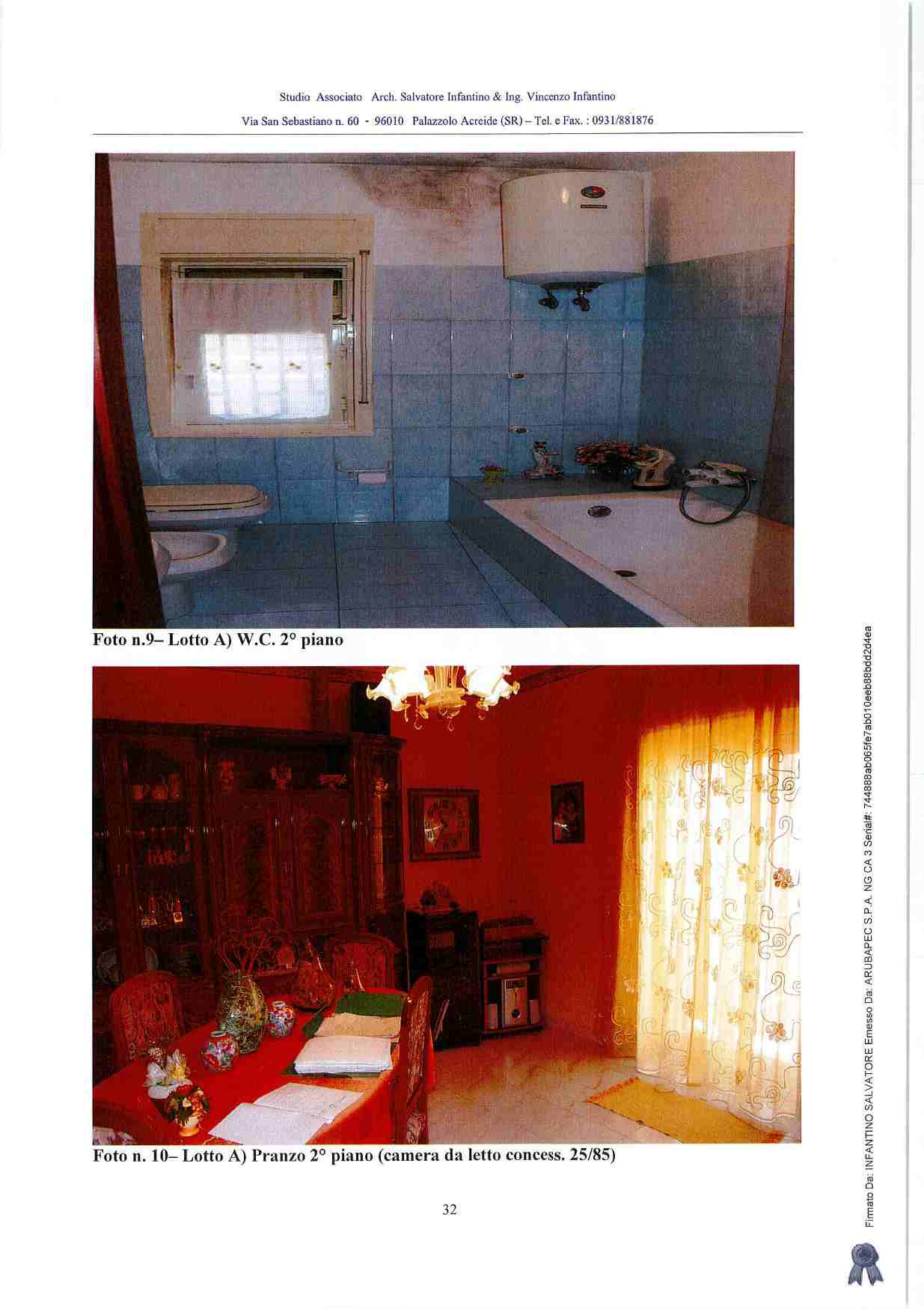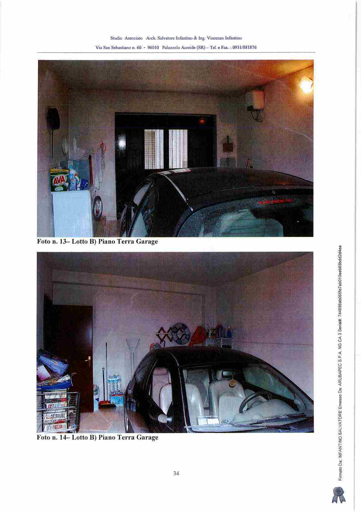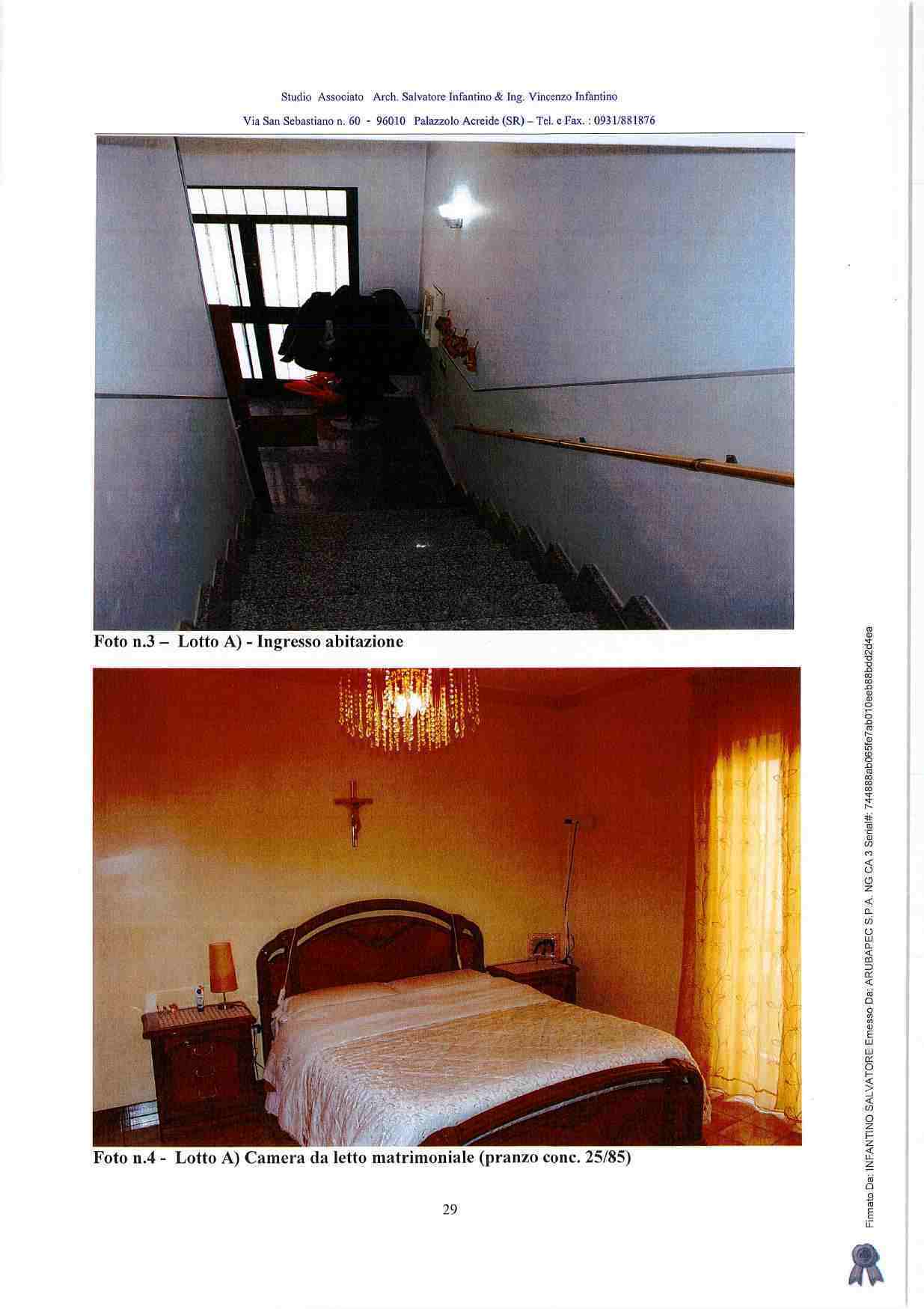 Piena proprietà di casa sita in Carlentini (SR), Via del Leone n. 24, composta da un garage e da un locale di sgombero a piano terra, da due vani ed accessori al primo piano, da due vani ed accessori al secondo piano, con terrazza e ripostiglio al terzo piano. Identificati in N.C.E.U. del Comune di Carlentini al foglio 88, p.lla 3716, sub. 2 - z.c. 1, cat. A/4, classe 2, vani 7, nonché al foglio 88, p.lla 3716, sub. 1 - z.c. 1, cat. C/6, classe 2, mq 21.