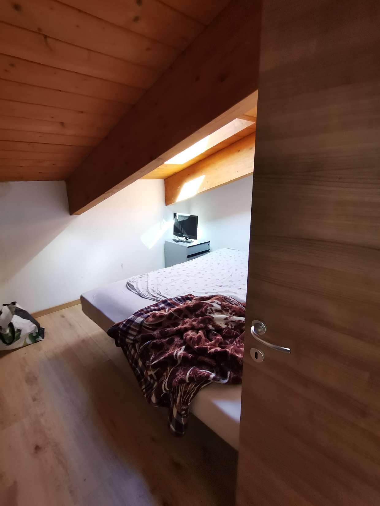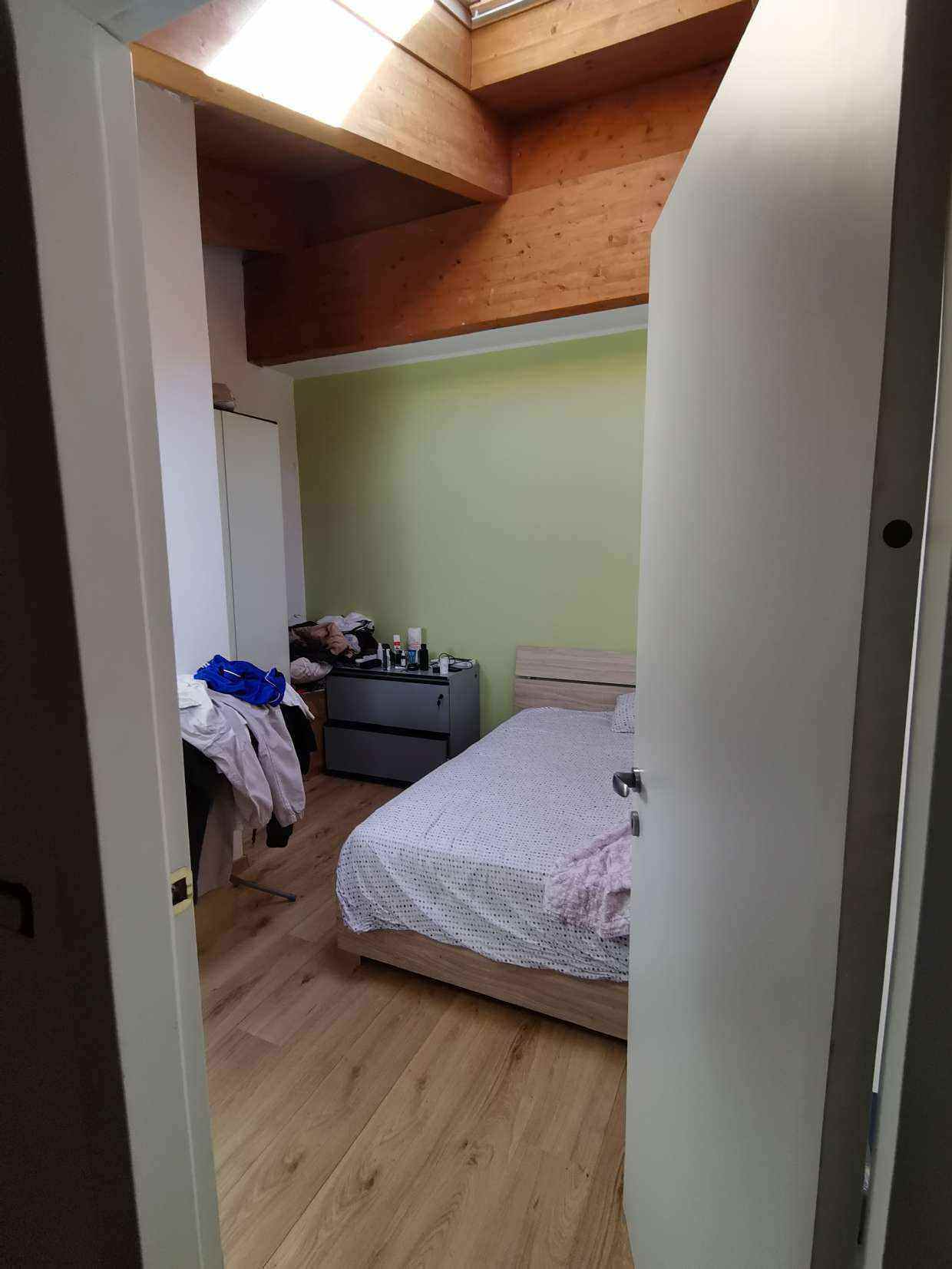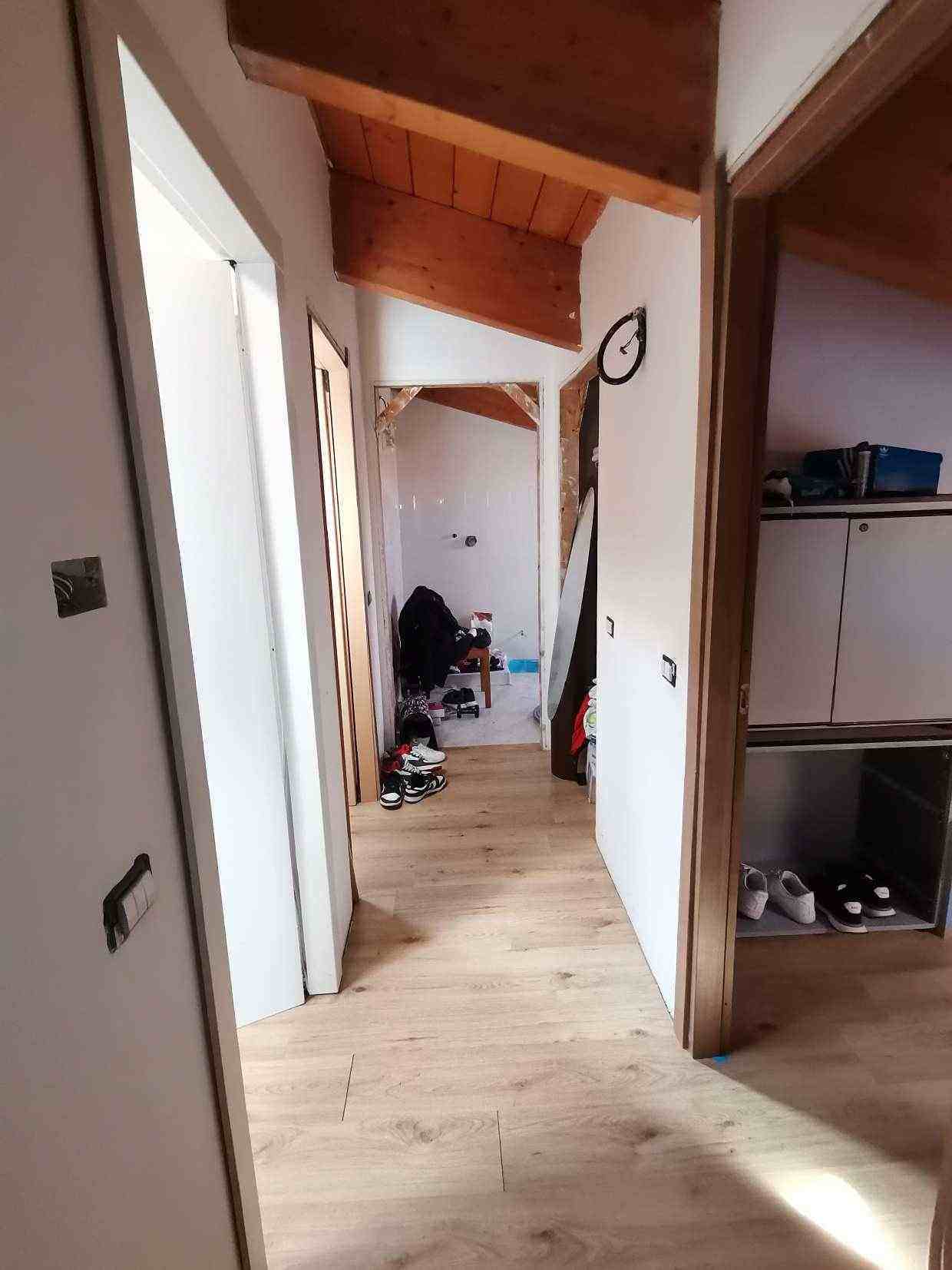 Appartamento , della superficie commerciale di 66,10 mq posto al piano primo e secondo (sottotetto) costituito: al piano primo da monolocale (soggiorno con angolo cottura), piccolo balconcino, disimpegno, bagno, scala interna che collega il piano secondo sottotetto senza permanenza di persone suddiviso e usato abusivamente in tre camere, ripostiglio e bagno (predisposizione), completano la proprietà una cantina ed un box