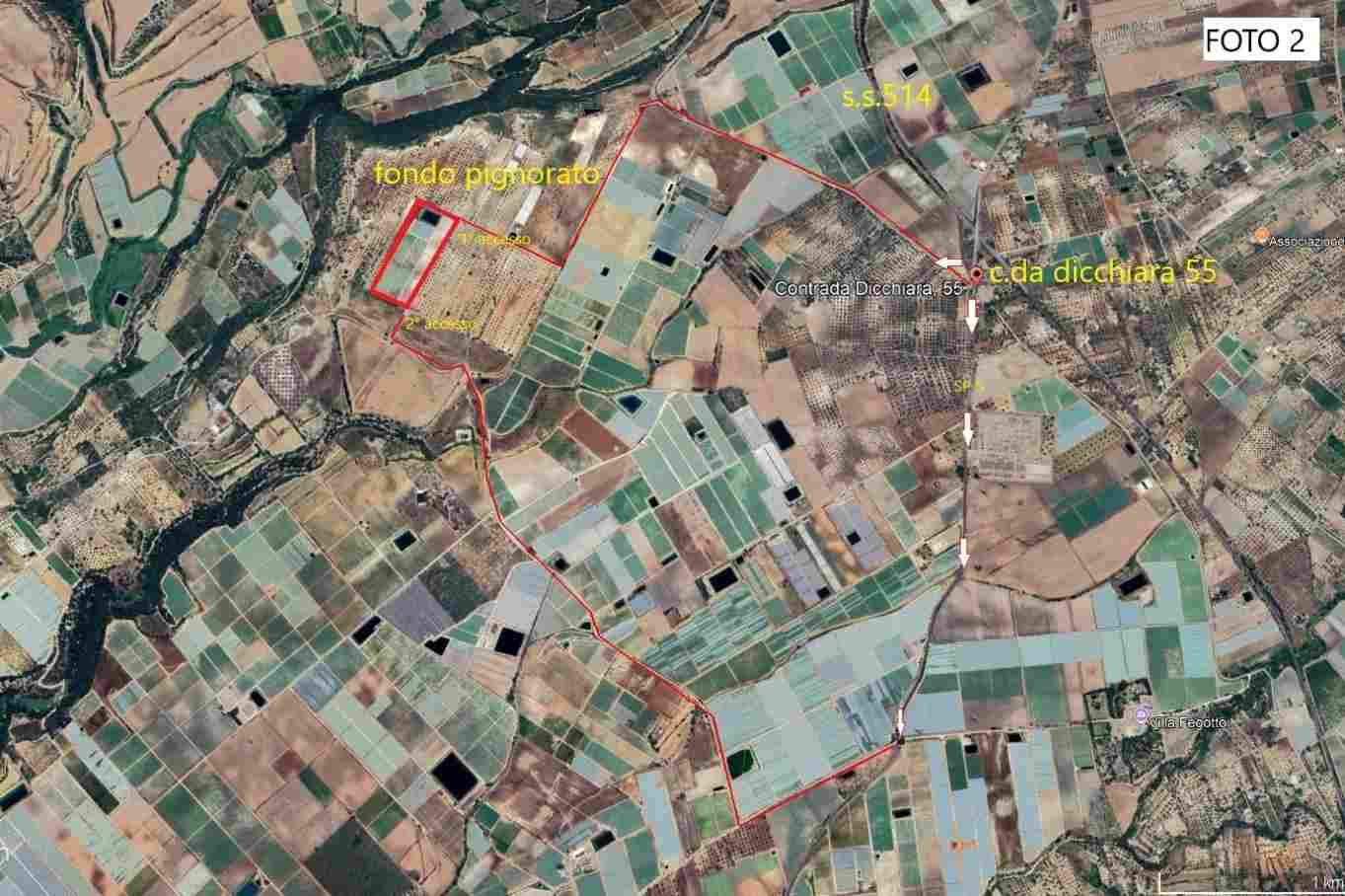 Fondo agricolo sito in Licodia Eubea alla contrada “Giurfo” c di complessivi Ha. 4,67,40 costituito da un invaso artificiale , un vigneto coltivato a uva da tavola con tendone irriguo di circa 8 anni per una superficie di circa are 42,00, un vigneto coltivato a uva da tavola con tendone irriguo di circa 12 anni per una superficie di circa Ha. 2,19,90 ed un giovane pescheto irriguo di circa 2 anni per una superficie di circa Ha. 1.55.50