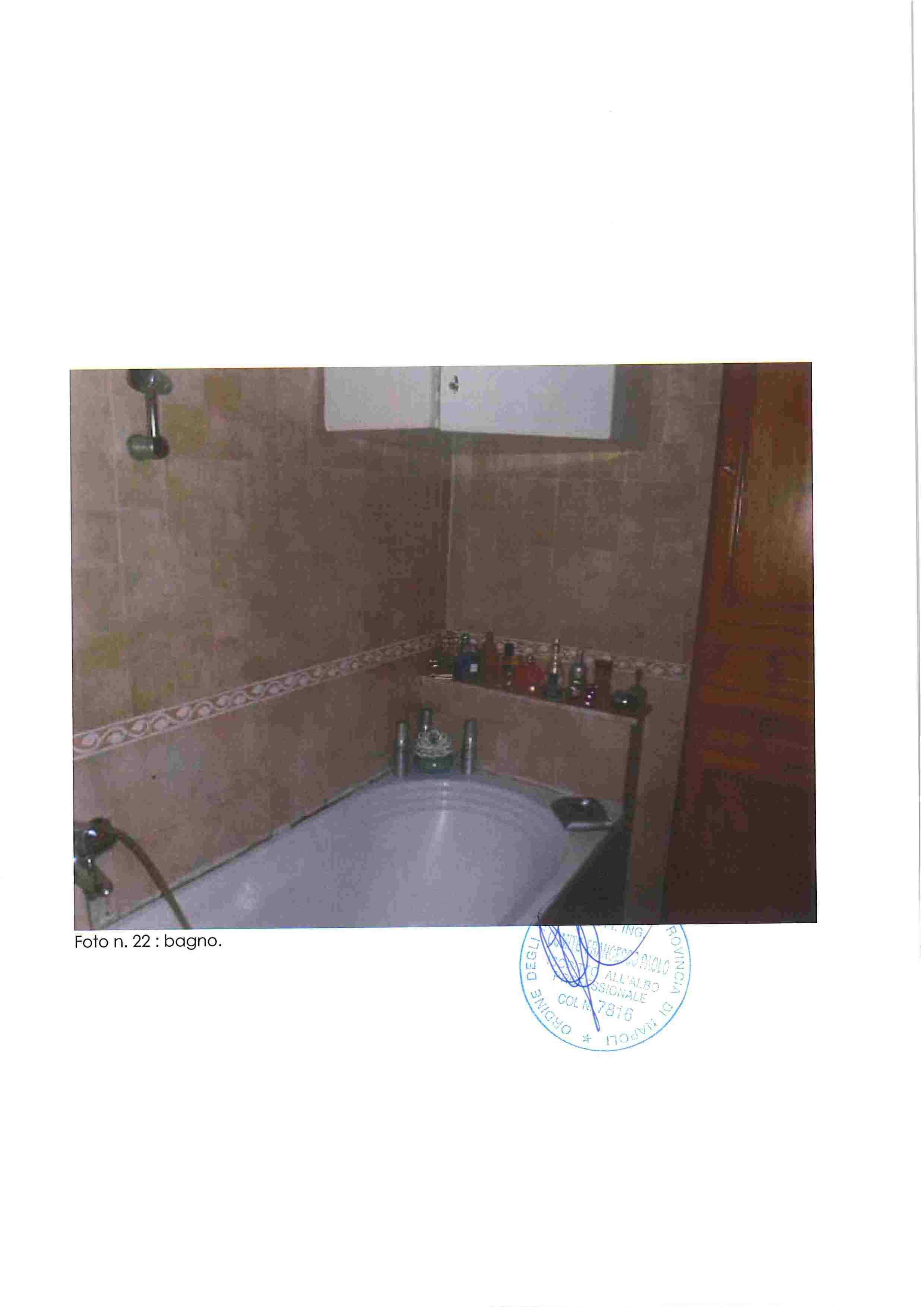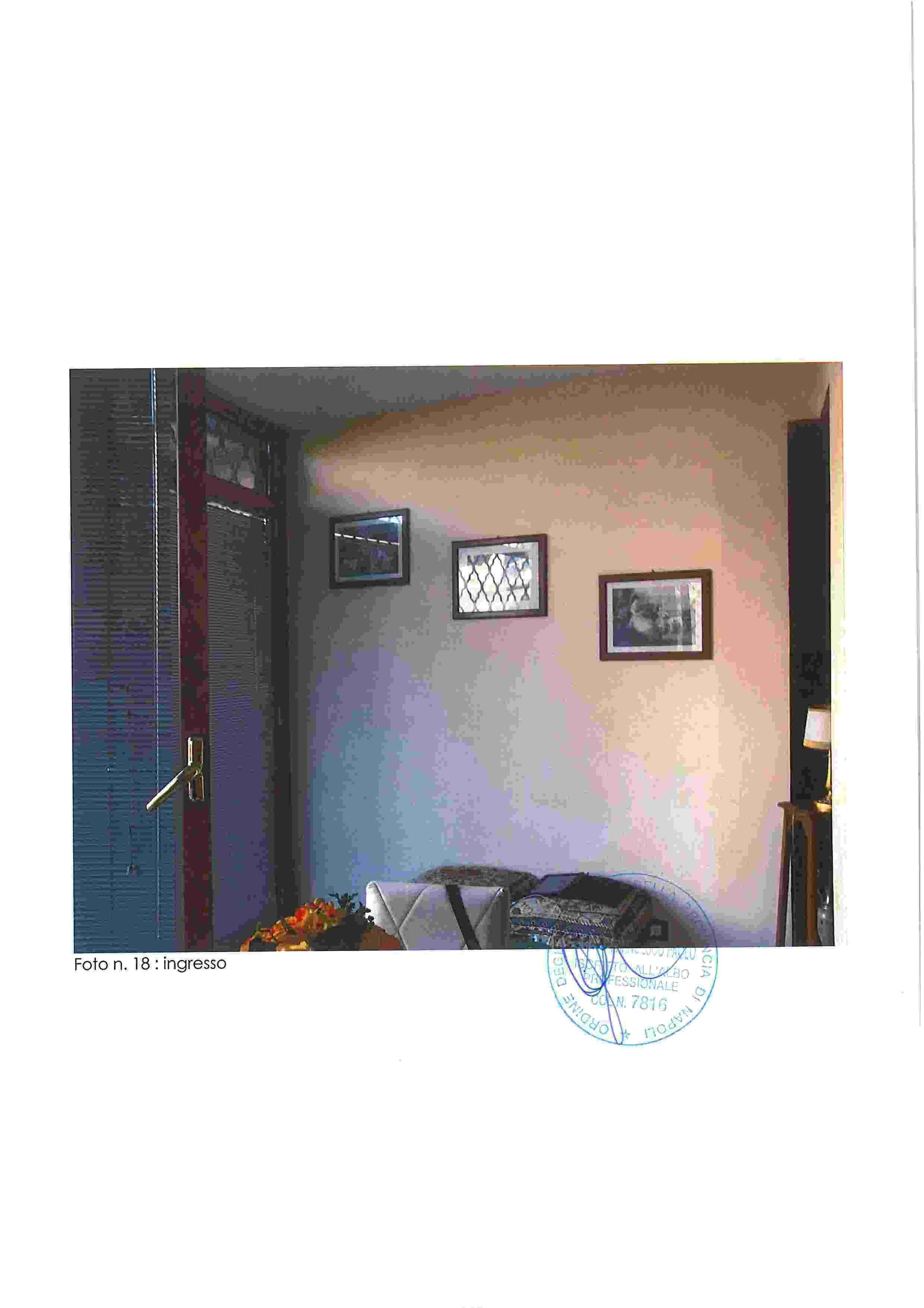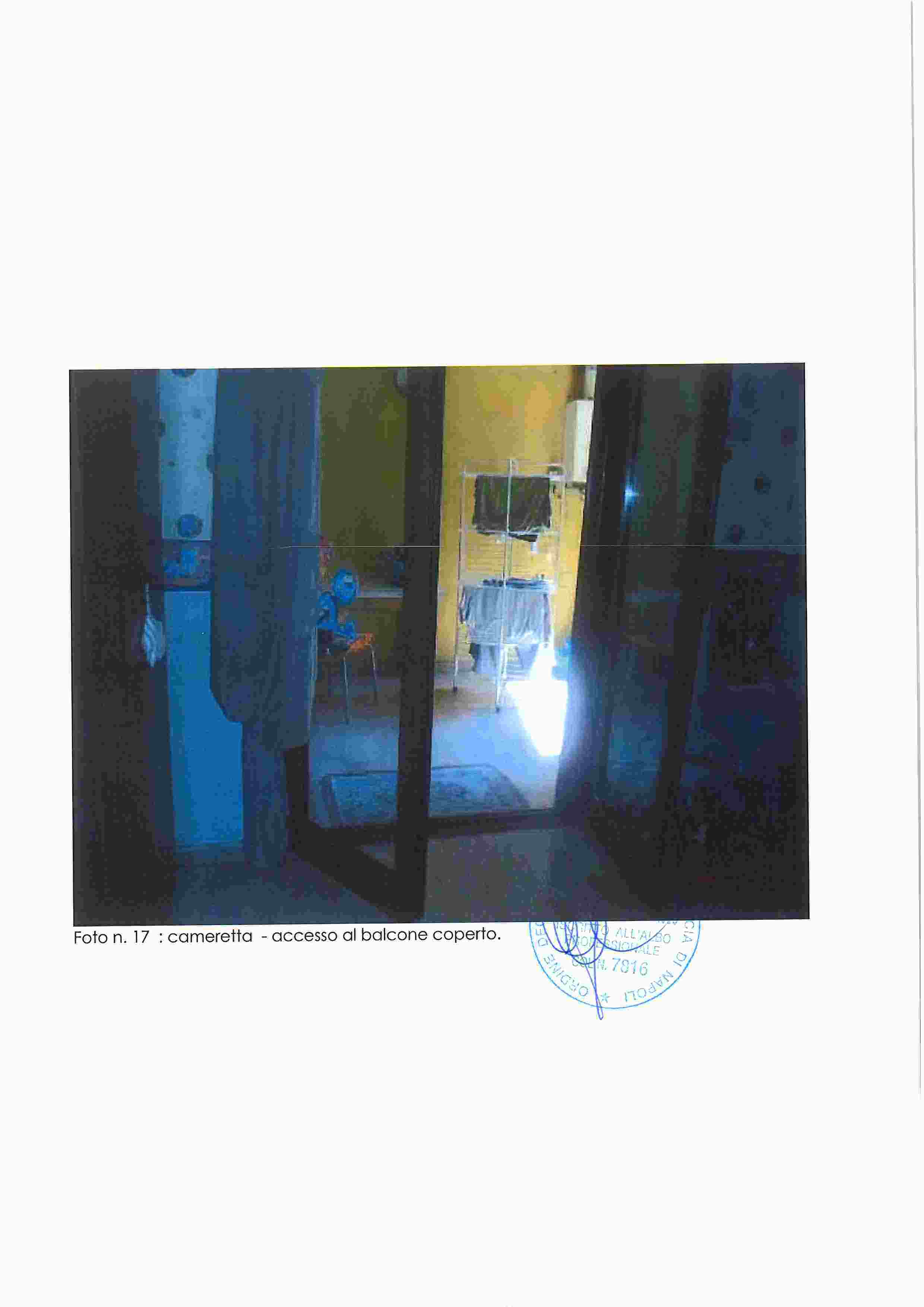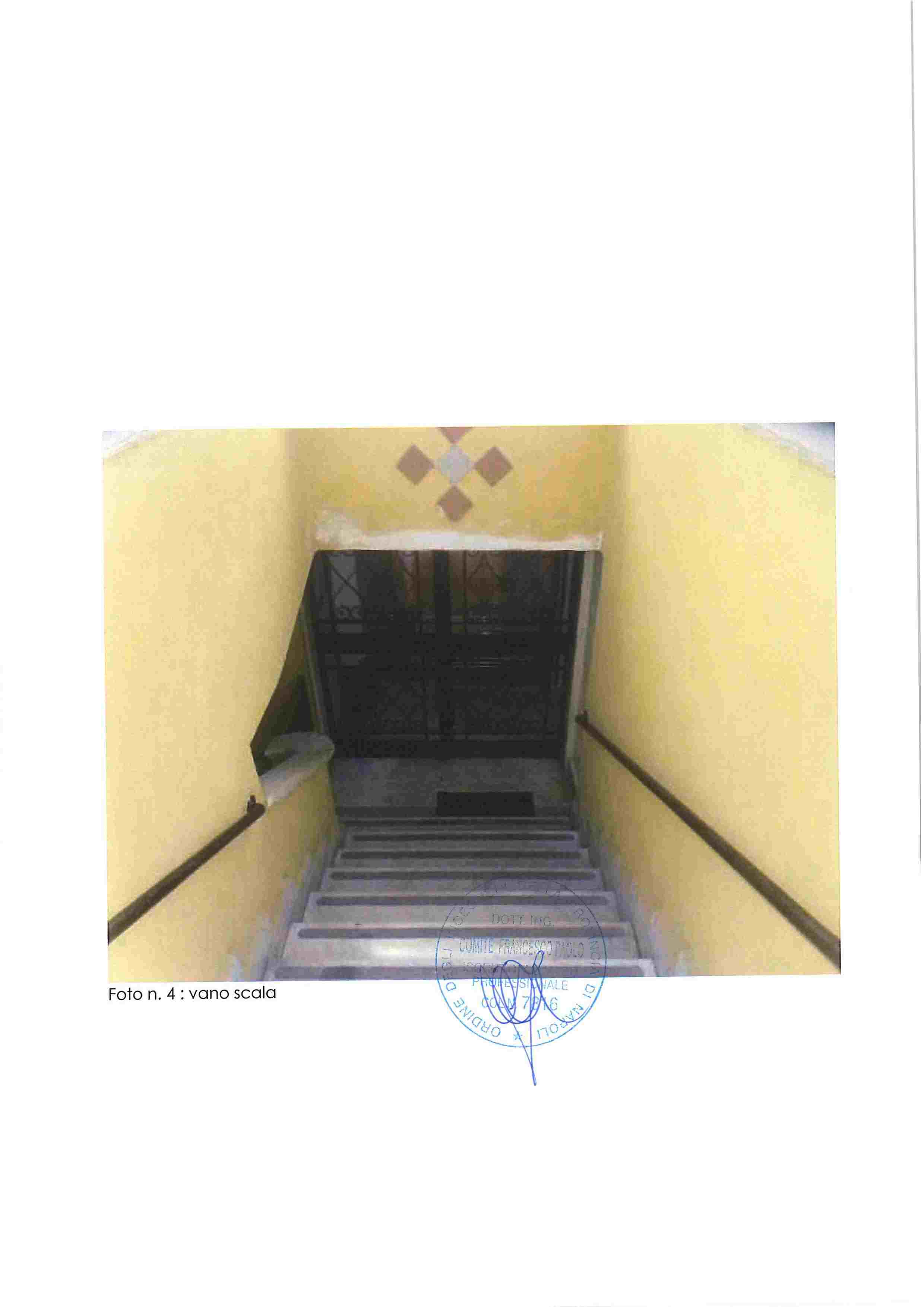 Piena proprietà di appartamento in Napoli, Via Nuova del Campo 51, composto da ampio salone-ingresso, cucina, tre camere, due bagni, due balconi e terrazza coperta. Buono stato di conservazione, altezza interna m. 2,93.Situato al piano secondo sottostrada, catasto fabbricati Napoli, sez. VIC, foglio 3, p.lla 184, sub. 35, cat. A/10, classe 2, vani 7,5, R.C. 2.401,52. Immobile libero.