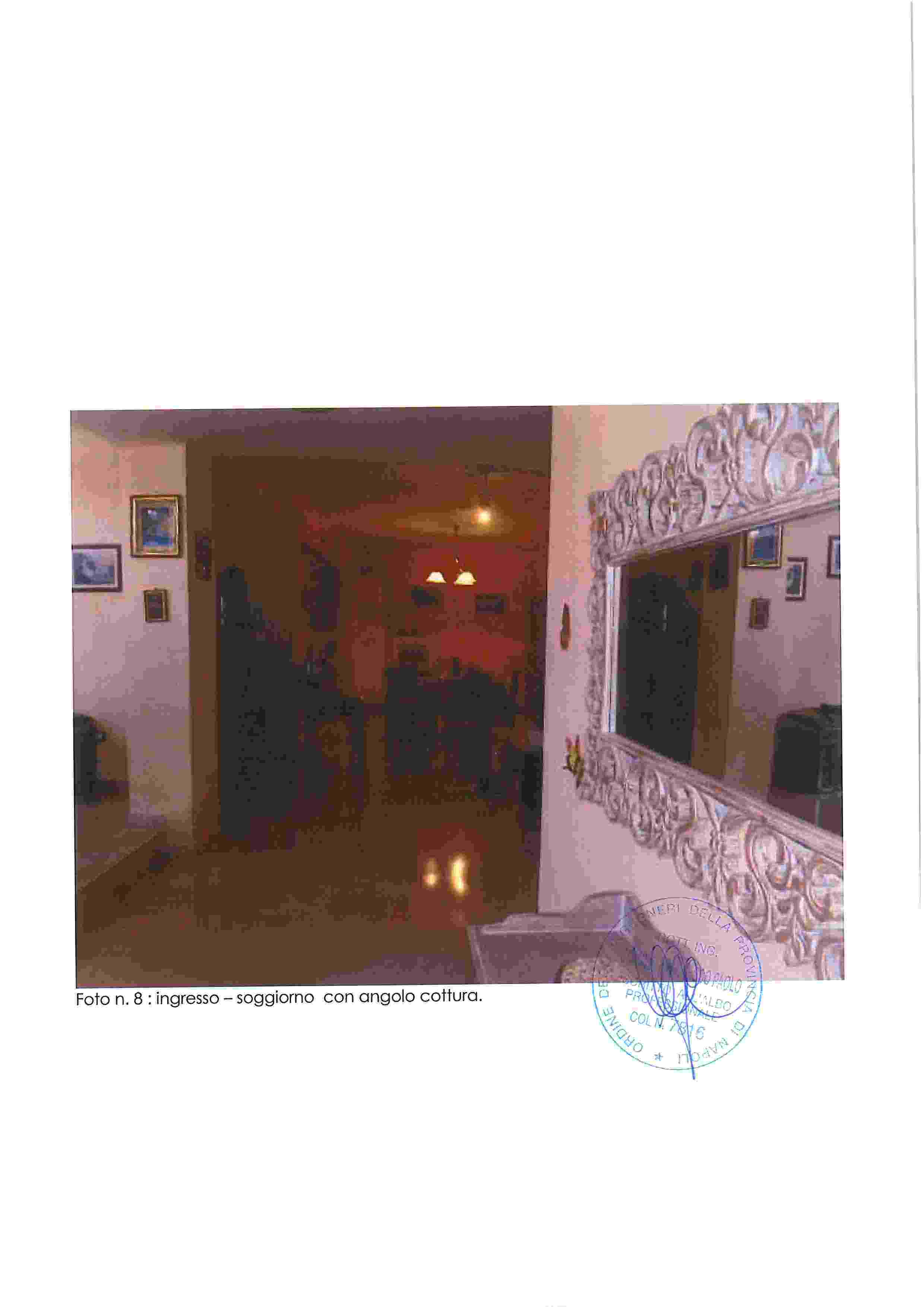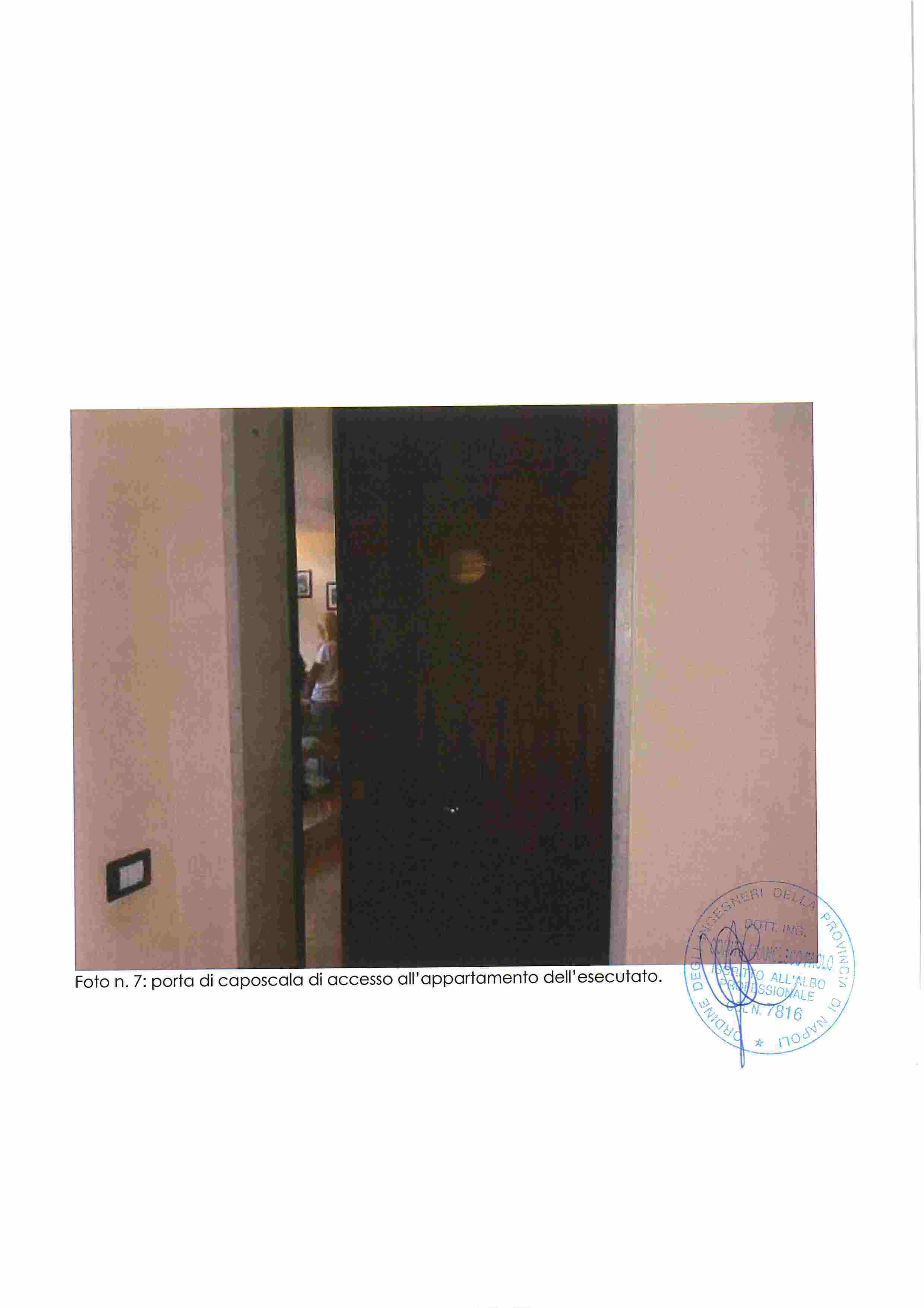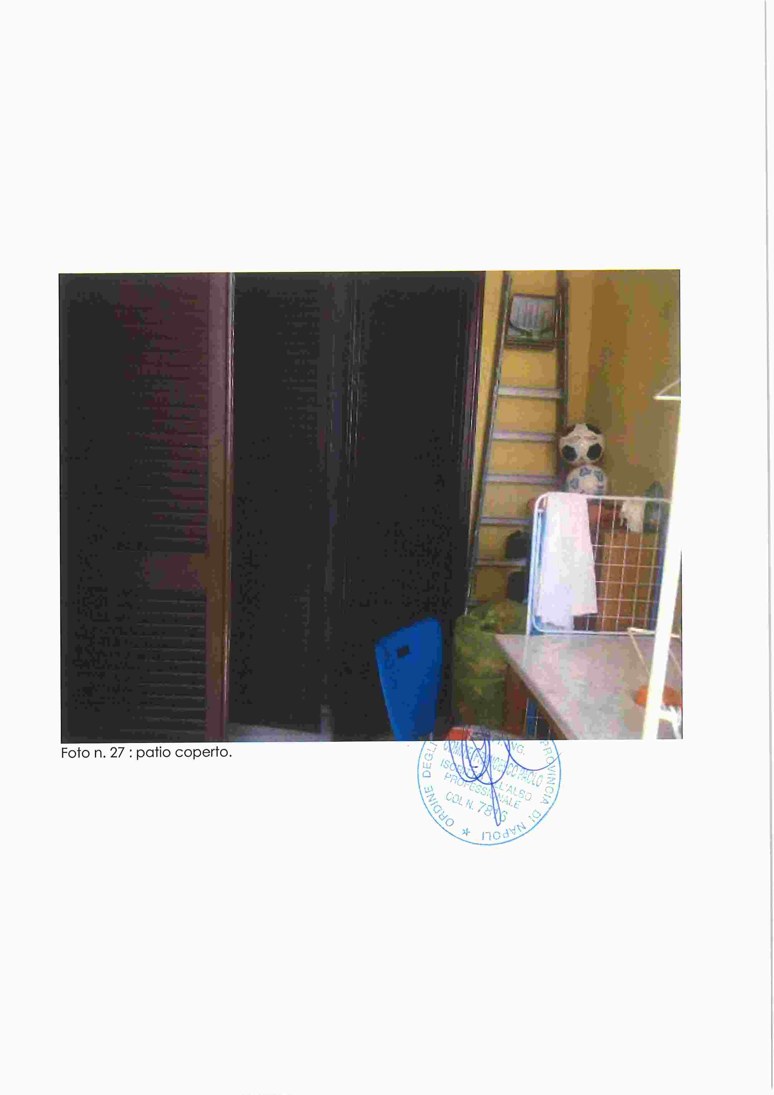 Piena proprietà di appartamento in Napoli, Via Nuova del Campo 51, composto da ampio salone-ingresso, cucina, tre camere, due bagni, due balconi e terrazza coperta. Buono stato di conservazione, altezza interna m. 2,93.Situato al piano secondo sottostrada, catasto fabbricati Napoli, sez. VIC, foglio 3, p.lla 184, sub. 35, cat. A/10, classe 2, vani 7,5, R.C. 2.401,52. Immobile libero.