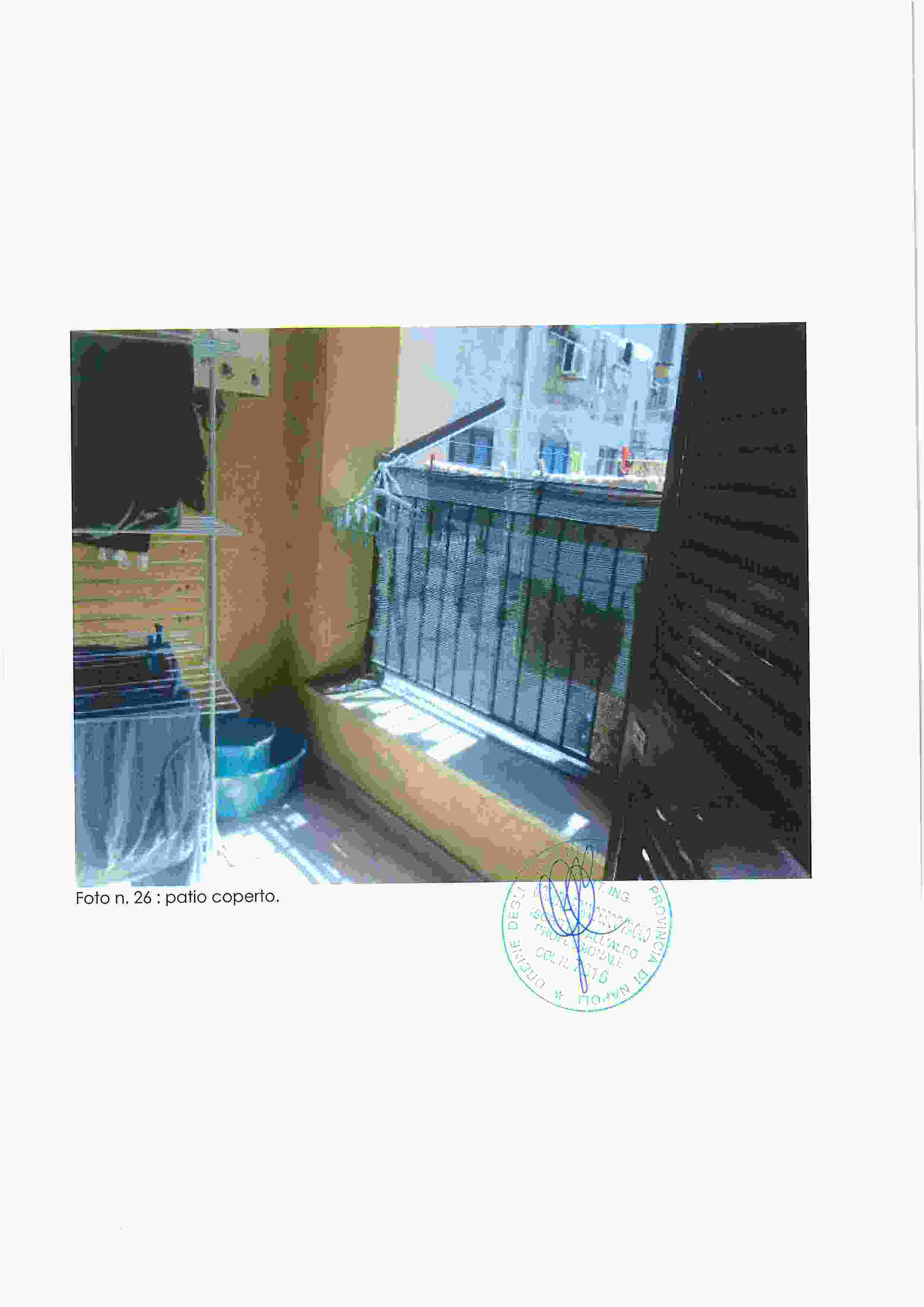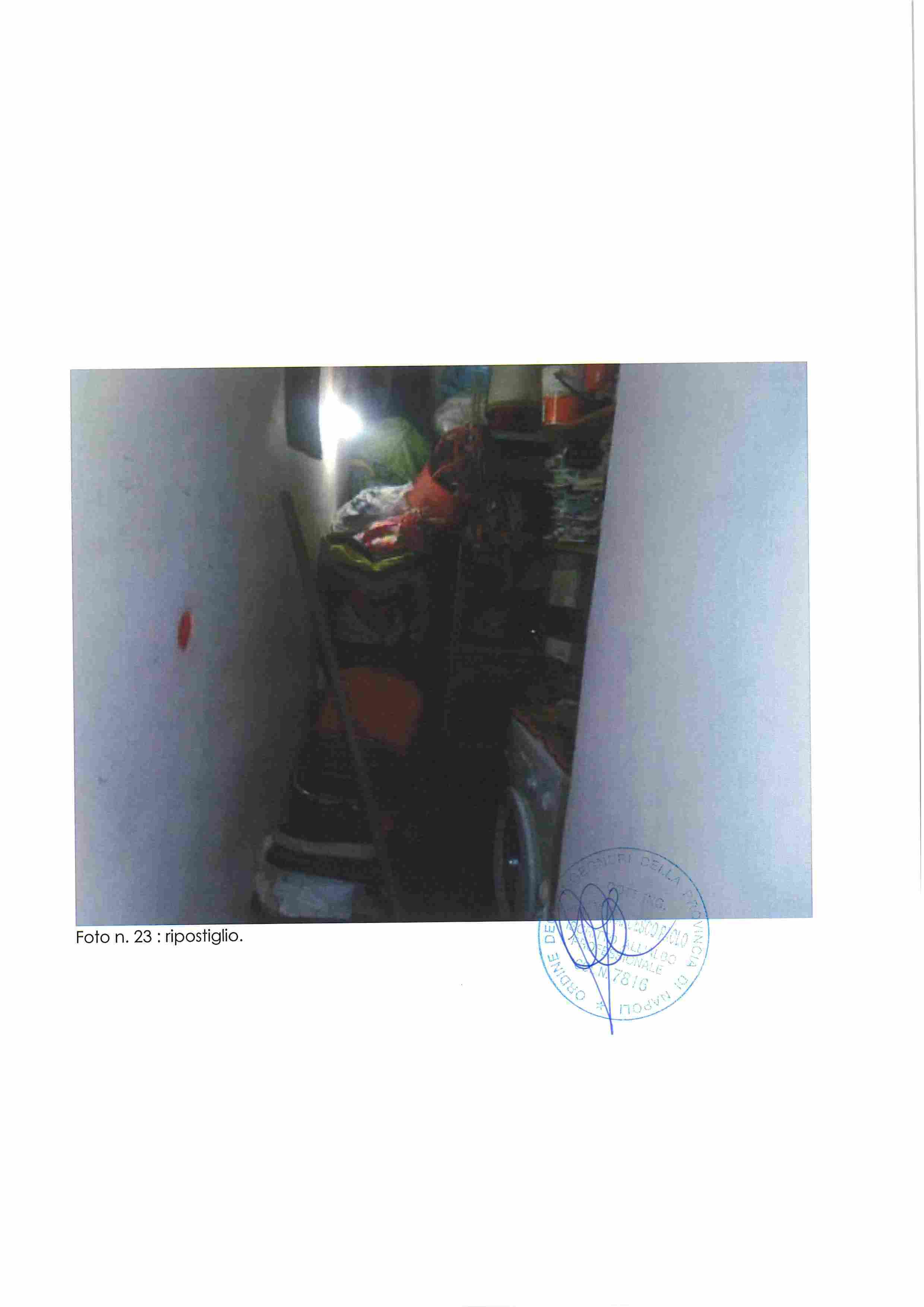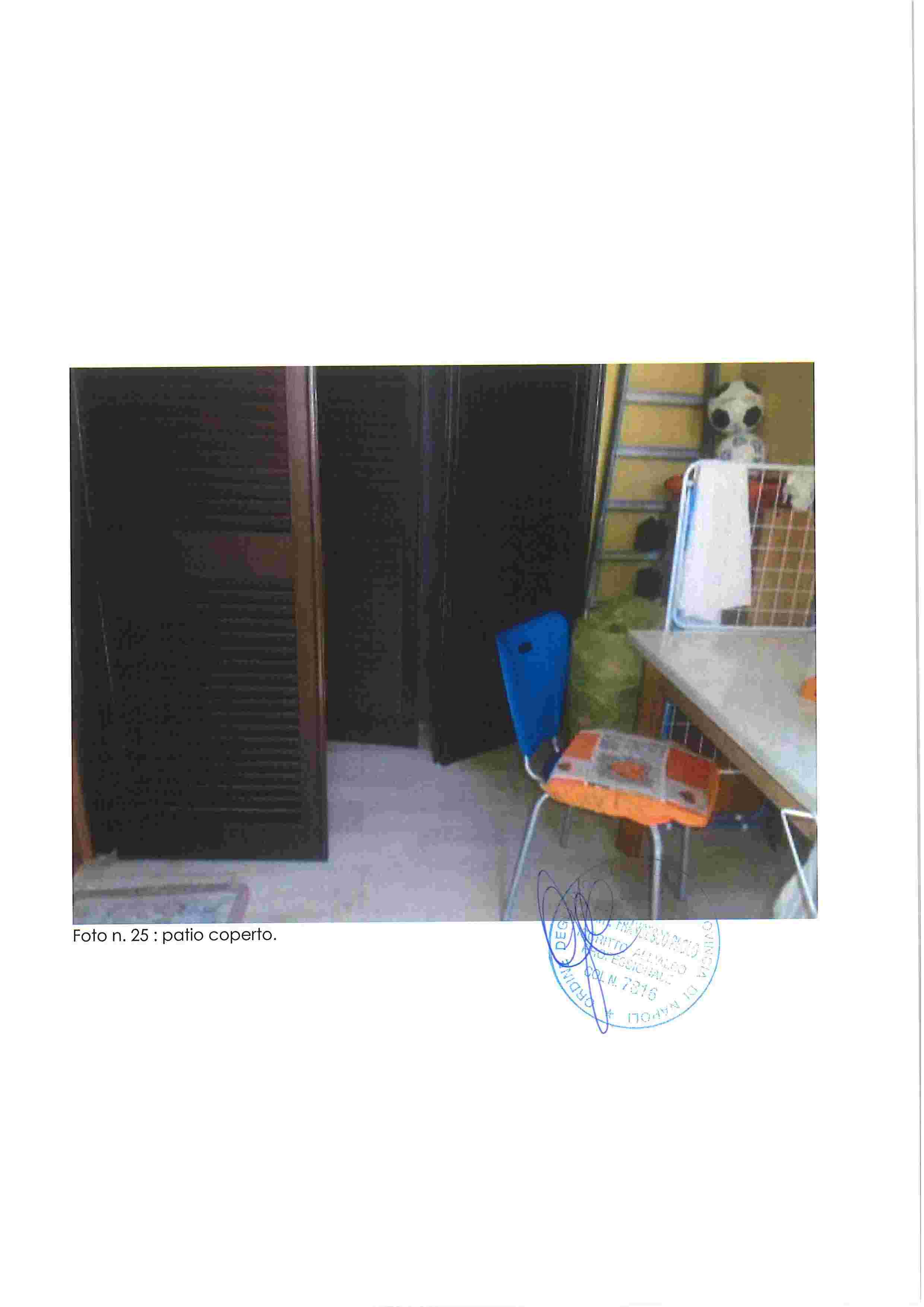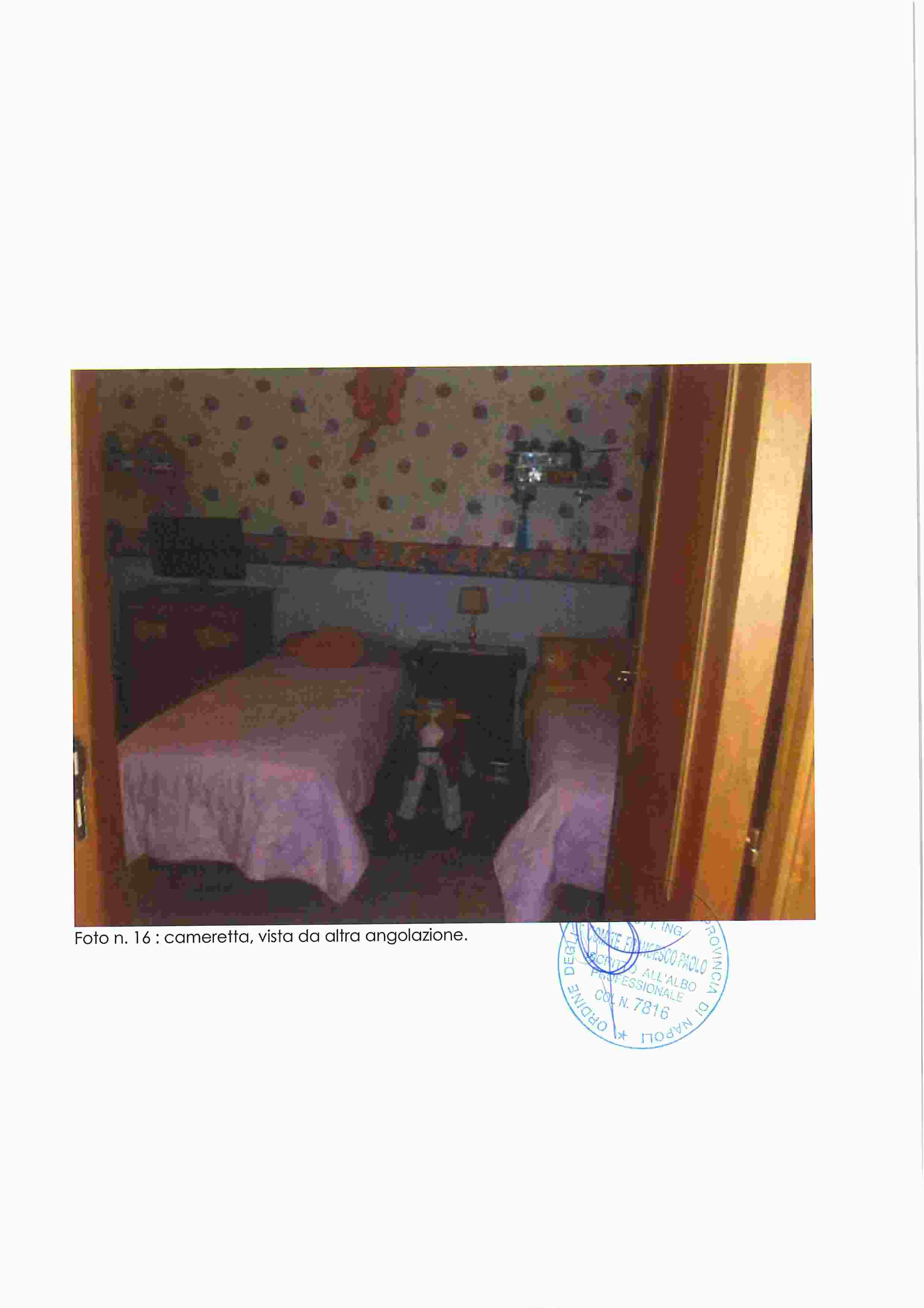 Piena proprietà di appartamento in Napoli, Via Nuova del Campo 51, composto da ampio salone-ingresso, cucina, tre camere, due bagni, due balconi e terrazza coperta. Buono stato di conservazione, altezza interna m. 2,93.Situato al piano secondo sottostrada, catasto fabbricati Napoli, sez. VIC, foglio 3, p.lla 184, sub. 35, cat. A/10, classe 2, vani 7,5, R.C. 2.401,52. Immobile libero.