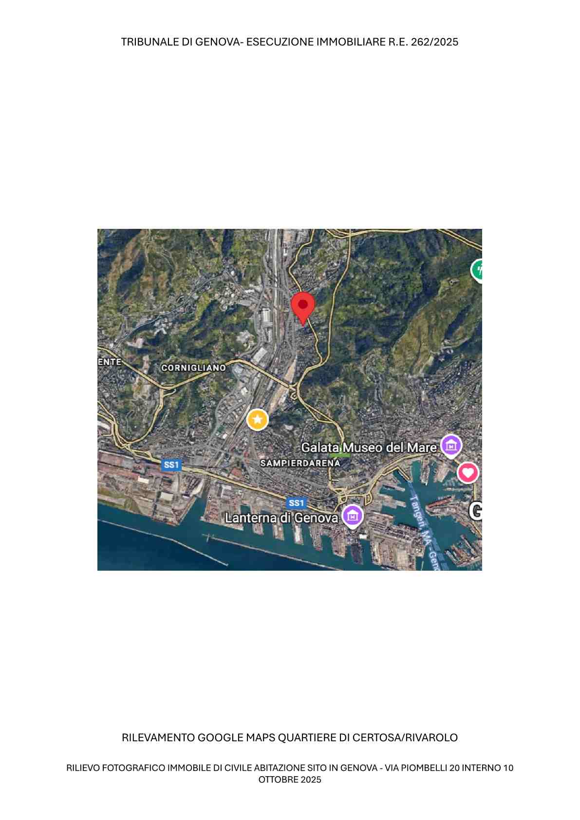 Piena proprietà : appartamento sito in Genova, Via Sergio Piombelli 20 int. 10, piano 5, mq. 68 lordi, vani 4,5 composto da ingresso/salotto, due camere da letto ampie, una cucina abitabile e un servizio.