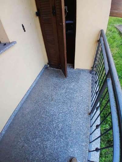 Appartamento al piano terra della superficie di mq.72, composto da soggiorno con angolo cottura, disimpegno, camera, bagno, due balconi e annessi box auto e cantina.