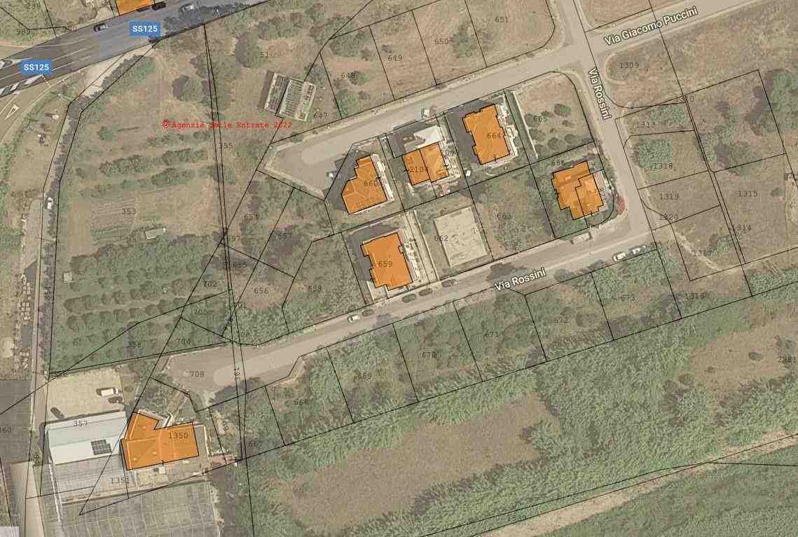 Piena proprietà per l'intero del terreno edificabile sito in Comune di Tortolì, loc. “Mussu Luisu”, nella zona periferica del Comune in prossimità dello svincolo tra nuova S.S. 125 e la Via Pirastu (Strada Statale 198 proveniente da Lanusei), distinto in C. T. al F. 9, particella 658 (ex 51), agrumeto, cl. 2, della superficie di 5 are e 36 centiare
