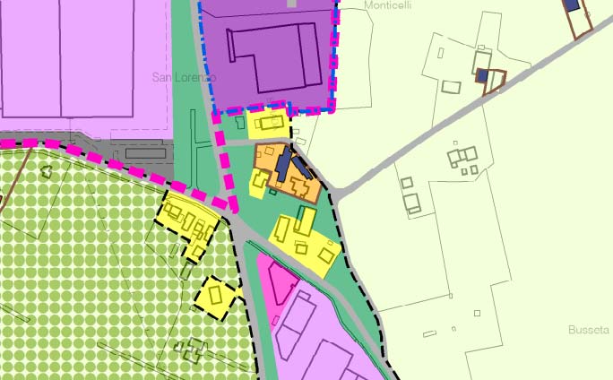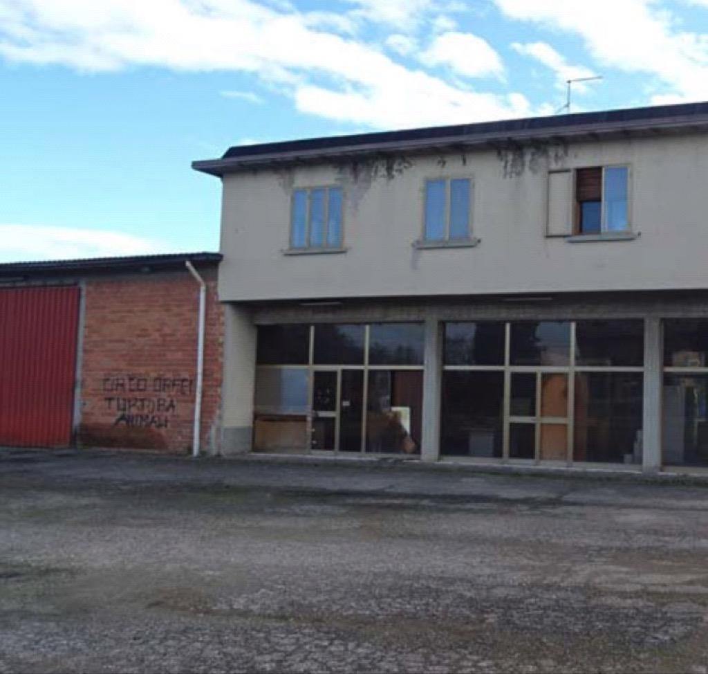 Piena proprieta' di area edificabile industriale censita al Foglio 25 Mappale 56 di mq 1080. Quota di 1/2 di proprieta' di un compendio immobiliare con sovrastanti fabbricati comprendente area della superficie catastale nominale di mq. 2.565, Foglio 25 Mappale 57, con sovrastante articolato edificio destinato in parte a opificio, in parte a negozio con presenza di abitazione al piano primo.