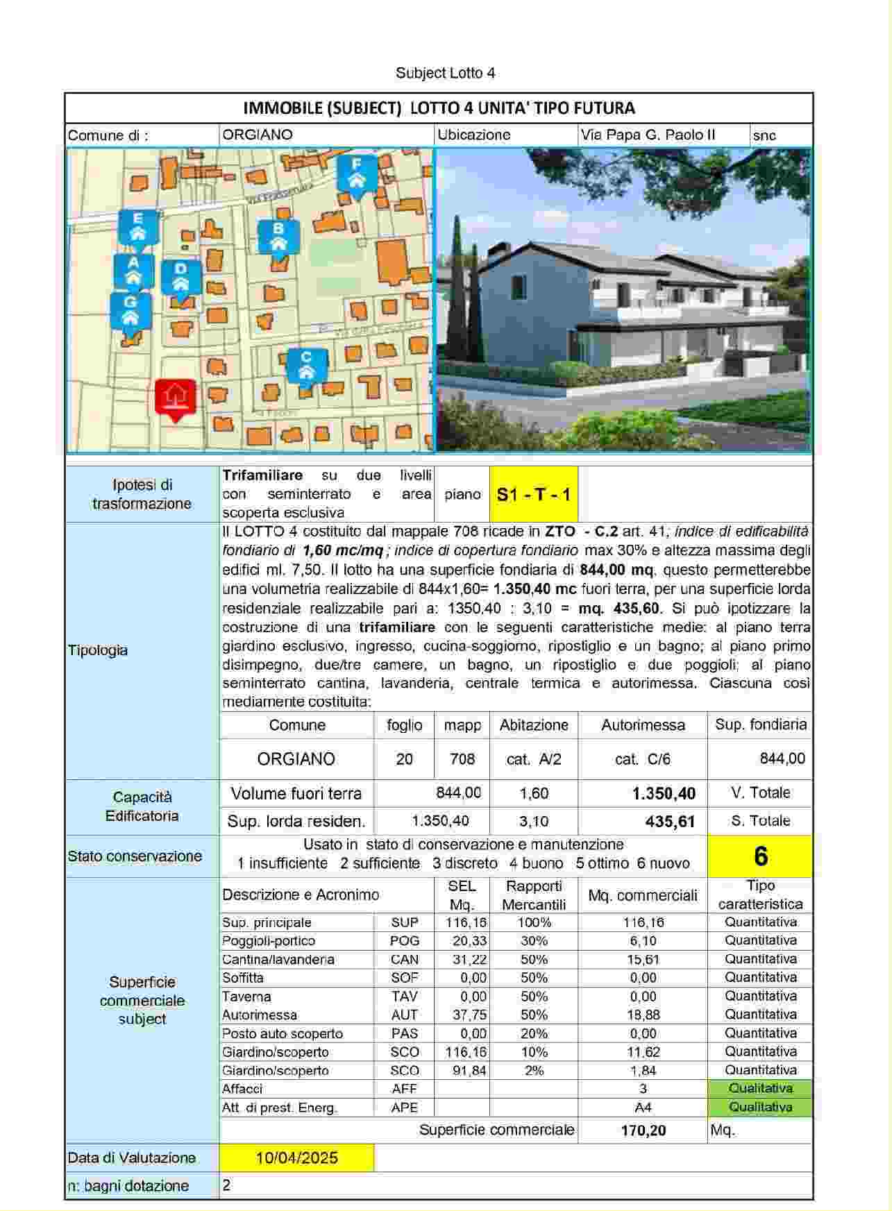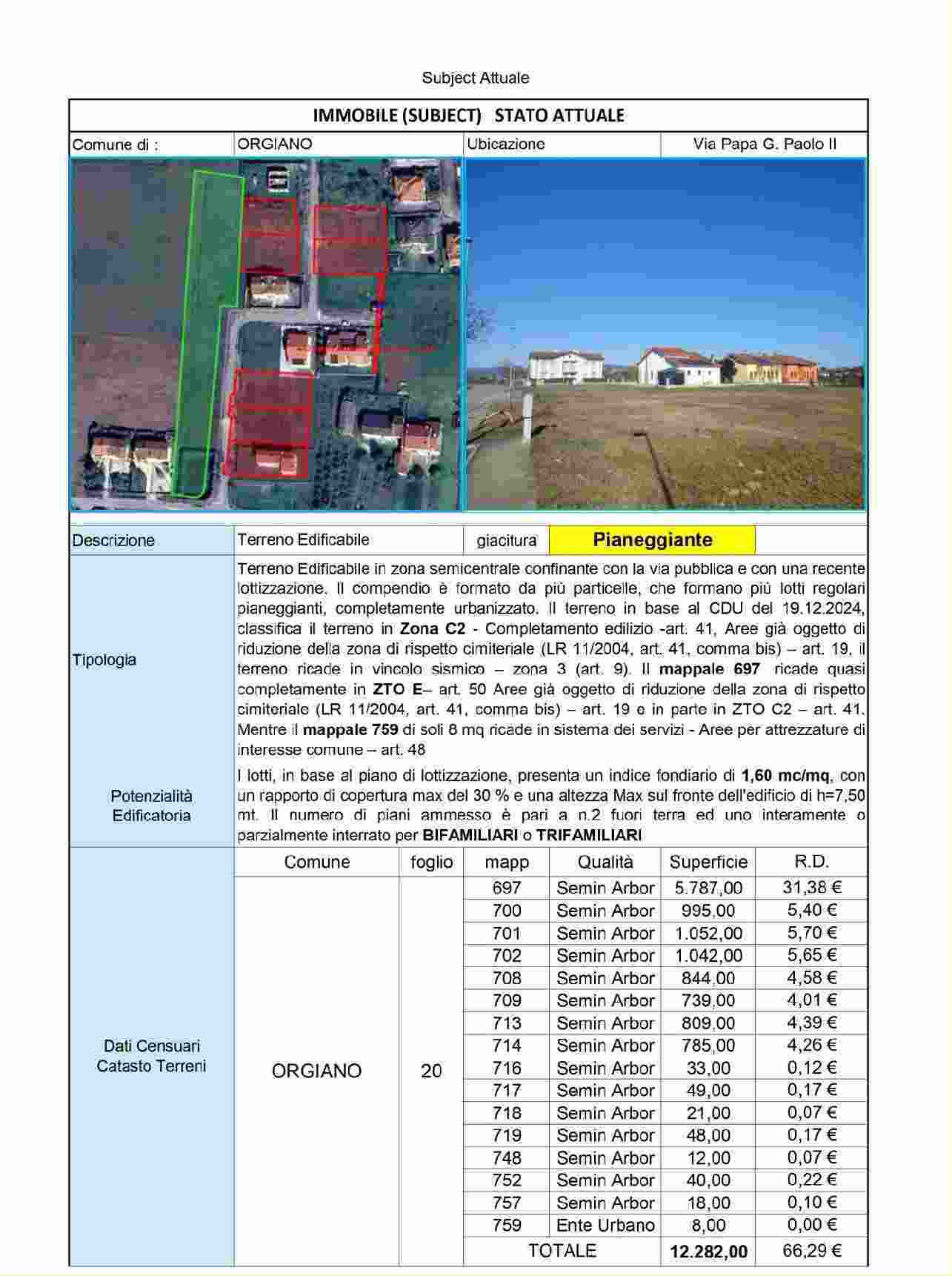 Terreno edificabile pianeggiante avente superficie fondiaria di mq. 844,00, permettendo una volumetria realizzabile di circa mc. 1.350,40 fuori terra, per una superficie residenziale realizzabile p...
