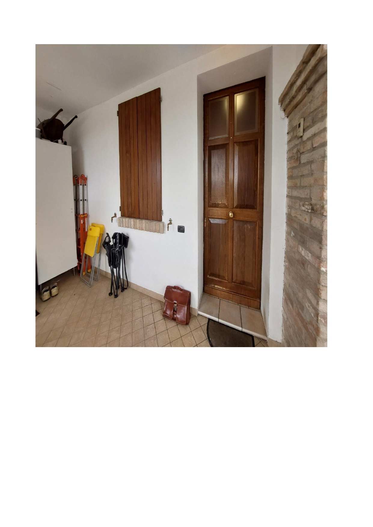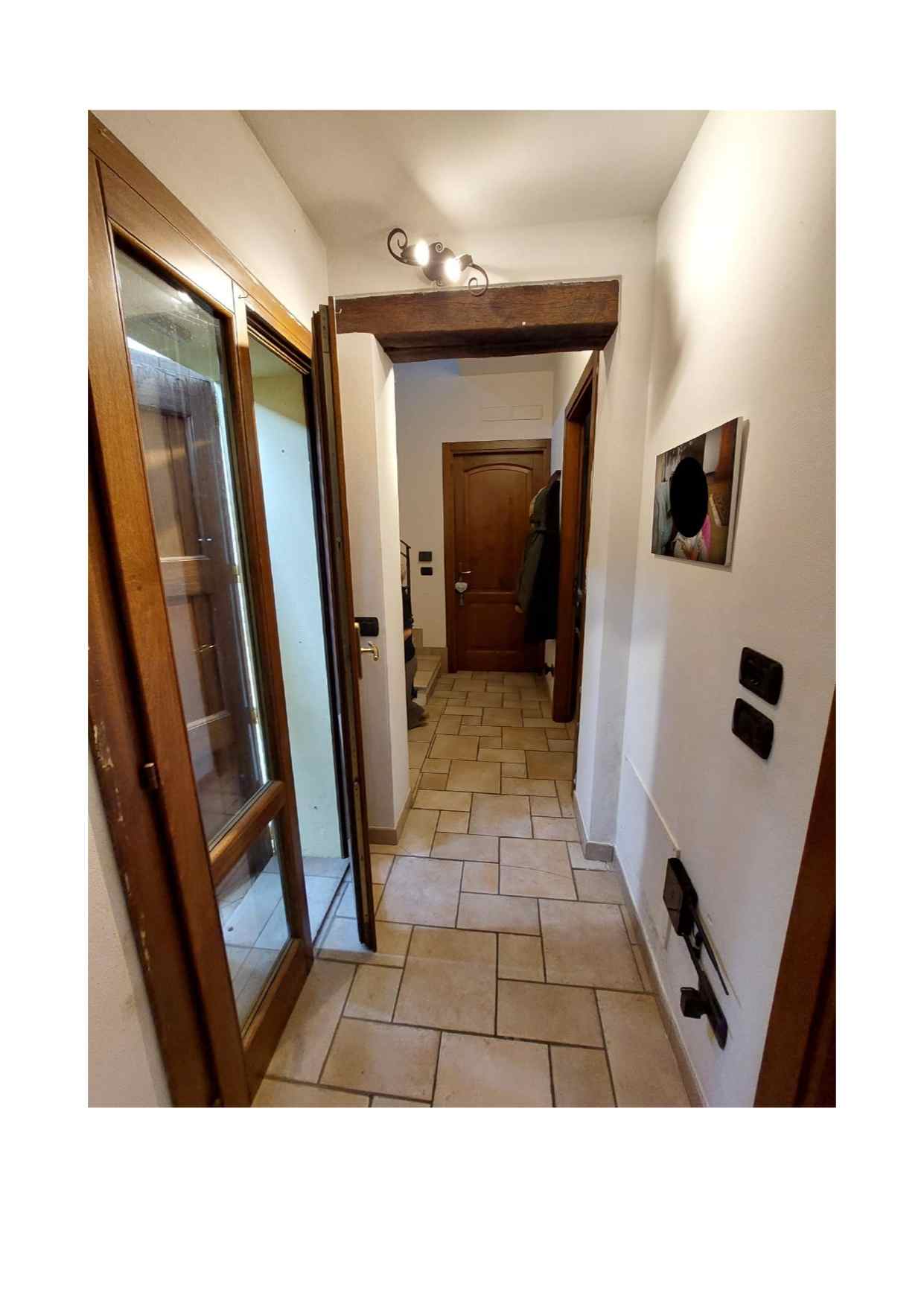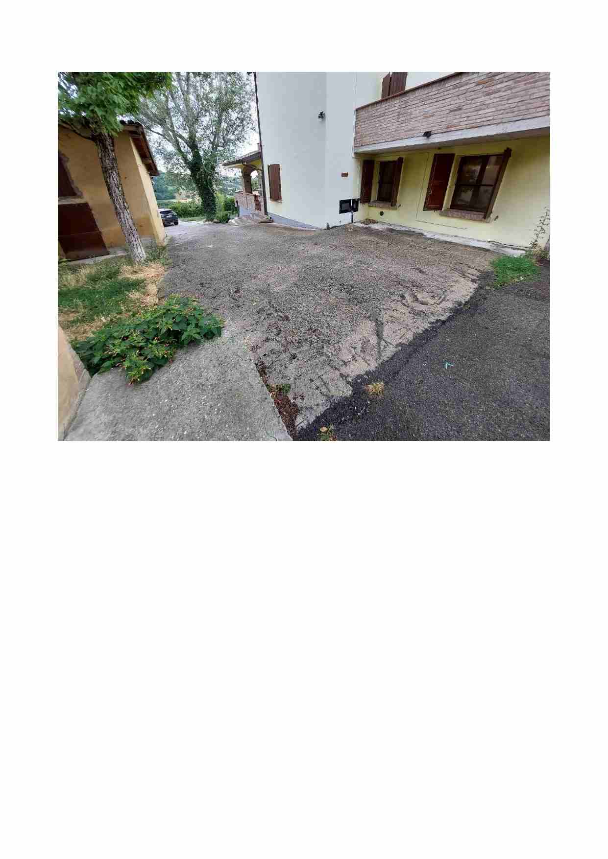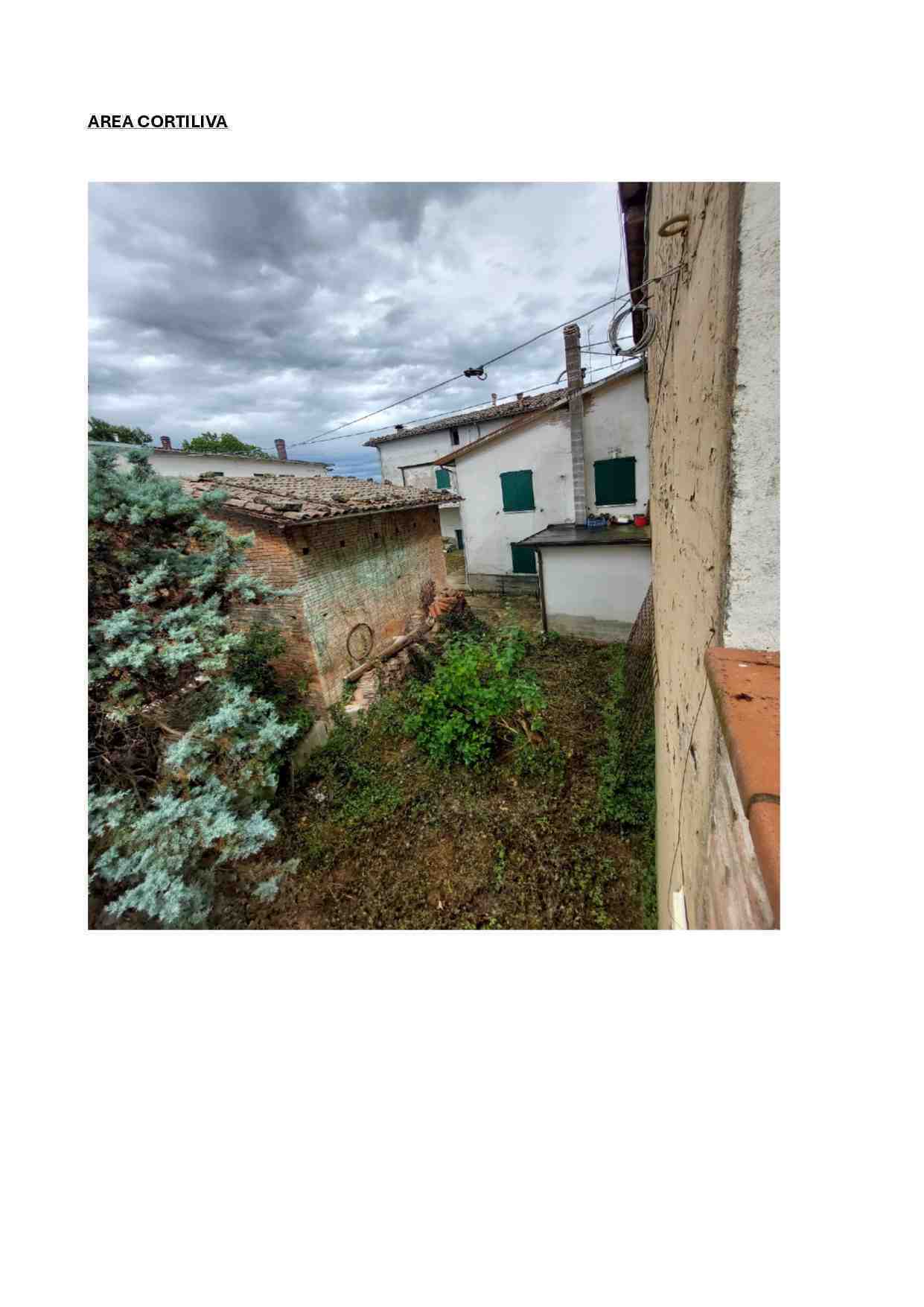 Piena ed esclusiva proprietà di fabbricato unifamiliare in aderenza ad immobili di altre proprietà con accesso singolo esterno da portico di altra proprietà per il cui passaggio non risultano agli atti servitù regolarmente trascritte, oltre ad una piccola area di pertinenza privata non recintata, di fatto trattasi di area di transito anche per gli immobili attigui e di una piccola porzione di terreno incolto posto sul lato nord, anch’essa non recintata.