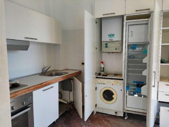 Abitazione con accesso indipendente sita al pianterreno di una palazzina di 4 piani, consistenza 5 vani, superficie mq 88 tot. escluse aree scoperte mq 83; libero.