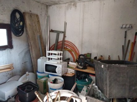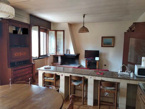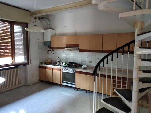 - Appartamento posto su due livelli, composto al piano terra di soggiorno con angolo cottura e tre ripostigli; al piano primo di disimpegno, due camere, bagno, ripostiglio, terrazzo e tre depositi, con annessa autorimessa di pertinenza posta al piano terra - quota di 1/3 di piena proprietà di terreno