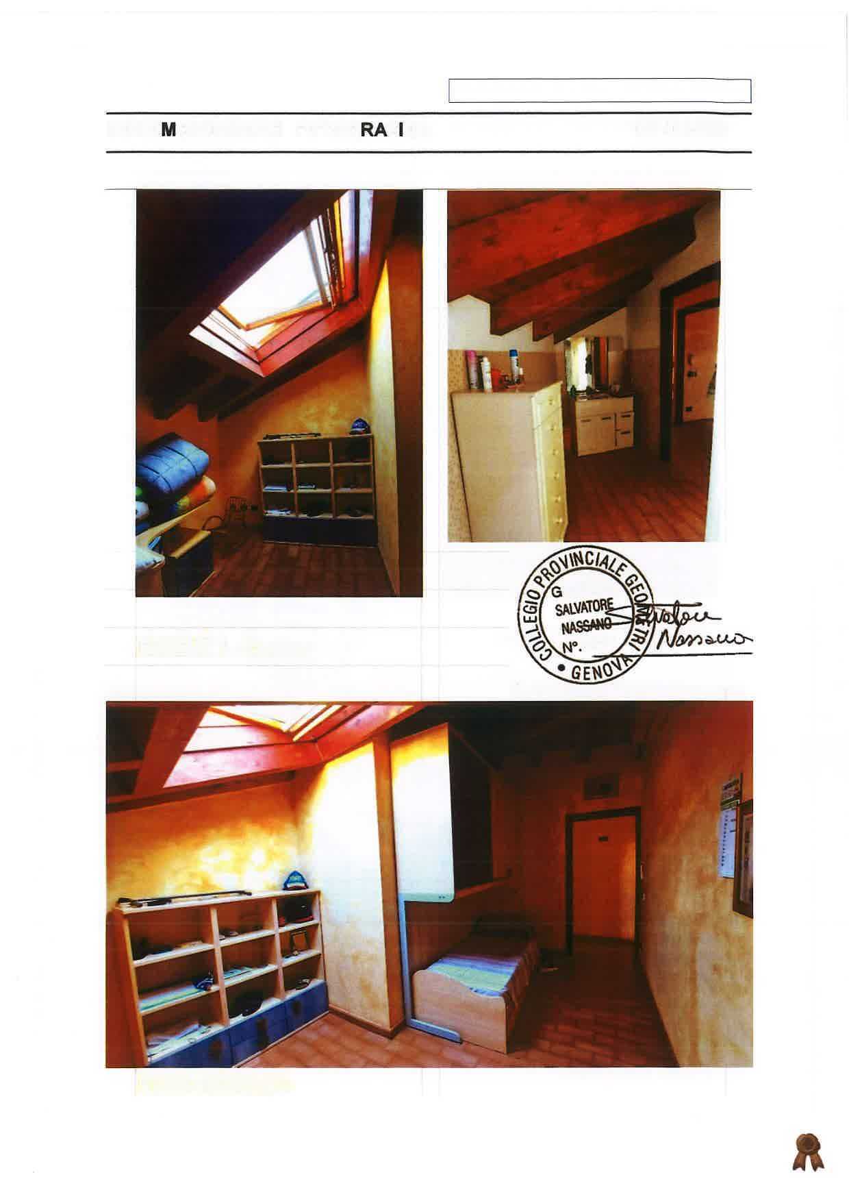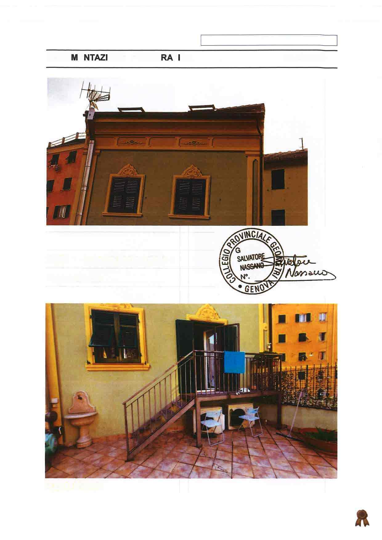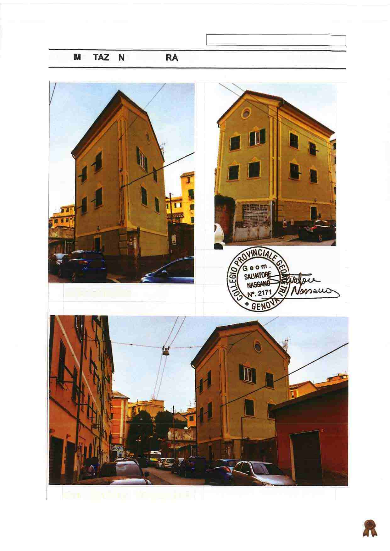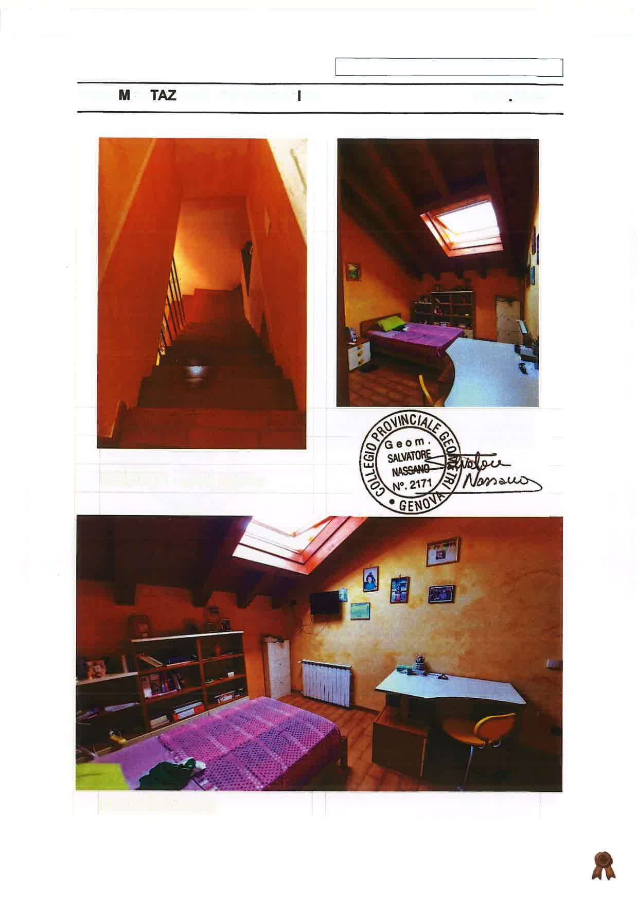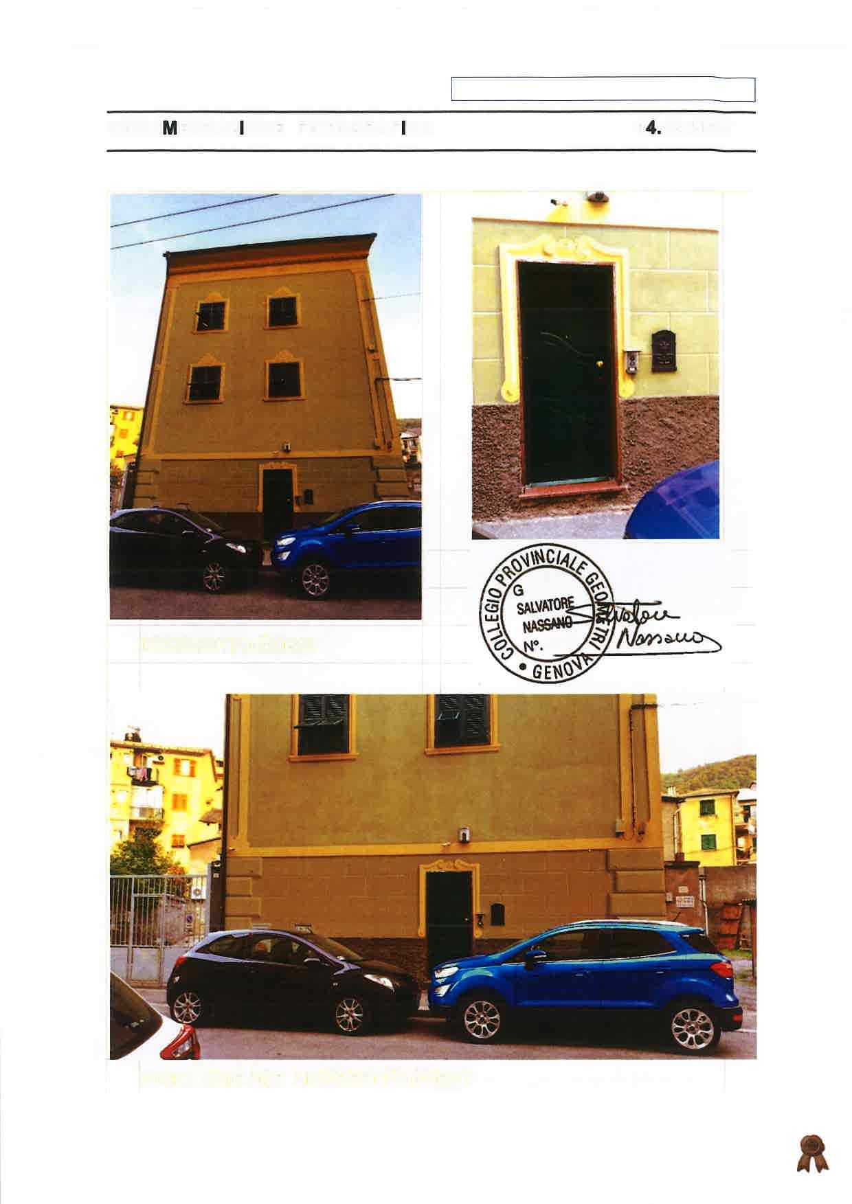 Appartamento ubicato a Genova (GE) - Via Garello Civ. 2, piano T-1-2 all'interno di un piccolo fabbricato a forma irregolare, che si eleva su tre piani fuori terra e composto dai due immobili oggetto della procedura con posto auto ubicato a Genova (GE) - Via Garello Civ. 14R. L’abitazione è disposta i piani Terra, Primo, Secondo e Sottotetto abitabile, livelli collegati tra loro da scala interna, con accesso indipendente dalla Via Garello, attraverso portoncino blindato ad un’anta.