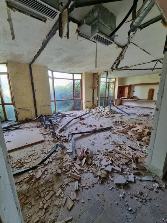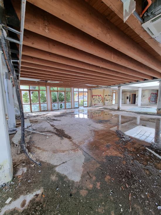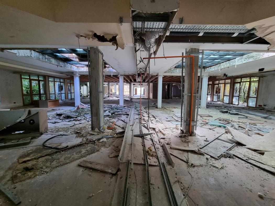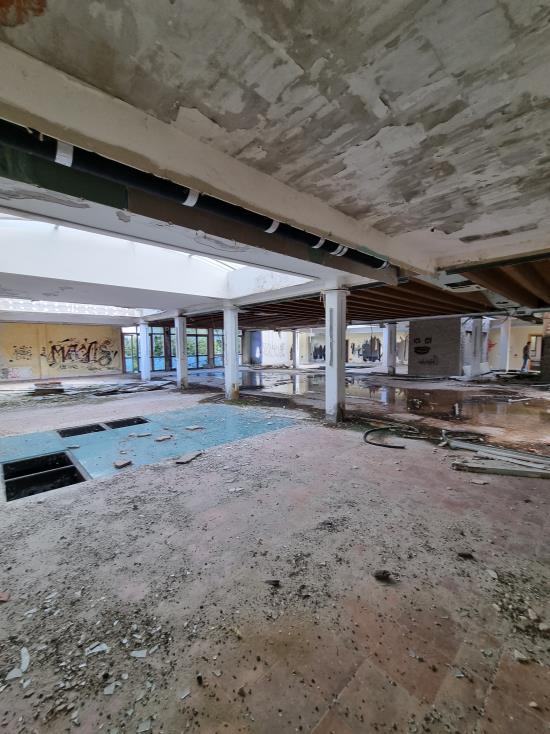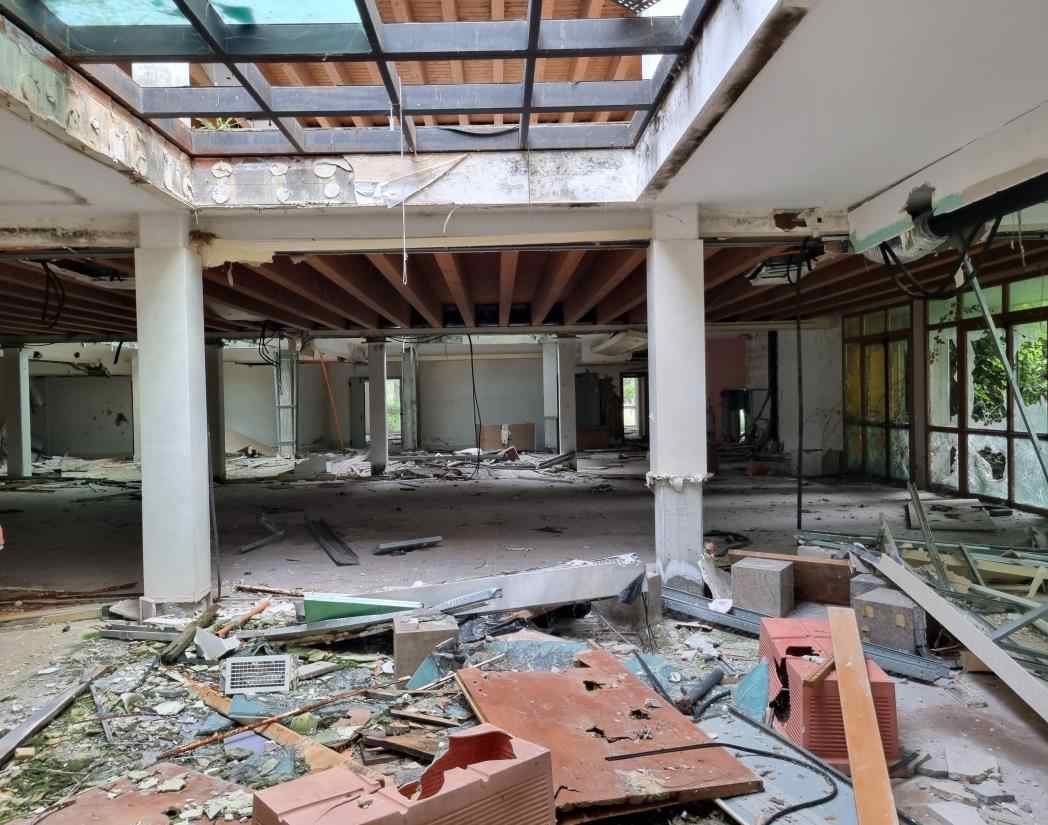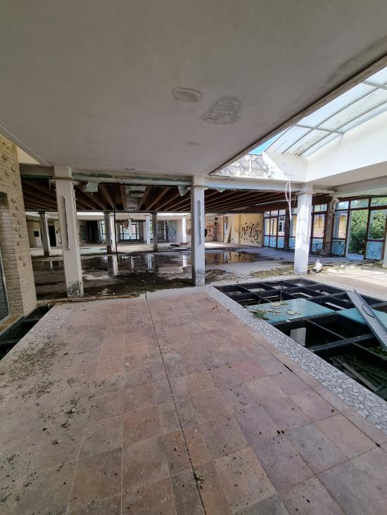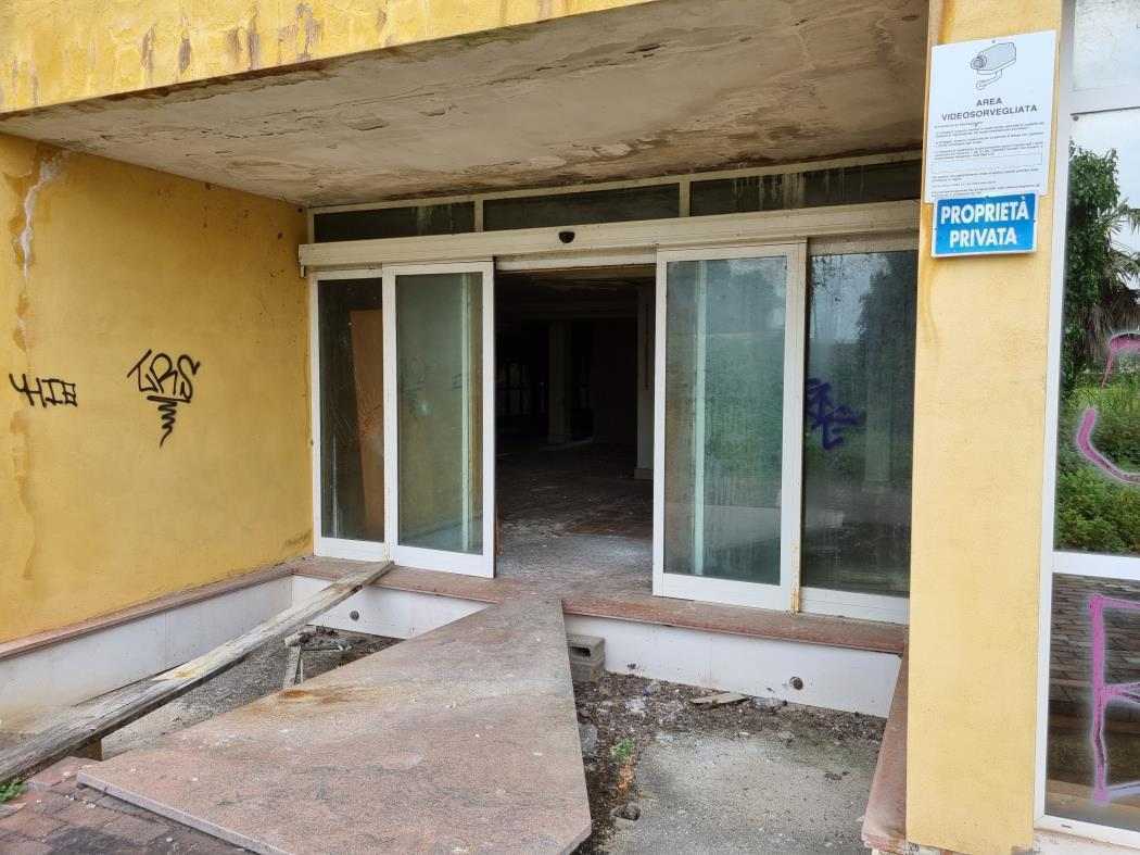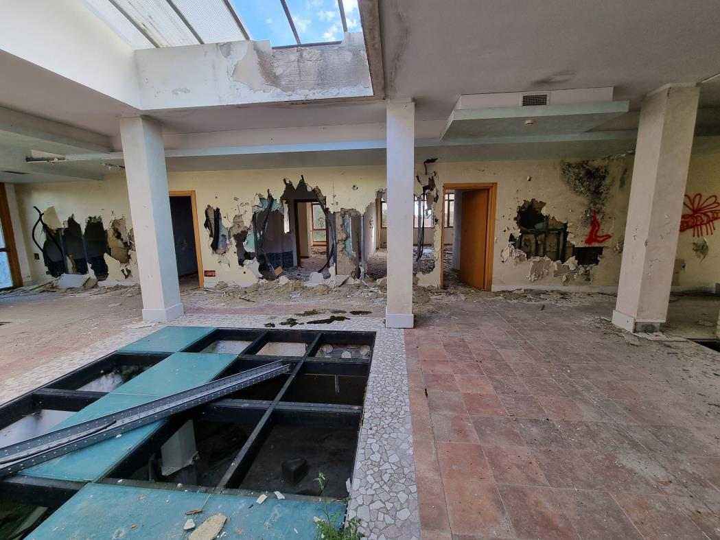 Piena Proprietà per la quota di 1/1 di fabbricato indipendente, precedentemente destinato ad Albergo/Villaggio Turistico ed attualmente dichiarato come “Unità Collabente F/2” (costruzione inidonea ad utilizzazioni produttive di reddito a causa dell’accentuato livello di degrado), oltre ad area urbana e terreni limitrofi di proprietà esclusiva,
