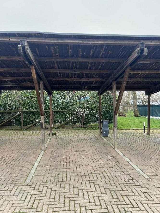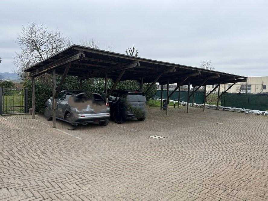 Lotto 4 - Piena proprietà di posto auto esterno, di circa 13,00 mq, ubicato in Ozzano dell'Emilia (BO), Via Bertella, n. 54, all'interno della corte del condominio di Via Bertella n. 50. Il posto auto è coperto da pensilina/tettoia in legno a falda inclinata, ed è pavimentato in blocchetti di cemento.