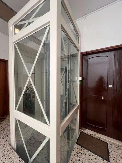 Appartamento a uso abitativo, ubicato al quarto piano con ascensore di un edificio condominiale di cinque piani fuori terra, con struttura portante in cemento armato. L’unità è composta da ingresso, soggiorno, cucina, due camere da letto, un bagno, corridoio e due balconi con affaccio su cortile interno. Le finiture sono di tipo economico; lo stato di manutenzione è sufficiente, necessita di manutenzione straordinaria leggera. L’impianto di riscaldamento è centralizzato