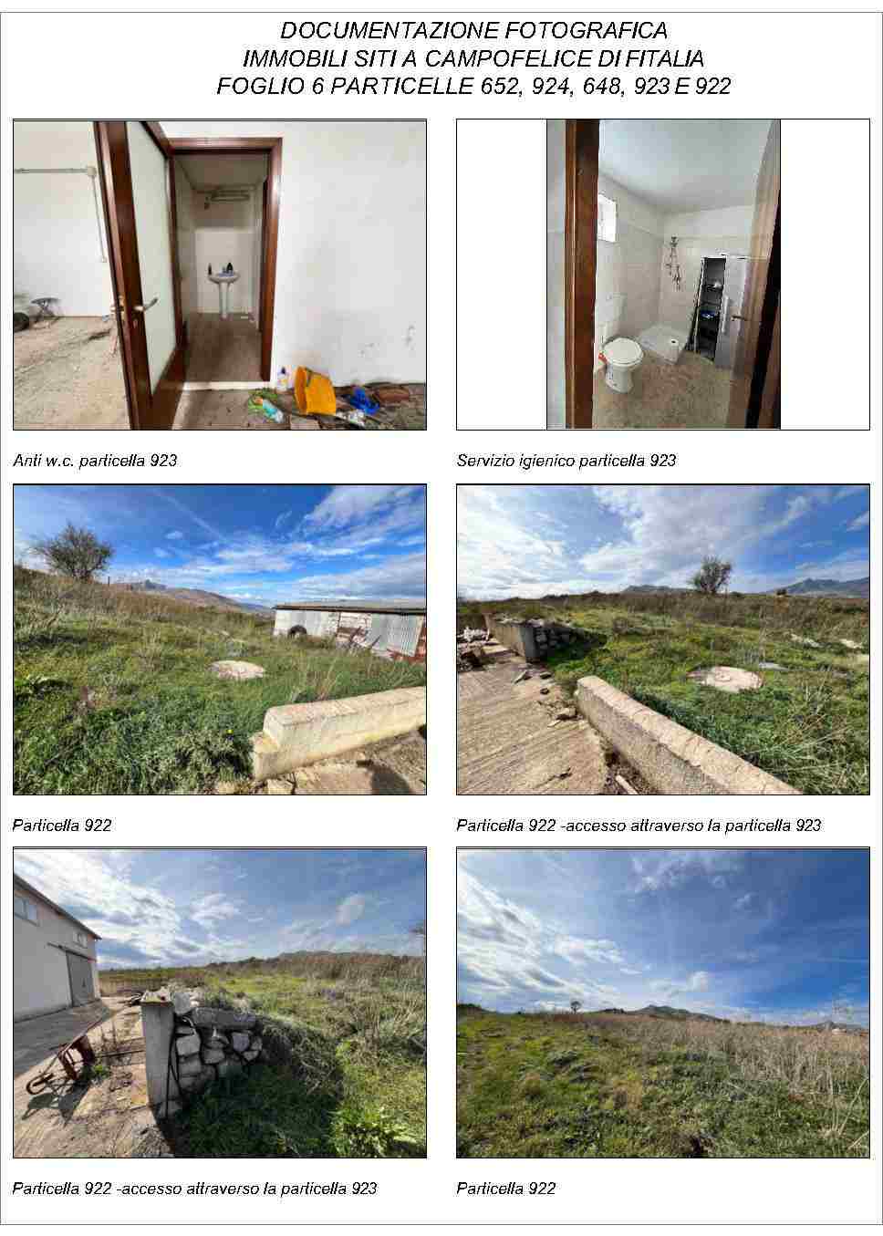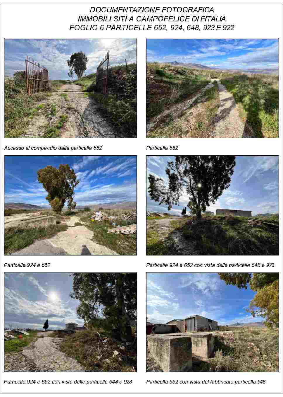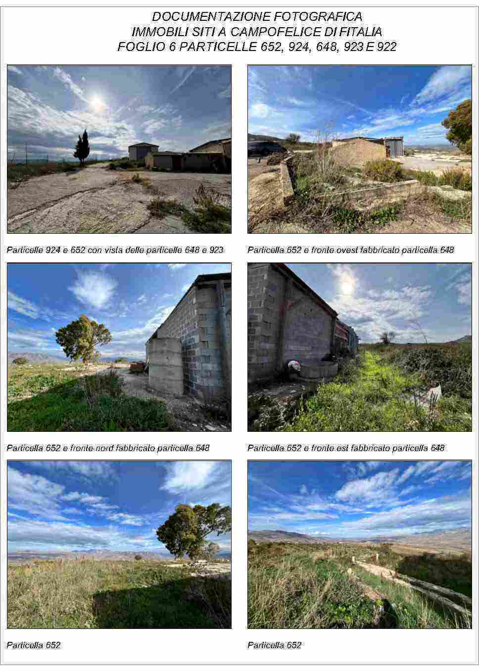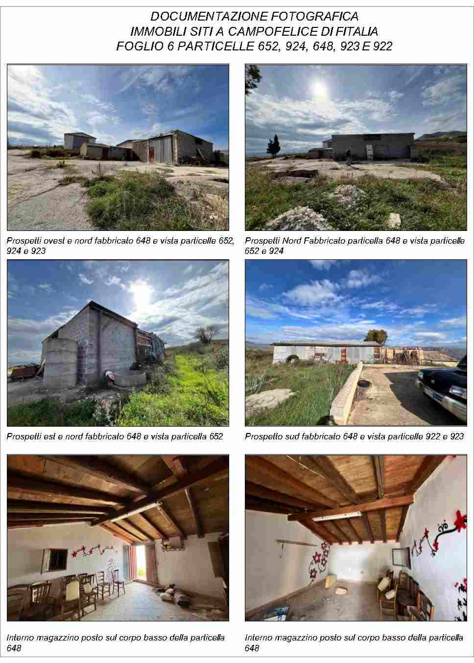 Compendio pignorato ubicato a Campofelice di Fitalia (PA) - Contrada Cicirimigna s.n.c.,identificato: al catasto Fabbricati al Foglio 6, Part. 923, Categoria D10 e al Foglio 6, Part. 648,Categoria C2; al catasto Terreni - Fg. 6, Part. 652, Qualit. Seminativo, Fg. 6, Part. 922, Qualit.Seminativo, Fg. 6, Part. 924, Qualit. Seminativo, Fg. 6, Part. 648, Qualit. ENTE URBANO, Fg. 6,Part. 923, Qualit. ENTE URBANO. Superficie 4969,73 mq.