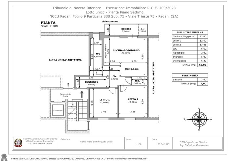 Piena ed intera proprietà di appartamento ubicato in Pagani (Sa) al Viale Trieste n. 75, piano VII.