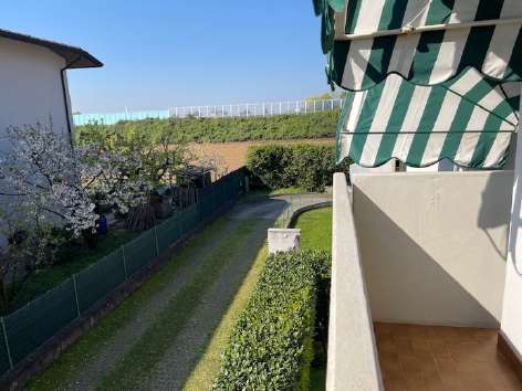 Trattasi di appartamento al piano primo con cantina ed autorimessa al piano interrato facente parte di condominio (con cinque unità abitative) su due piani fuori terra ed uno interrato. L’abitazion...