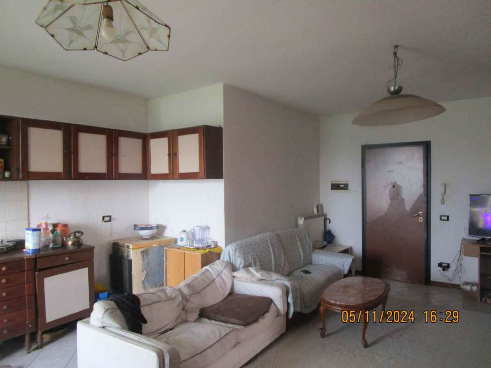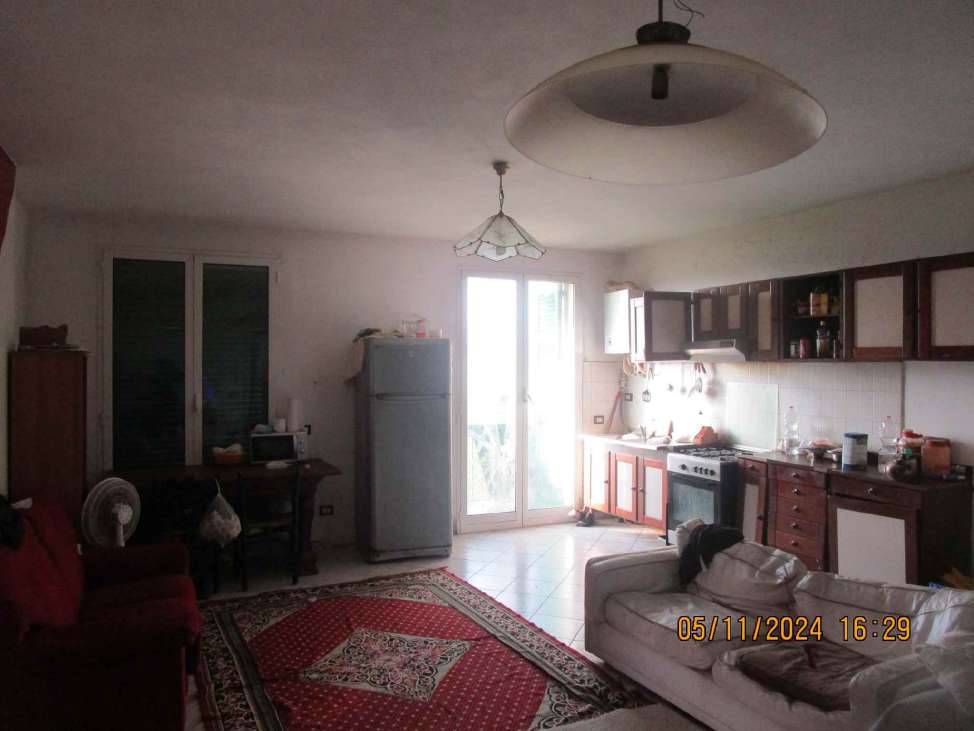 Appartamento ad uso abitazione al piano terra rialzato, costituito da ingresso su soggiorno cottura con balcone, disimpegno, servizio igienico e due camere da letto di cui una dotata di balcone; completa l’unità immobiliare la cantina pertinenziale posta al 1PS e un Box autorimessa con accesso dal cortile comune.