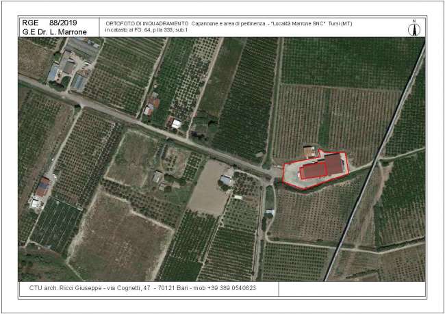 Terreni agricoli ubicati nel Comune di Tursi (MT) alla contrada Marone s.n.c. foglio 64, particelle 210, ha 00.04.88, frutteto, classe 2; particella 284, porz AA, ha 00.01.67, seminativo irriguo, classe 1; particella 284, porz AB, ha 00.04.70, frutteto, classe 2; particella 332, ha 01.76.41, seminativo irriguo, classe 2; particella 286, porz AA, ha 00.01.30, seminativo irriguo, classe 1; particella 286, porz AB, ha 00.16.10, frutteto, classe 2;