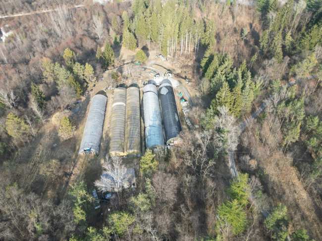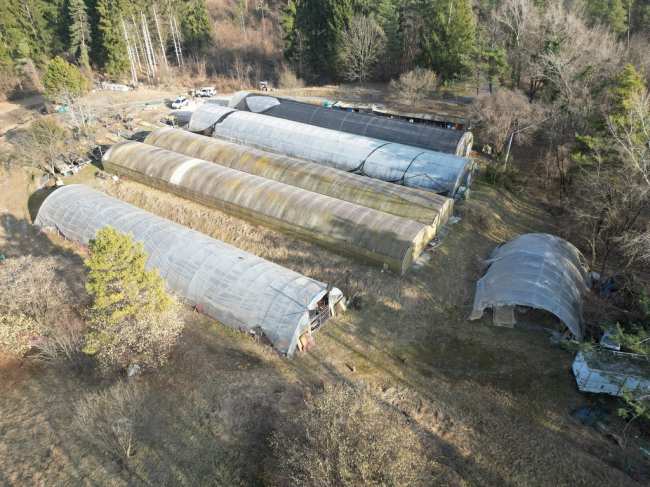 Terreni a boscaglia e prato incolti in prossimità del fiume Piave in località Dogna con la presenza di alcuni manufatti in legno da demolire e due serre per attività di florovivaistica. I beni risultano liberi.
