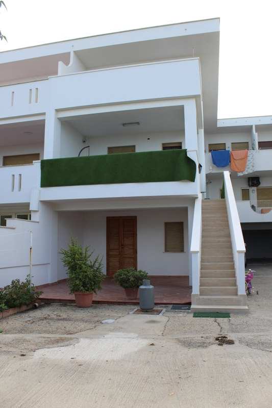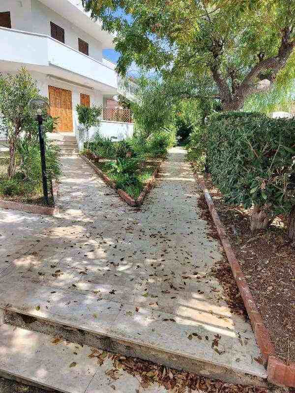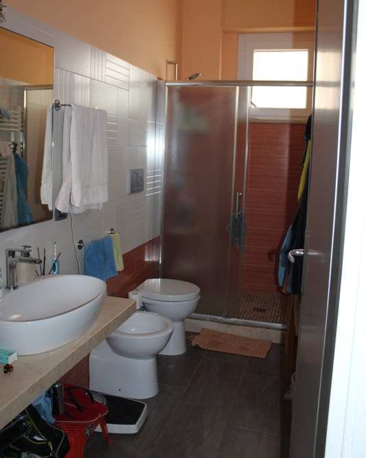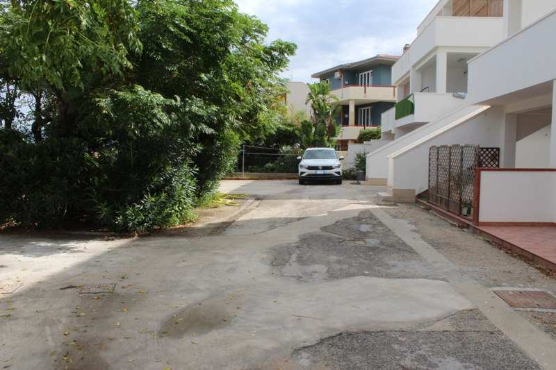 Piena proprietà di appartamento e autorimessa siti in Alcamo (TP) - fraz.Alcamo Marina, via Del Golfo n.643, piano T-1. Condominio "Il Villino". L'appartamento, al piano rialzato (catastalmente piano primo), ha superficie di mq. 77,37 diviso in cucina/soggiorno, due camere, bagno, lavanderia con doccia, corridoio e veranda coperta fronte mare. L'autorimessa al seminterrato con wc e doccia è di mq. 26,78. In Catasto Fabbricati del Comune di Alcamo al f.2, part. 1462, sub. 17 e part. 1462, sub. 9.