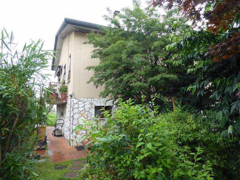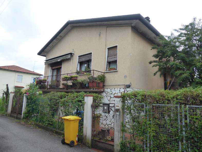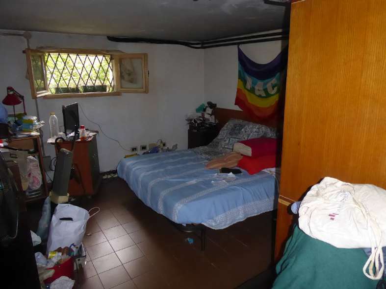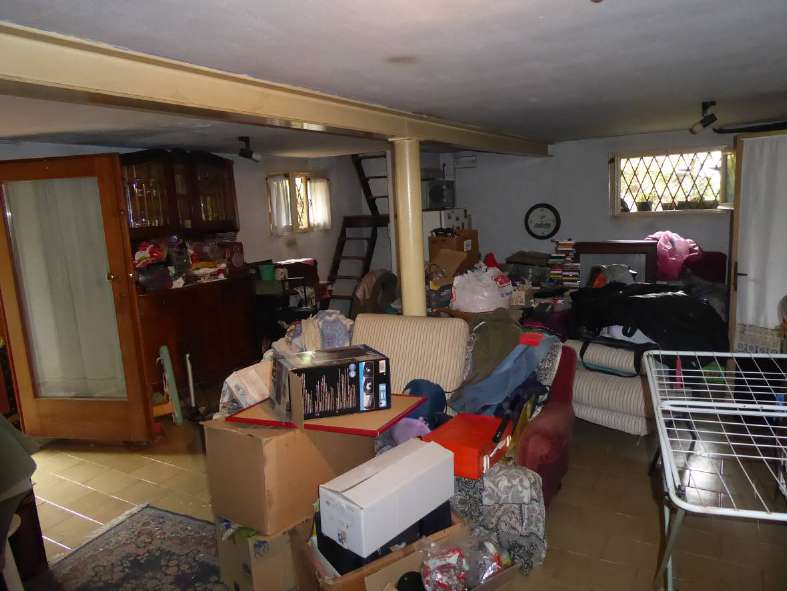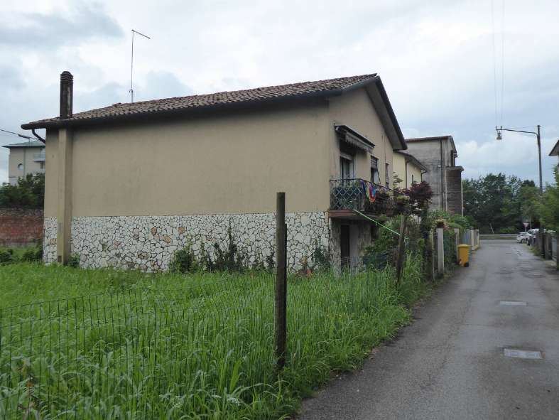 Proprietà per l'intero, gravata dal diritto di abitazione ex art. 540 2° co. c.c., opponibile alla procedura esecutiva, a favore di uno dei due esecutati nato il 01.05.1940. Abitazione unifamiliare composta al piano terra da ampio ripostiglio che conduce ad altra stanza con servizio igienico, vano destinato a magazzino con caldaia, al piano primo da ampio ingresso/corridoio, ripostiglio, cucina, soggiorno, 2 camere, servizio igienico, terrazzo lungo il prospetto principale, fronte strada.