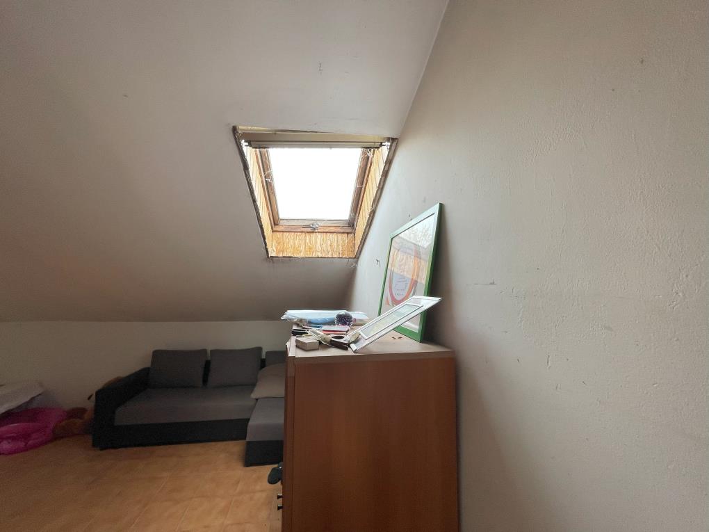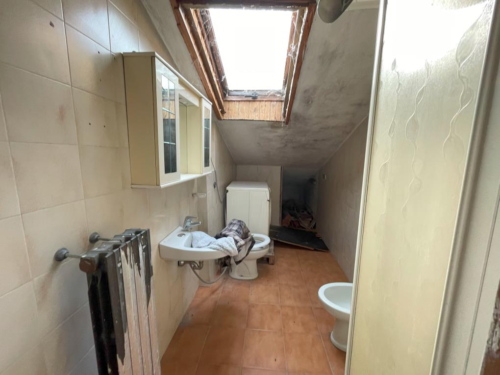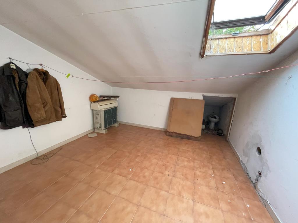 Trattasi porzione di fabbricato a schiera adibito a civile abitazione a due piani fuori terra oltre sottotetto. Il bene si presenta in scadente stato di conservazione; al piano terra risultano posizionati dei puntelli nella zona giorno atti a contrastare eventuali cedimenti del solaio a volte.