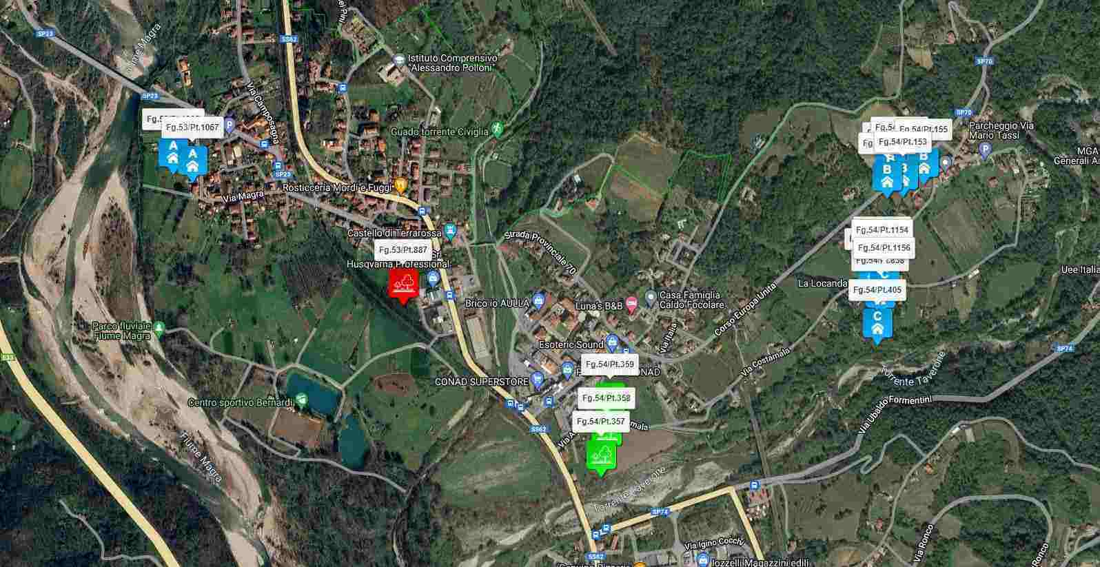 Piena ed intera proprietà per la quota di 1/1 di terreni agricoli siti nel Comune di Licciana Nardi (MS) della superficie catastale complessiva di mq. 14.086,00 identificato come lotti 1-2 perizia del 16.04.2024