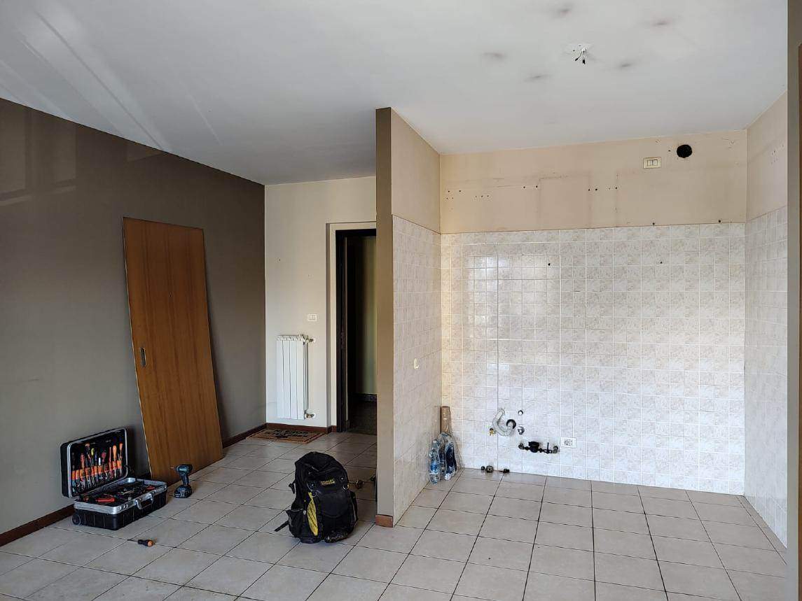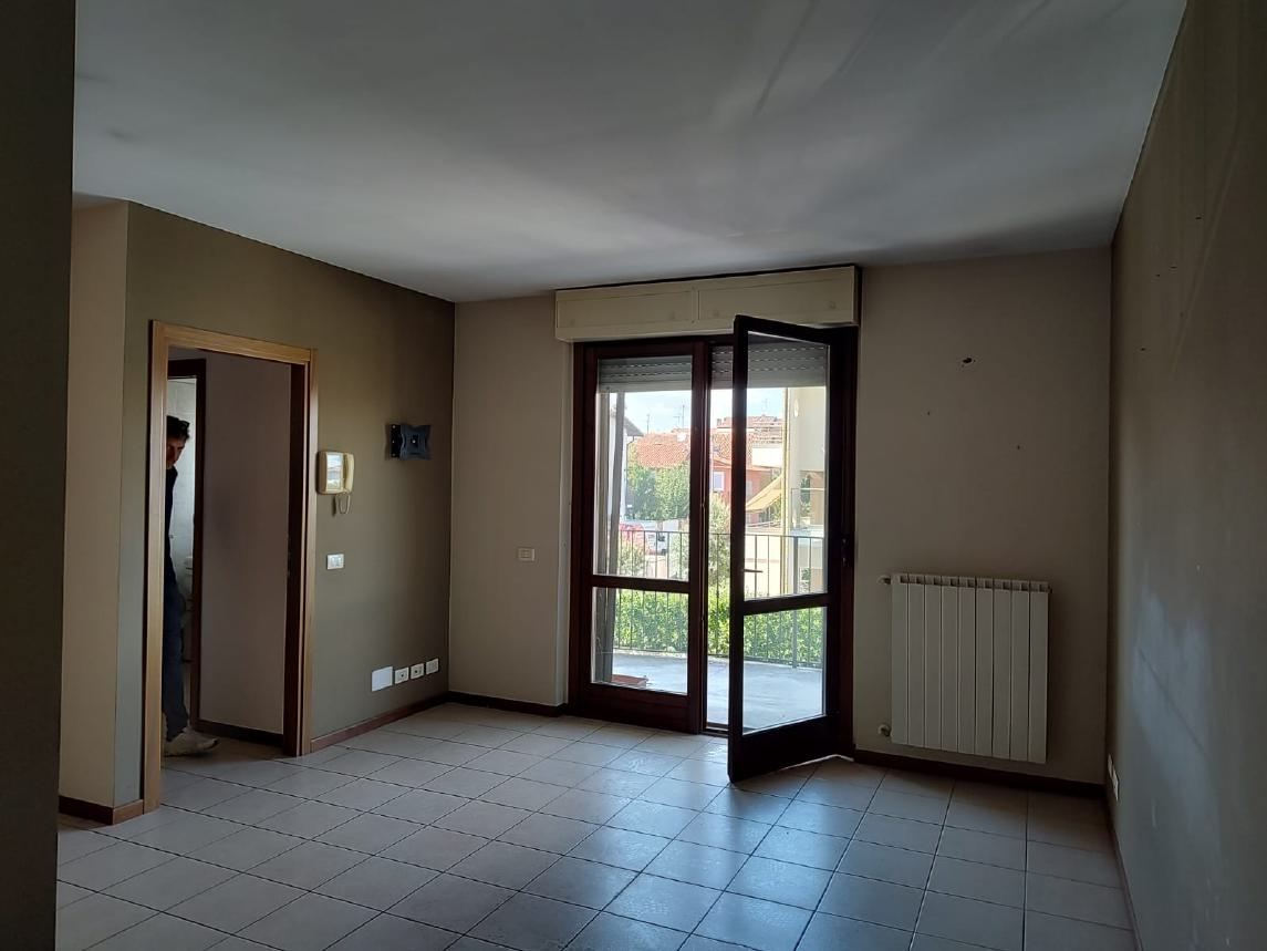 Appartamento ad uso civile abitazione al piano primo, composto di cucina-soggiorno, disimpegno, bagno, camera, studio e due balconi, con cantina al piano interrato.
