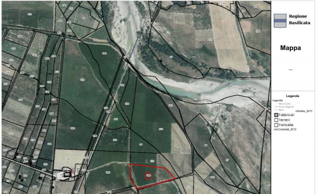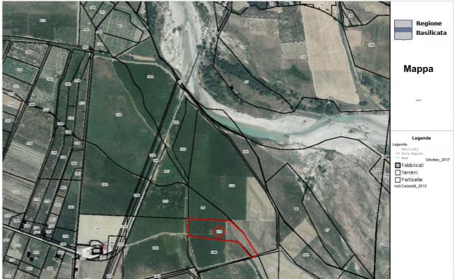 Terreno agricolo, Comune di Tursi (MT) C.da 2 Marone, tot ha. 04.05.02, cat. terreni al fl.64, p.lla304, porz AA, ha 01.07.62 (ex p.lla 304 di ha 04.05.02), seminativo, cl 2, reddito dominicale 38,91, reddito agrario 25,01; p.lla304, porz AB, ha 02.34.44 (ex p.lla 304 di ha 04.05.02),frutteto, cl 2, reddito dominicale 381,40, reddito agrario 211,89; p.lla 304, porz AC, ha 00.62.96 (ex p.lla 304 di ha04.05.02), pascolo arborato, cl 3, reddito dominicale 3,58, reddito agrario 1,30