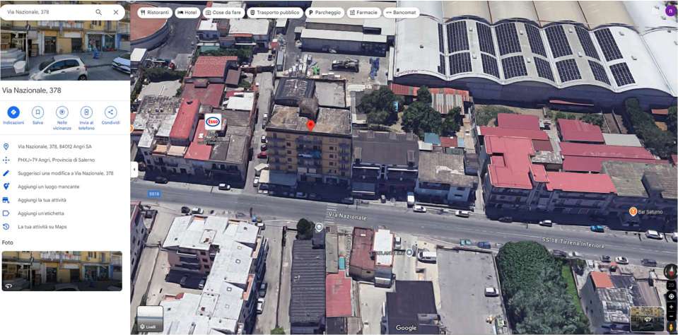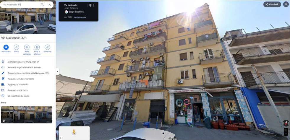 Piena ed intera proprietà di una unità abitativa di tipo civile sita al piano terzo del fabbricato condominiale “Palazzo Falcone” ubicata in Angri (SA) alla Via Nazionale n. 374, identificato al N.C.E.U del suddetto Comune al foglio 6, particella 834 Subalterno 14 – cat. A/2 – classe 3 – consistenza 5,5 VANI – superficie catastale totale 121 m2 – superficie catastale totale escluse aree scoperte 118 m2 – rendita euro 525,49
