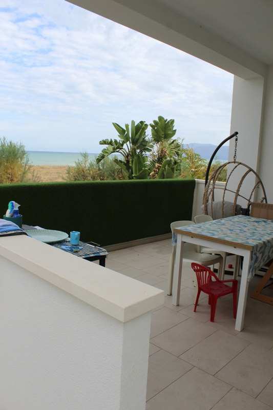 Piena proprietà di appartamento e autorimessa siti in Alcamo (TP) - fraz. Alcamo Marina, via Del Golfo n.643, piano T-1. Condominio "Il Villino". L'appartamento, al piano rialzato (catastalmente piano primo), ha superficie di mq. 77,37 diviso in cucina/soggiorno, due camere, bagno, lavanderia con doccia, corridoio e veranda coperta fronte mare. L'autorimessa al seminterrato con wc e doccia è di mq. 26,78. In Catasto Fabbricati del Comune di Alcamo al f.2, part. 1462, sub. 17 e part. 1462, sub. 9.