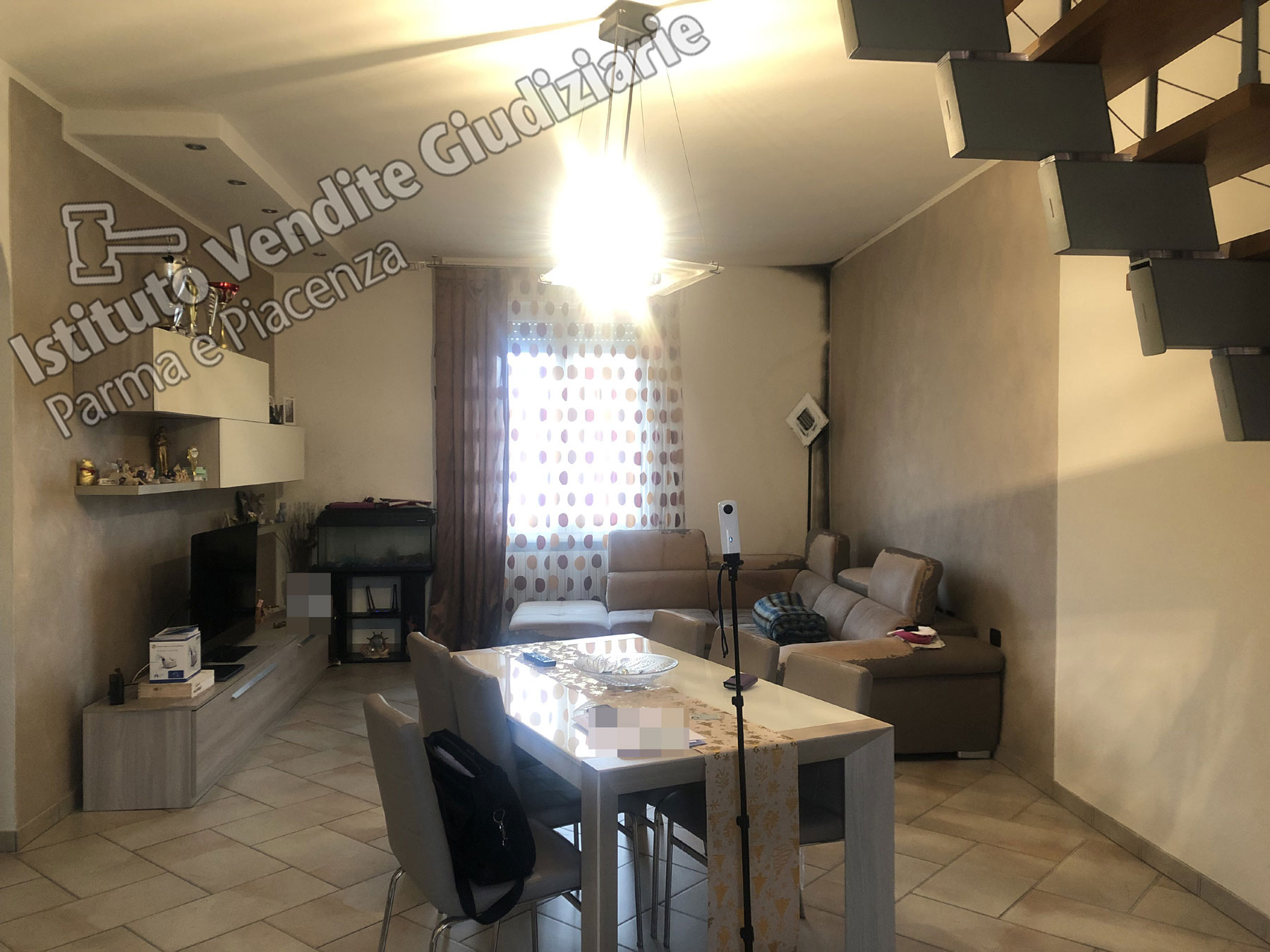 Lotto unico - appartamento di civile abitazione, occupante l'intero primo piano (ad eccezione del vano scala comune), composto, secondo la planimetria catastale, da ingresso, cucina, soggiorno, disimpegno, due camere e bagno; sottotetto occupante l'intero secondo piano (ad eccezione del vano scala comune), composto, secondo la planimetria catastale, da ingresso e cinque locali; con le seguenti pertinenze:- cantina posta al piano seminterrato e posto auto esterno coperto posto al piano terreno.