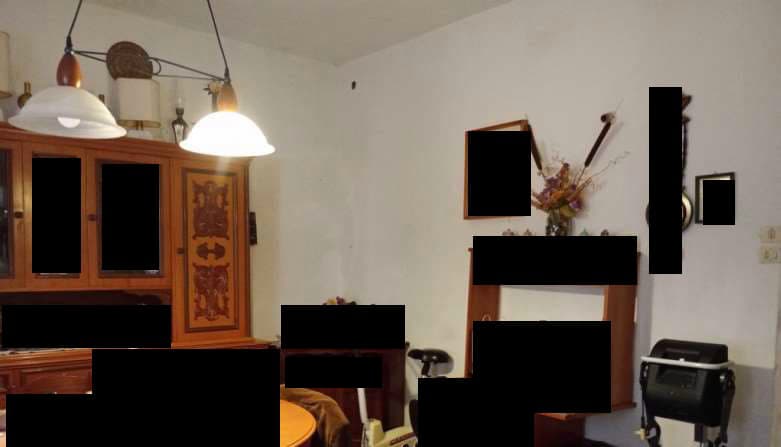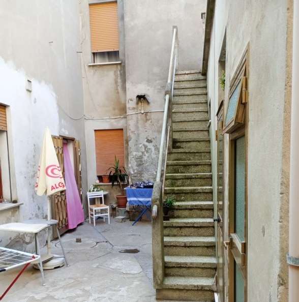 Piena proprietà di fabbricato a uso civile abitazione del tipo in linea, elevato su 2 piani fuori terra con retrostanti corpi accessori staccati (identificati come "Immobile A" fabbricato principale con accessorio retrostante e "Immobile C" corpo accessorio staccato uso cantina) e area scoperta di pertinenza ("Immobile B" area urbana). Occupato, da liberare al trasferimento a cura della Procedura. Regolarità urbanistico-edilizia-catastale: Non regolare, Vincoli e oneri, il tutto come da Perizia