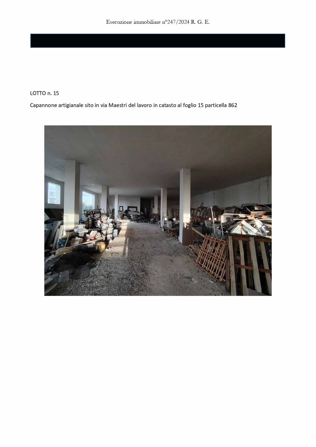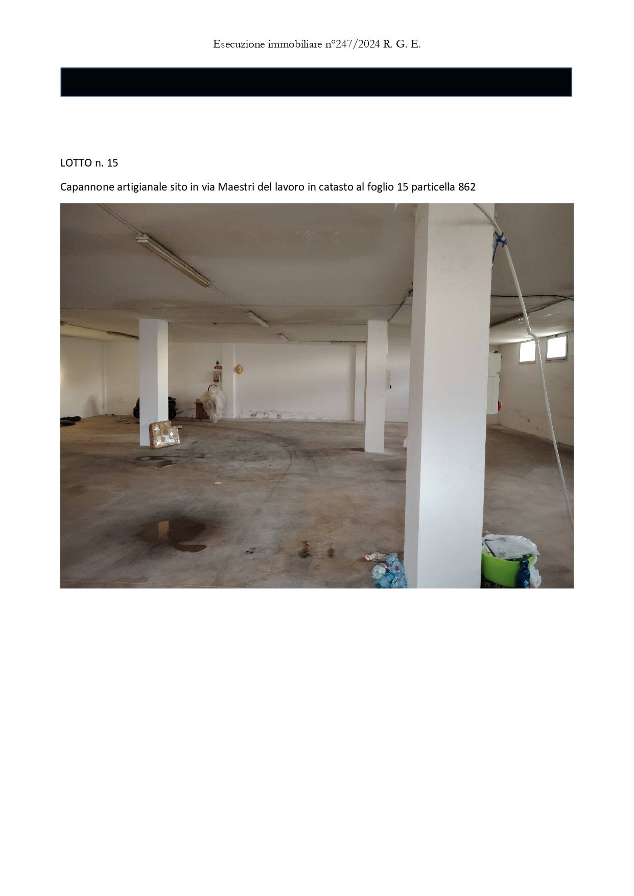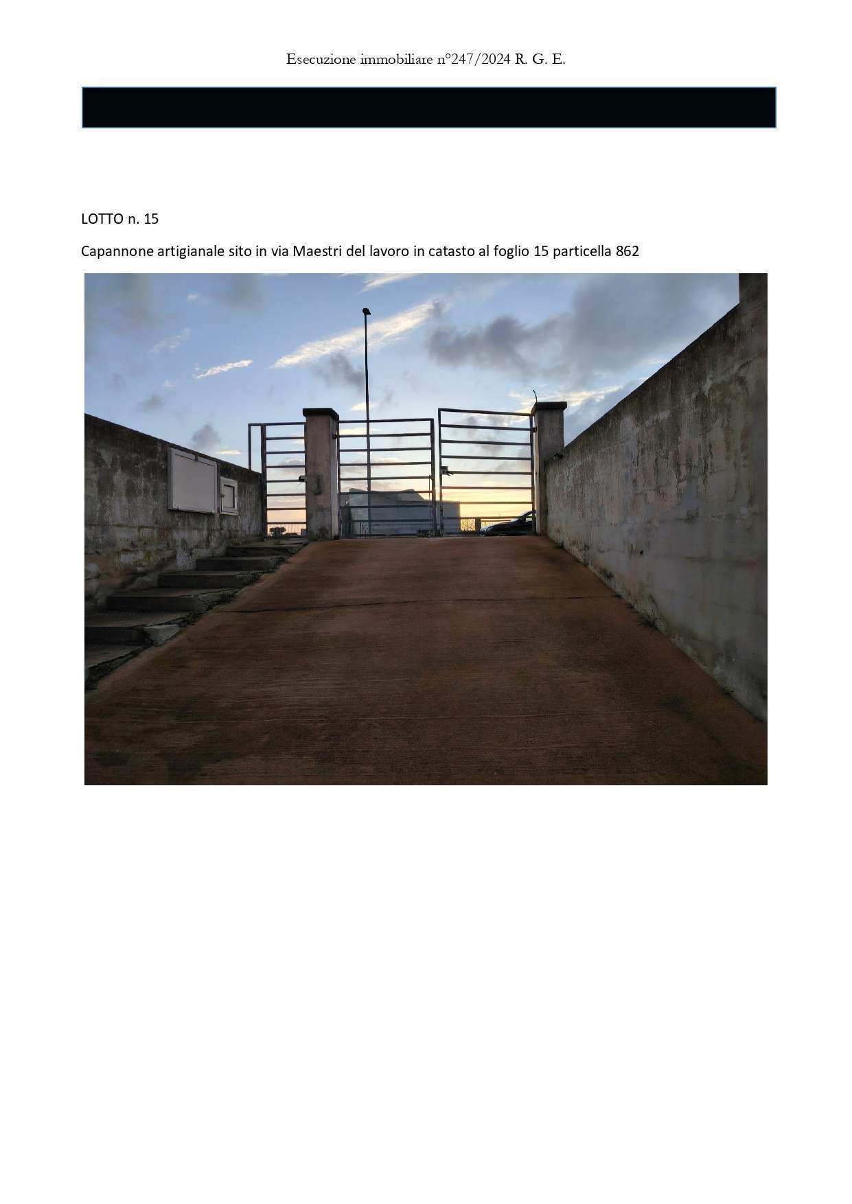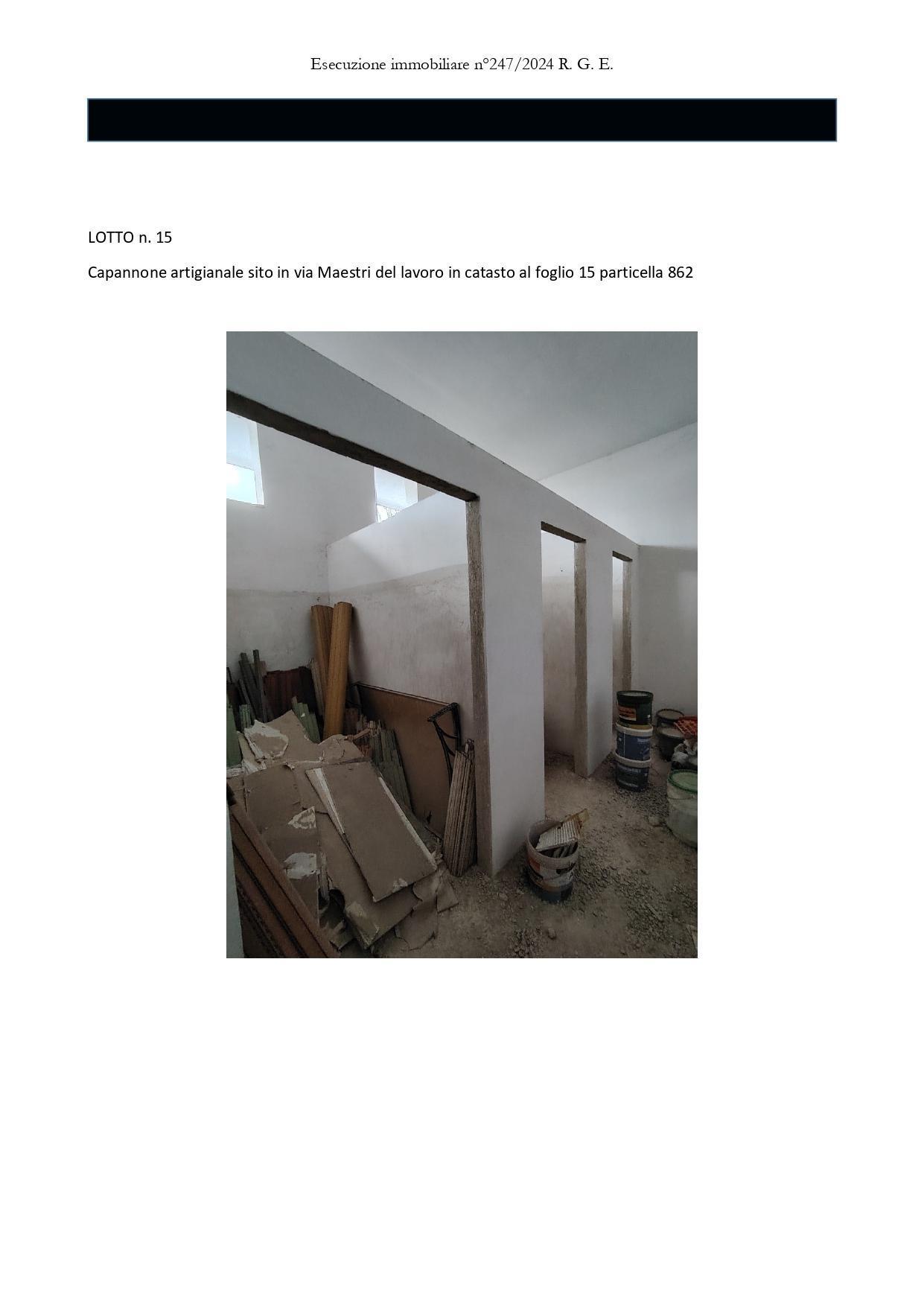 Capannone artigianale sito a Matino in via Maestri Del Lavoro, della superficie commerciale di 1.415,60 mq per la quota di 1/1 di piena proprietà.