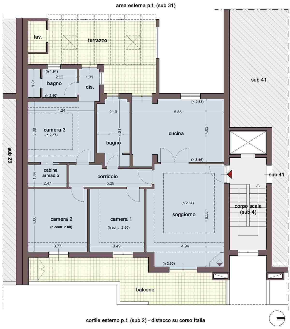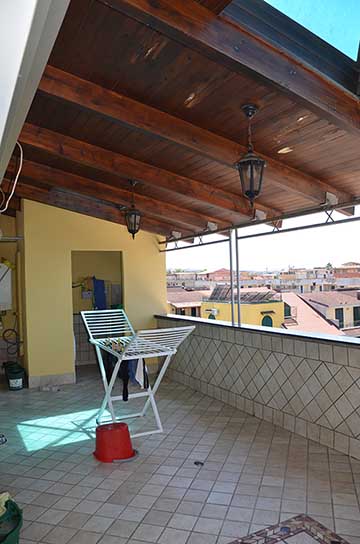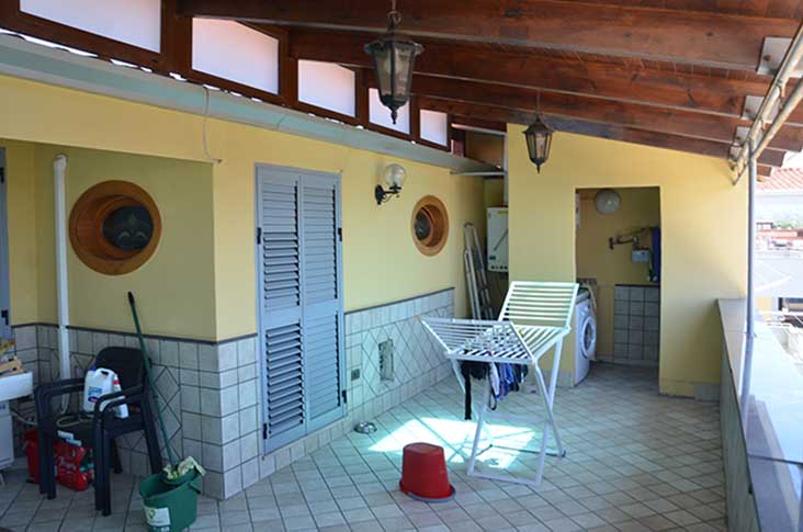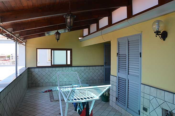 APPARTAMENTO al piano terzo, scala B, interno 5, composto da soggiorno, cucina, tre camere, cabina armadio, corridoio, due bagni, terrazzo e balcone. È distinto al N.C.E.U. al Foglio 2 Particella 807 Subalterno 40, cat. A/2, consistenza 7 vani. ?BOX AUTO al piano seminterrato della scala B, composto da un locale. È distinto al N.C.E.U. al Foglio 2 Particella 807 Subalterno 25, cat. C/6, consistenza 28 mq.