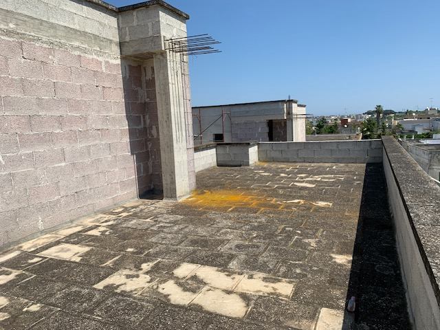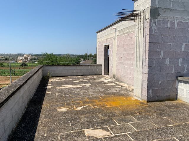 Appartamento in Lizzanello (Le) alla via Circonvallazione Lizzanello-Castrì, allo stato rustico, sito al primo piano con accesso indipendente. Composto da tinello-soggiorno, disimpegno, n.2 camere da letto, bagno e mansarda al piano secondo accessibile da scala interna.Terreno di pertinenza destinato ad accesso pedonale-carrabile sito in Lizzanello (Le) alla via Circonvallazione Lizzanello-Castrì. Superficie complessiva di circa 53 mq.